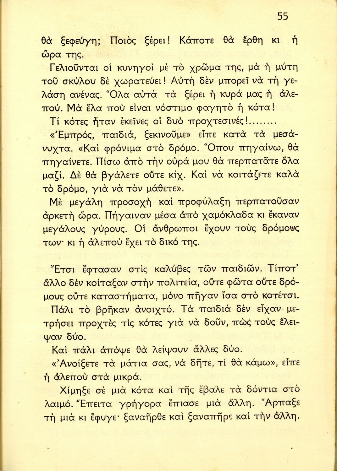 Αναγνωστικό για την Δ΄ τάξη του Δημοτικού. Περιλαμβάνει ένα κείμενο στο οποίο παρεμβάλλονται ποιήματα δημοτικά και Ελλήνων ποιητών.