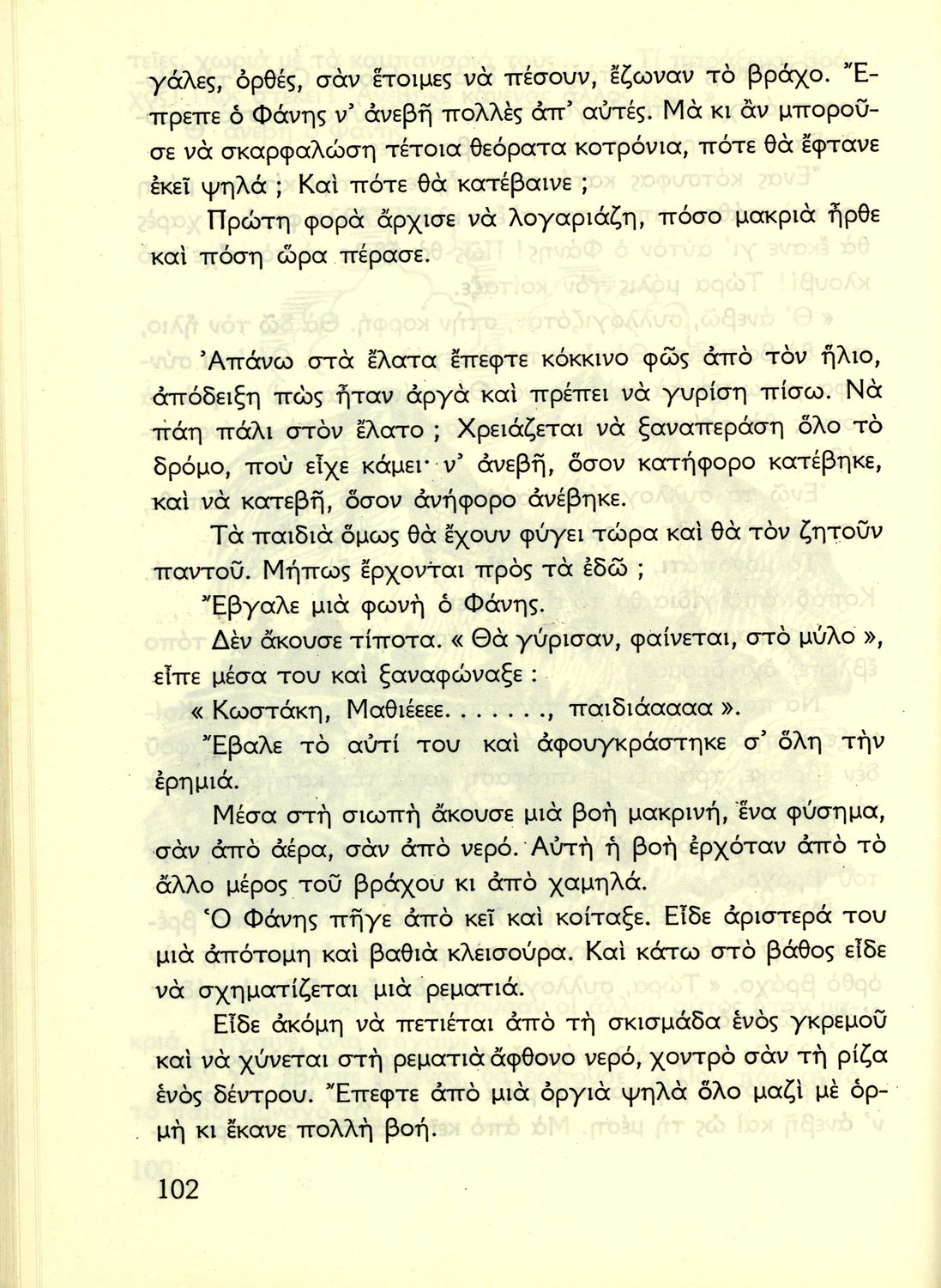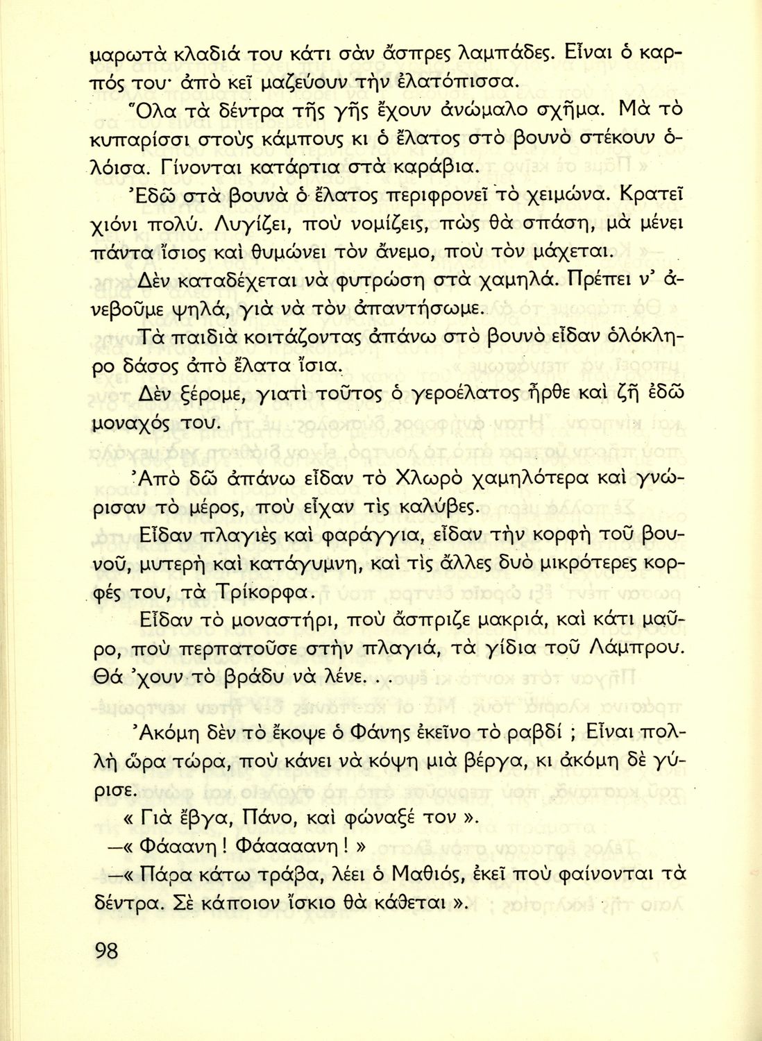 Κωδικός αναγνώρισης: 04-00089 Τίτλος: Τα ψηλά βουνά. Αναγνωστικό Γ΄ Δημοτικού Συγγραφέας: Ζαχ. Παπαντωνίου Εικονογράφος: Ε. Παπαδημητρίου Μέγεθος και υπόστρωμα: Σχολικό εγχειρίδιο, μαλακό εξώφυλλο, 175 σελίδες. Εξώφυλλο (έγχρωμο), σκίτσα (ασπρόμαυρα). |