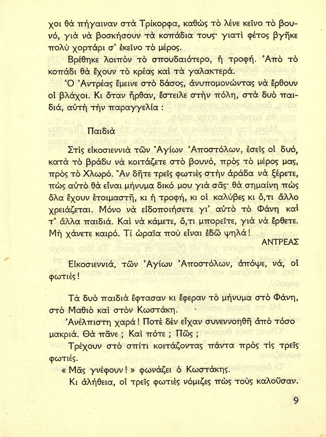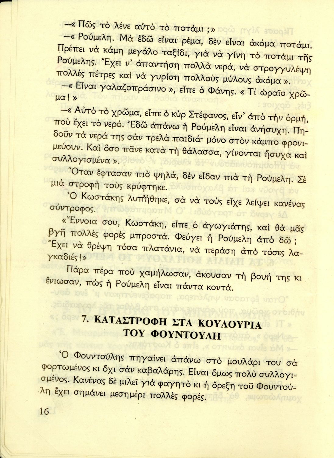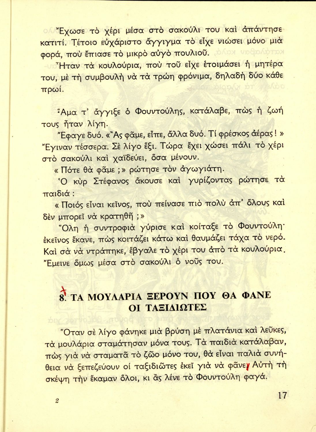 Το εγχειρίδιο ήταν αναγνωστικό για την Γ΄ Δημοτικού. Περιλαμβάνει μια αφηγηματική ιστορία, η οποία εμπεριέχει ηθικά διδάγματα για την ηθικοπλαστική καλλιέργεια των μαθητών. Η γλώσσα είναι δημοτική και το ύφος ...
