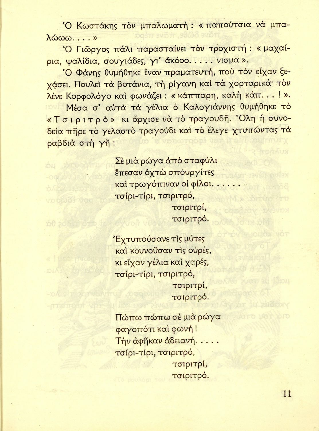 Αναγνωστικό για την Γ΄ Δημοτικού. Περιλαμβάνει μια αφηγηματική ιστορία, η οποία εμπεριέχει ηθικά διδάγματα για την ηθικοπλαστική καλλιέργεια των μαθητών. Η γλώσσα είναι δημοτική και το ύφος απλό. Στο παράρτημα