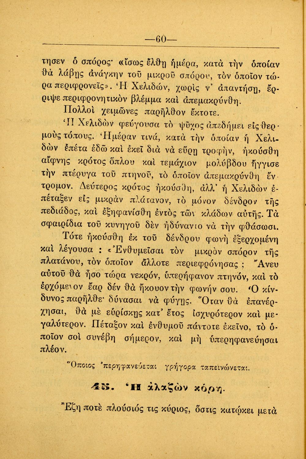 Αναγνωστικό Γ΄ Δημοτικού που περιλαμβάνει ποιήματα και πεζά εμπνευσμένα από την ελληνική φύση, τις ασχολίες των κατοίκων, την σύγχρονη ελληνική ιστορία, την ελληνική μυθολογία και τις θρησκευτικές γιορτές.
