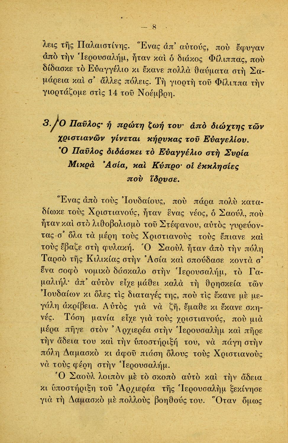 Βαθμίδα εκπαίδευσης: Πρωτοβάθμια Τάξη: Γ' Δημοτικού Μάθημα: Θρησκευτικά Γλώσσα: Δημοτική με στοιχεία καθαρεύουσας Παρουσίαση περιεχομένου: Μαθητικό βοήθημα Θρησκευτικών Γ΄ Δημοτικού που αποτελεί μια εξιστόρηση της Παλαιάς Διαθήκης από τη δημιουργία του κόσμου ως τους Προφήτες. |
