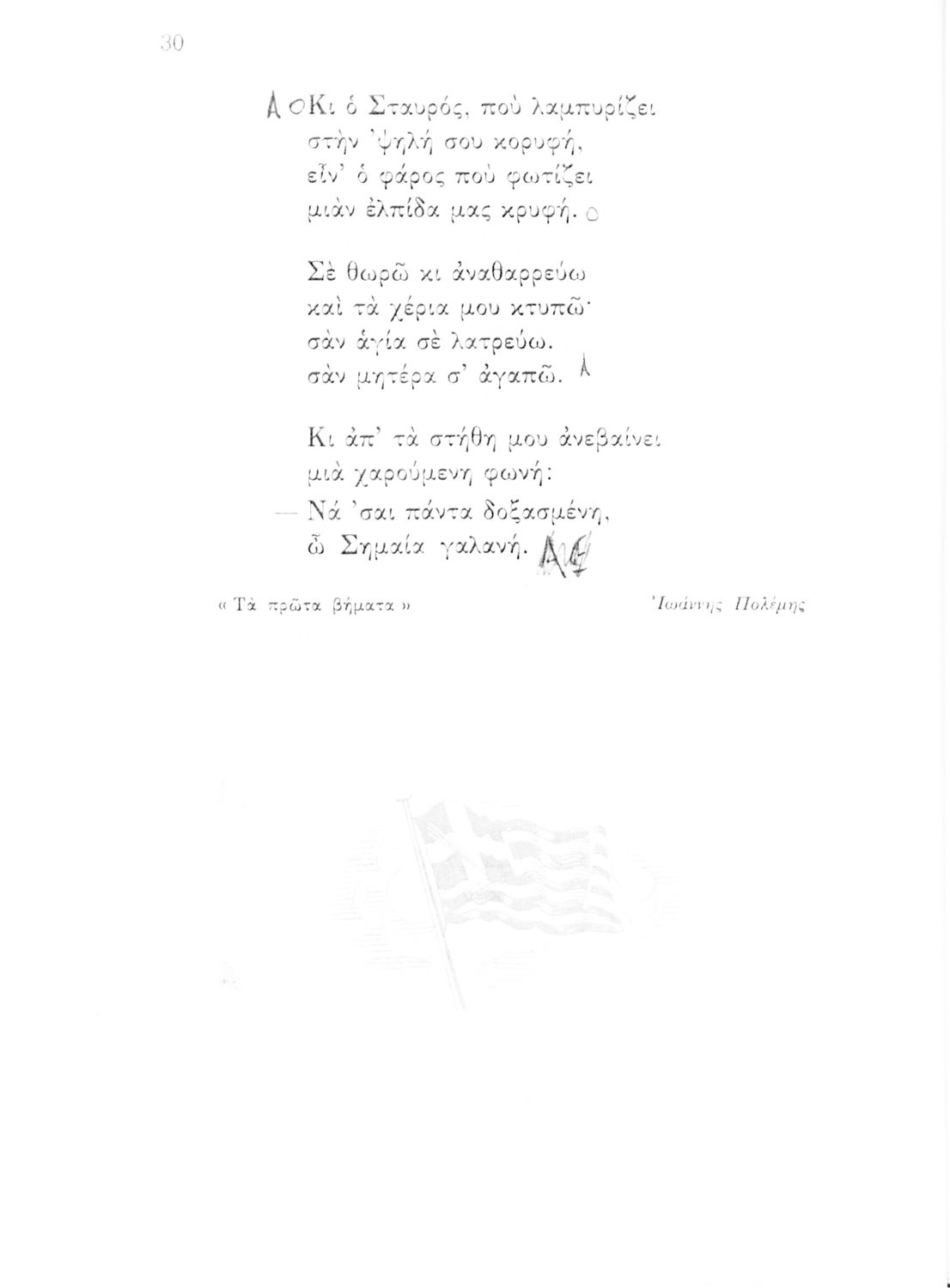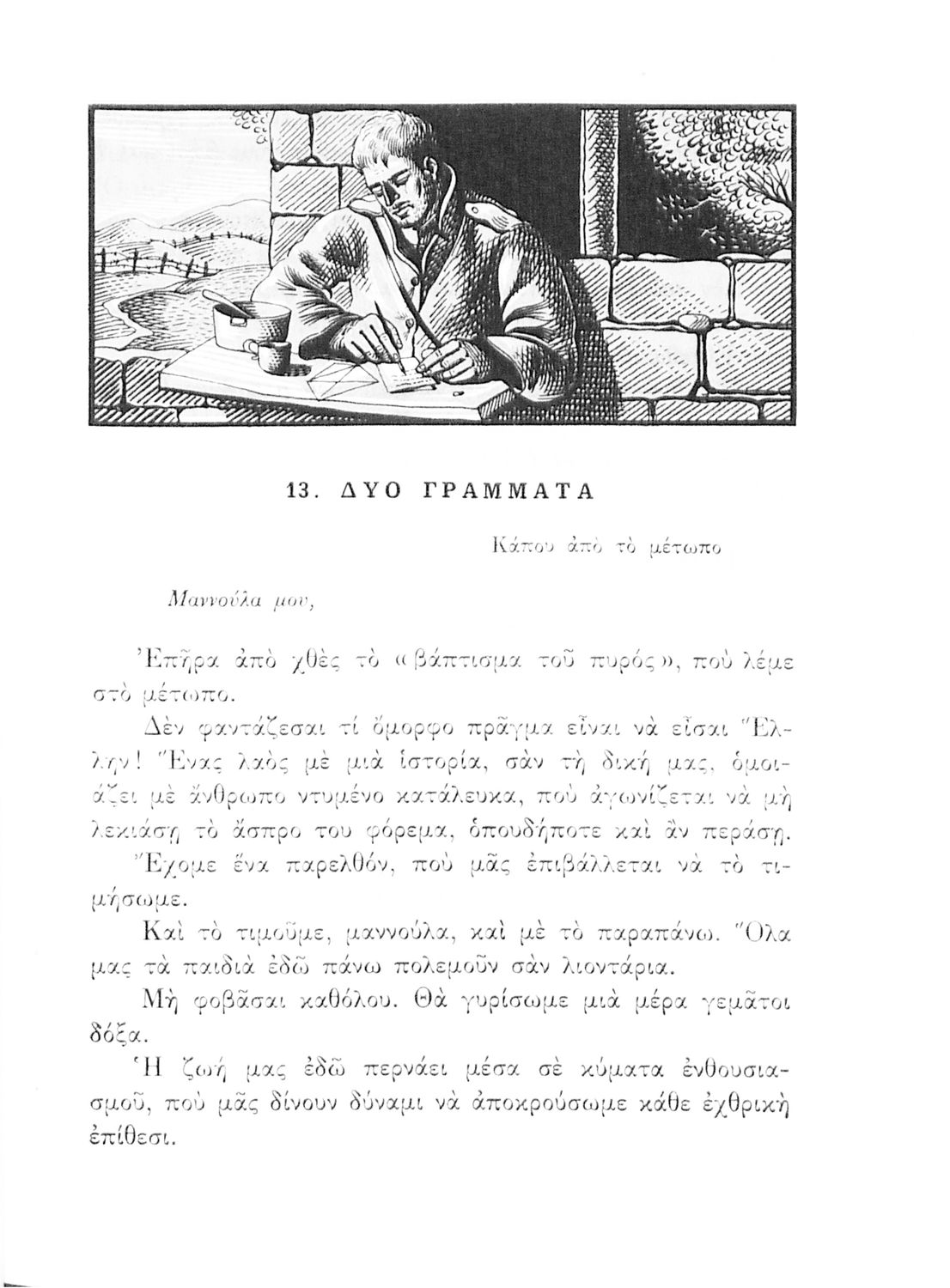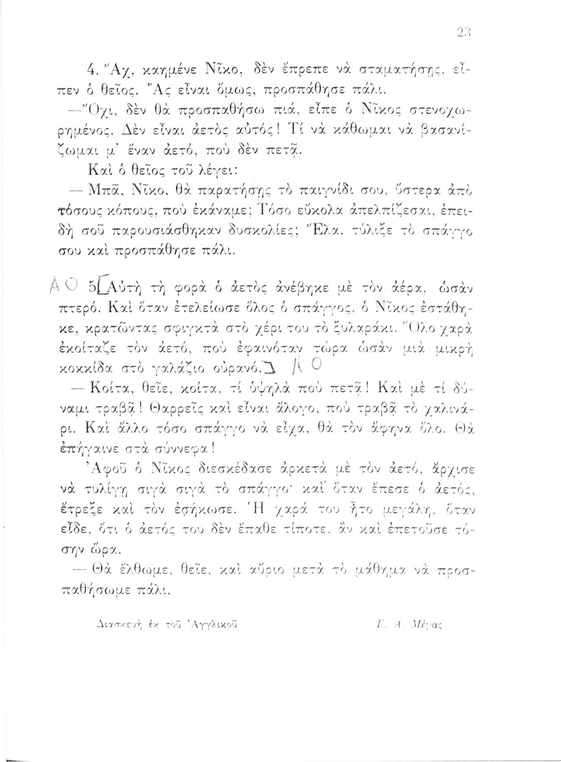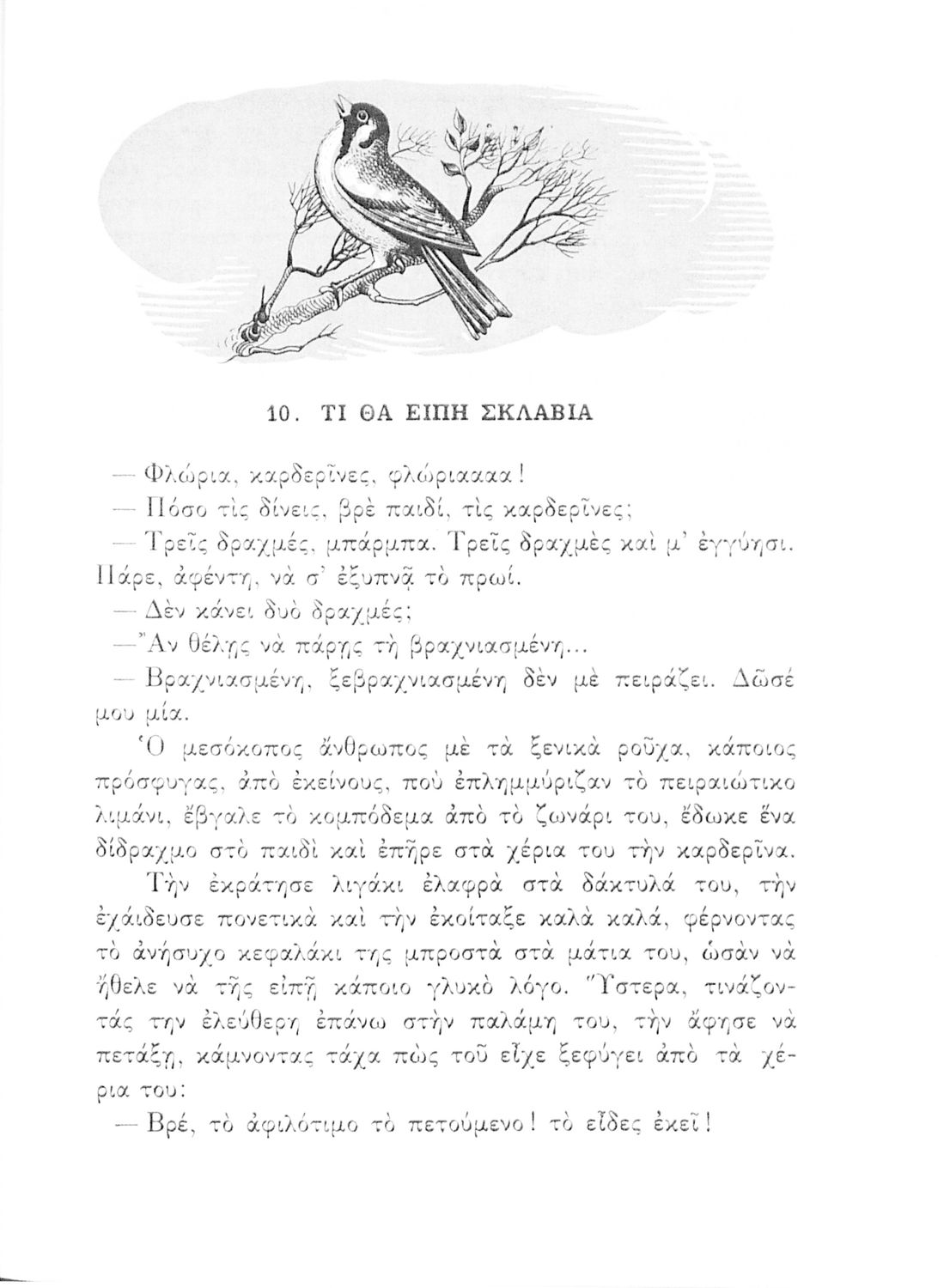 520 ## _aΑναγνωστικό Δ' Δημοτικού που είναι χωρισμένο σύμφωνα με τις εποχές του χρόνου και περιλαμβάνει ποιήματα και πεζά εμπνευσμένα από τη ζωή στην ύπαιθρο, την εθνική, οικογενειακή και κοινωνική ζωή, τη θρησκευτική παράδοση, τις ασχολίες των ανθρώπων, και την ελληνική φύση, ιστορία και μυθολογία.