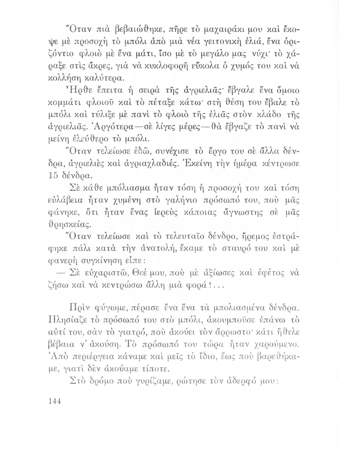 Αναγνωστικό ΣΤ΄ Δημοτικού που περιλαμβάνει θέματα από τις ελληνικές παραδόσεις και μύθους, την ελληνική φύση και θάλασσα και το τρίπτυχο "Πατρίς-θρησκεία-οικογένειαα".