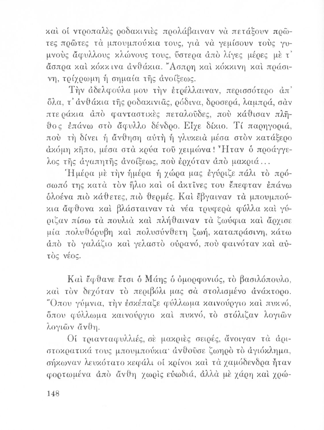 Αναγνωστικό Β' Δημοτικού που είναι χωρισμένο σύμφωνα με τις εποχές του χρόνου και περιλαμβάνει κείμενα ηθοποιητικού περιεχομένου εμπνευσμένα από τη θρησκευτική, εθνική, κοινωνική και οικογενειακή ζωή.