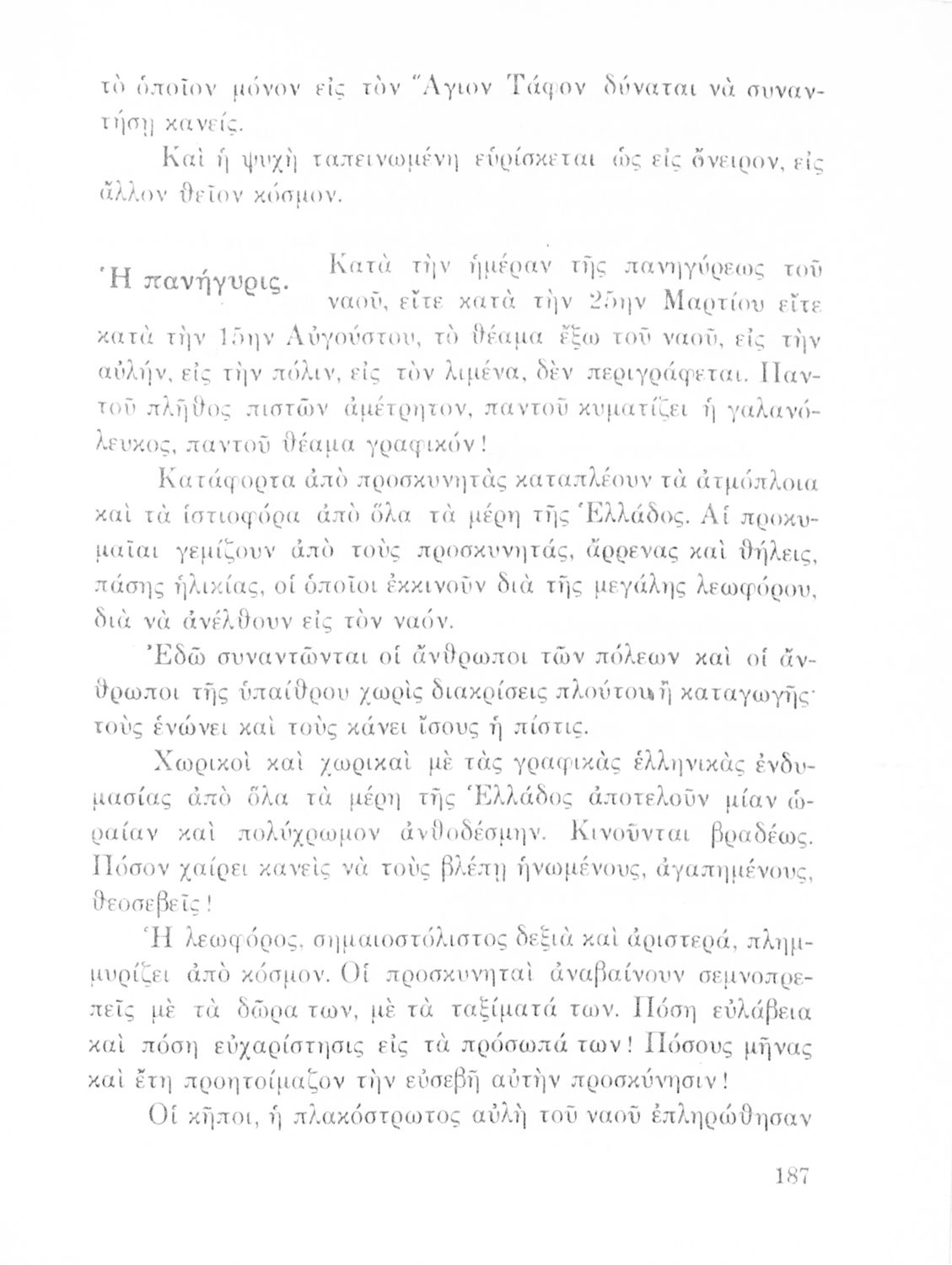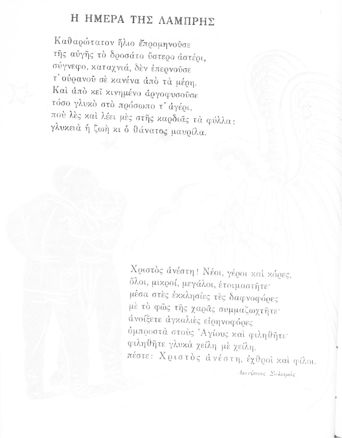 Αναγνωστικό ΣΤ΄ Δημοτικού που περιλαμβάνει θέματα από τις ελληνικές παραδόσεις και μύθους, την ελληνική φύση και θάλασσα και το τρίπτυχο "Πατρίς-θρησκεία-οικογένειαα".