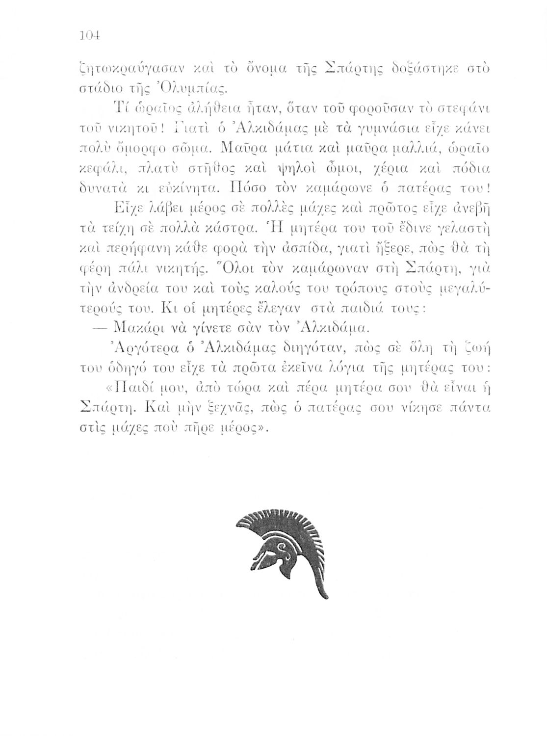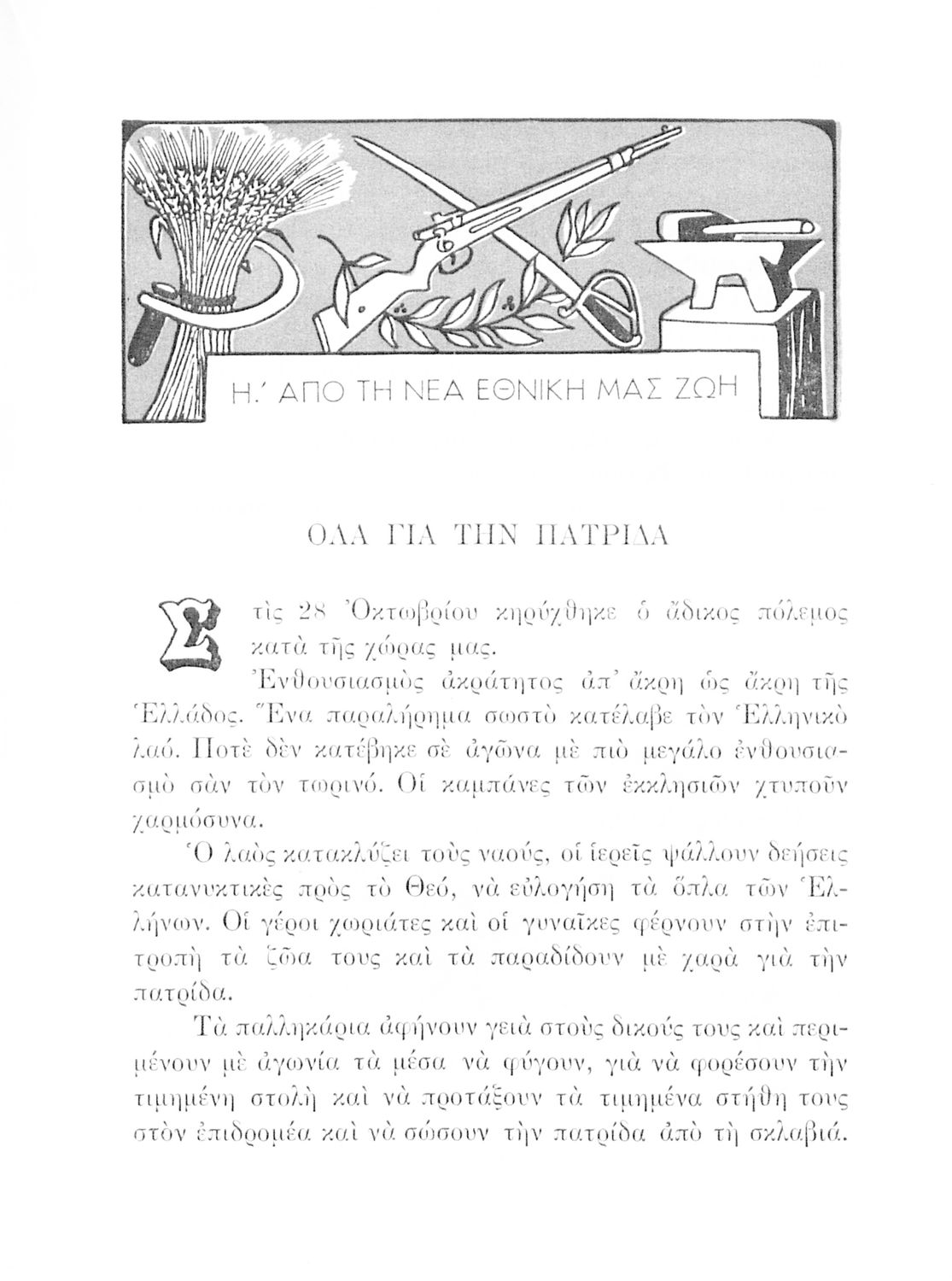 Αναγνωστικό Δ΄ Δημοτικού που περιέχει πεζά και ποιήματα εμπνευσμένα από την ελληνική ιστορία και μυθολογία, την κοινωνική ζωή και την ελληνική φύση.
