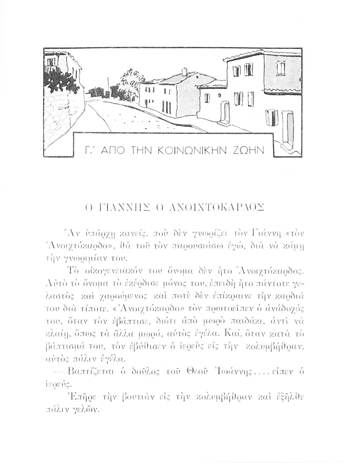 520 ## _aΑναγνωστικό Δ' Δημοτικού που περιλαμβάνει πεζά και ποιήματα Ελλήνων λογοτεχνών εμπνευσμένα από την ζωή στην ύπαιθρο, τις θρησκευτικές και εθνικές γιορτές και την οικογενειακή ζωή.