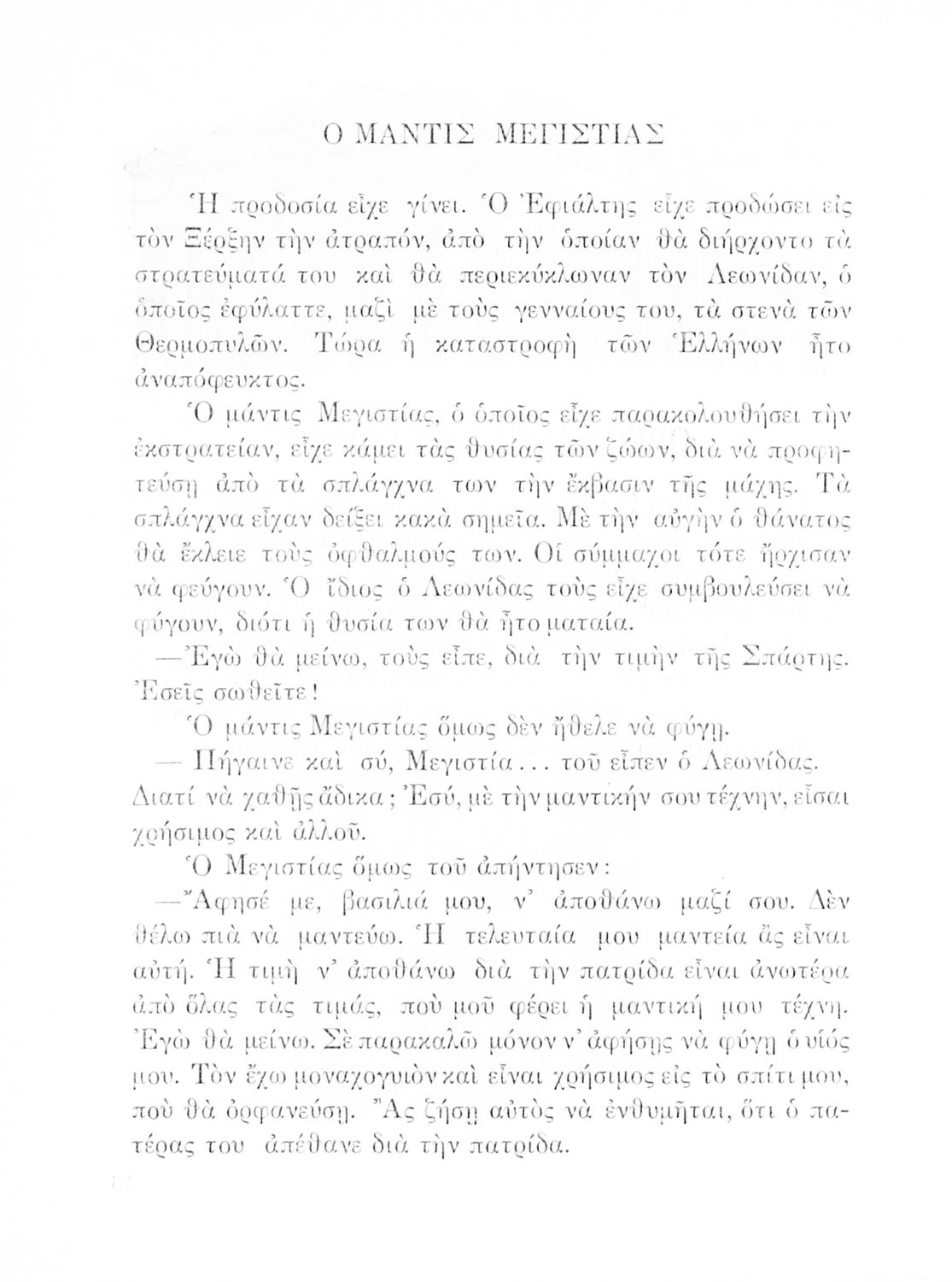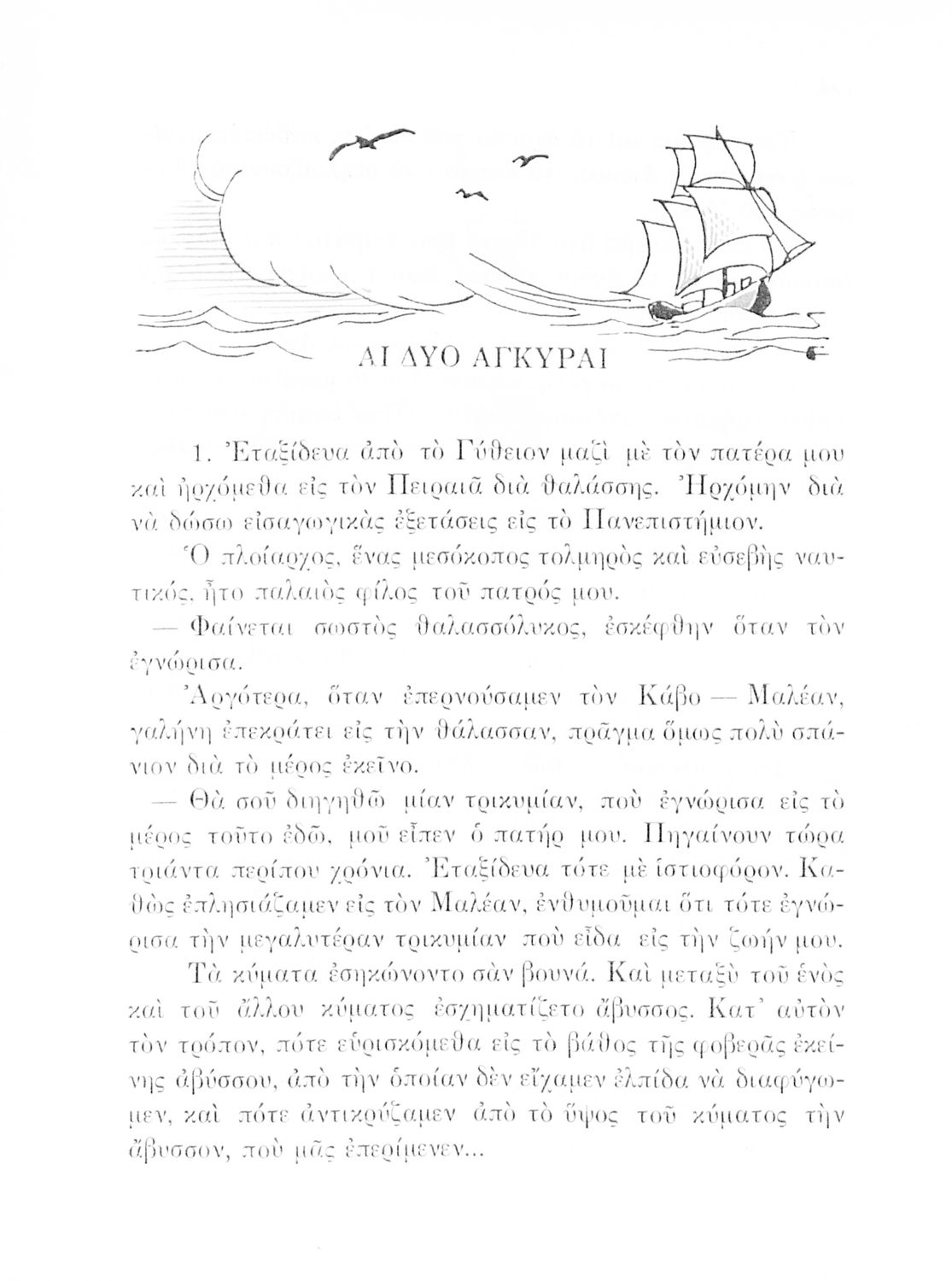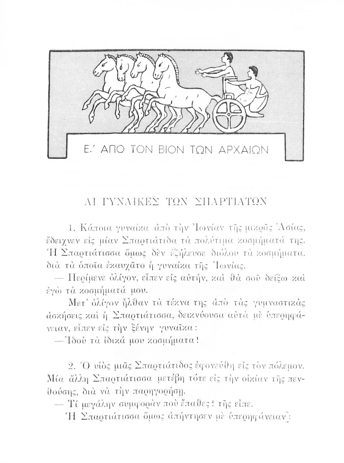 Αναγνωστικό Δ΄ Δημοτικού που περιέχει πεζά και ποιήματα εμπνευσμένα από την ελληνική ιστορία και μυθολογία, την κοινωνική ζωή και την ελληνική φύση.