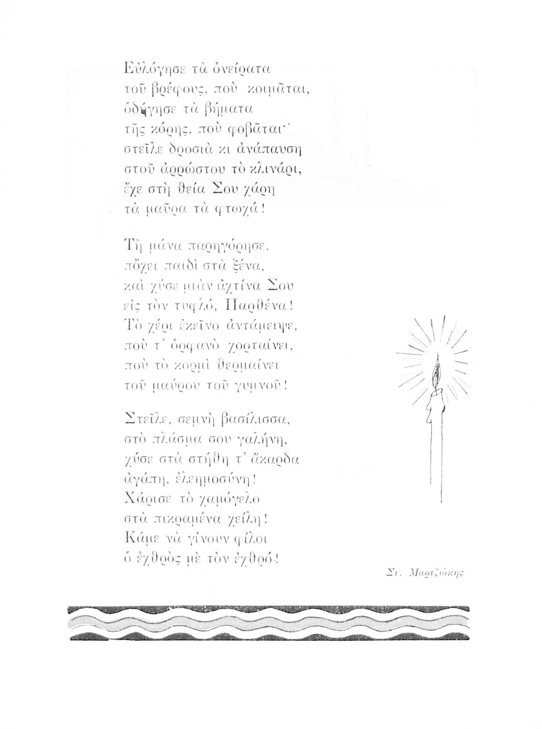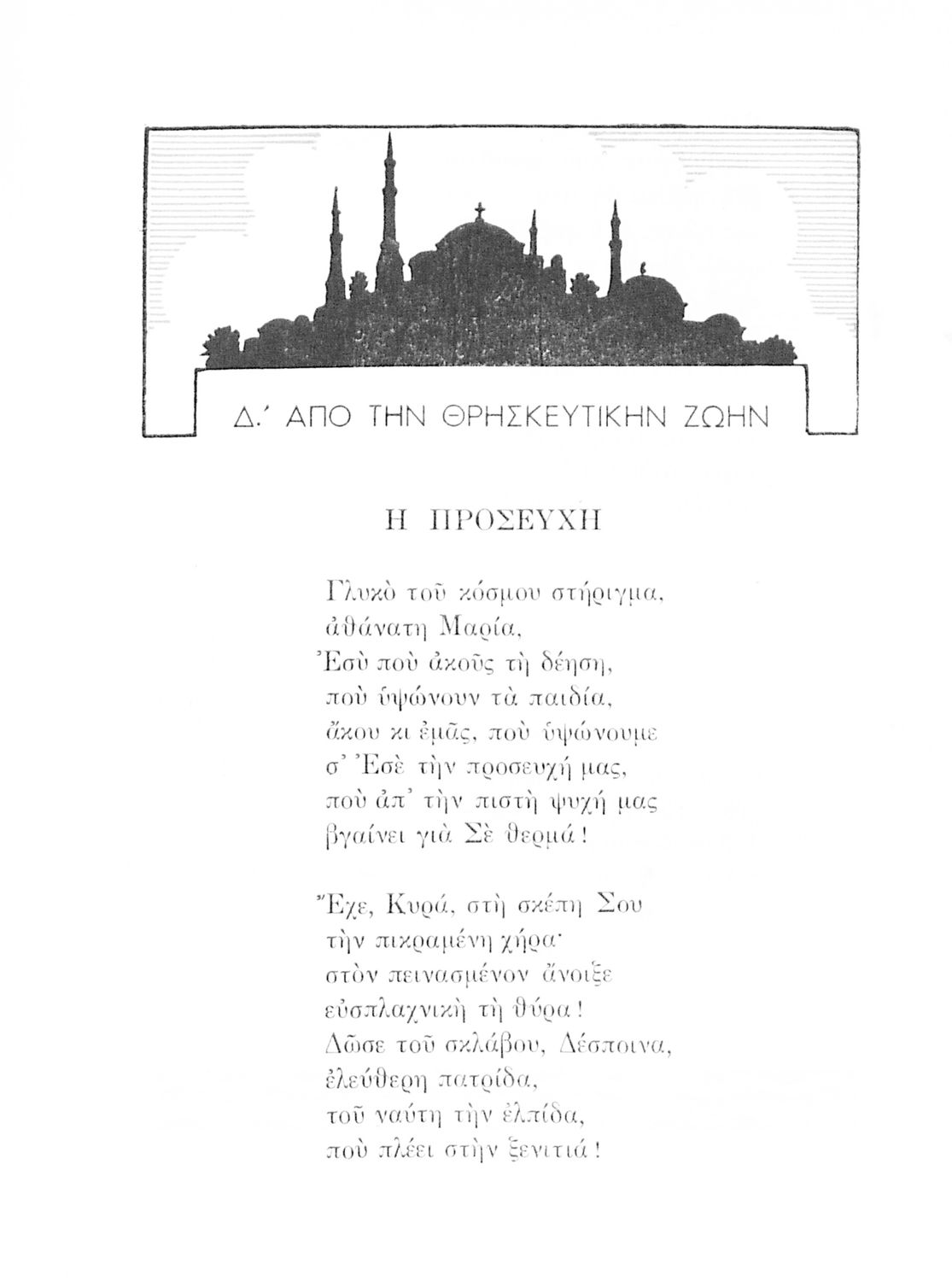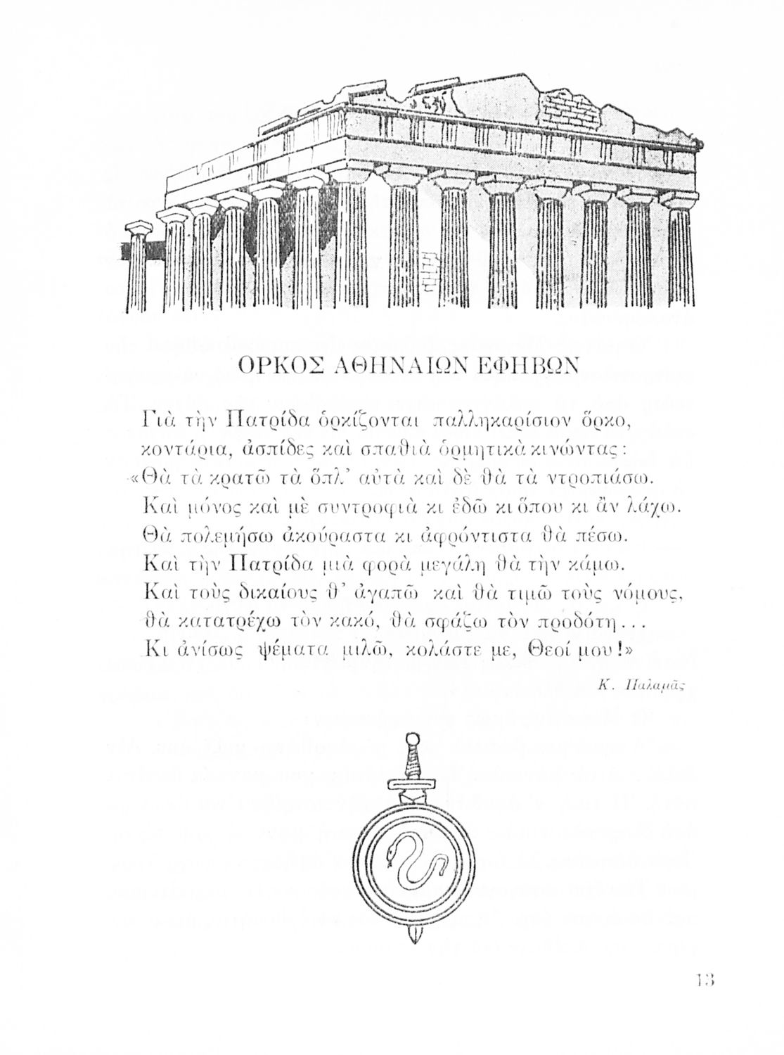 Αναγνωστικό Δ΄ Δημοτικού που περιέχει πεζά και ποιήματα εμπνευσμένα από την ελληνική ιστορία και μυθολογία, την κοινωνική ζωή και την ελληνική φύση.