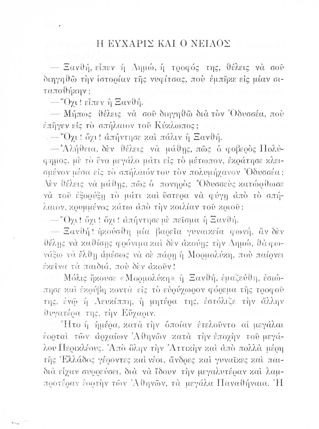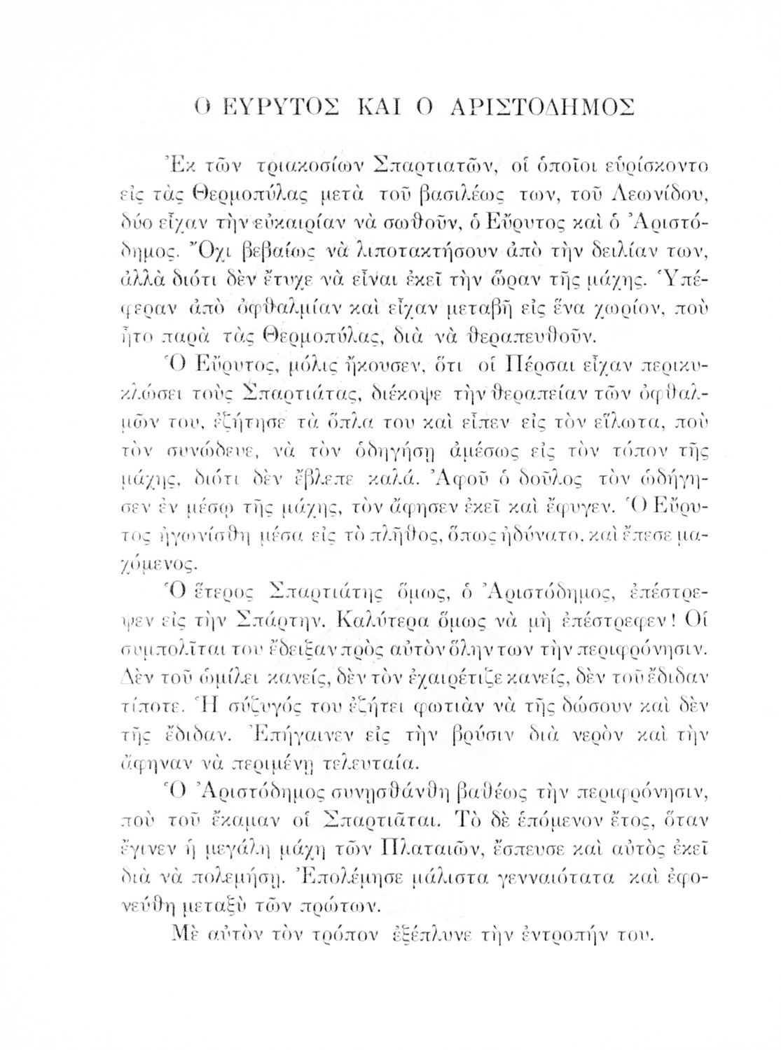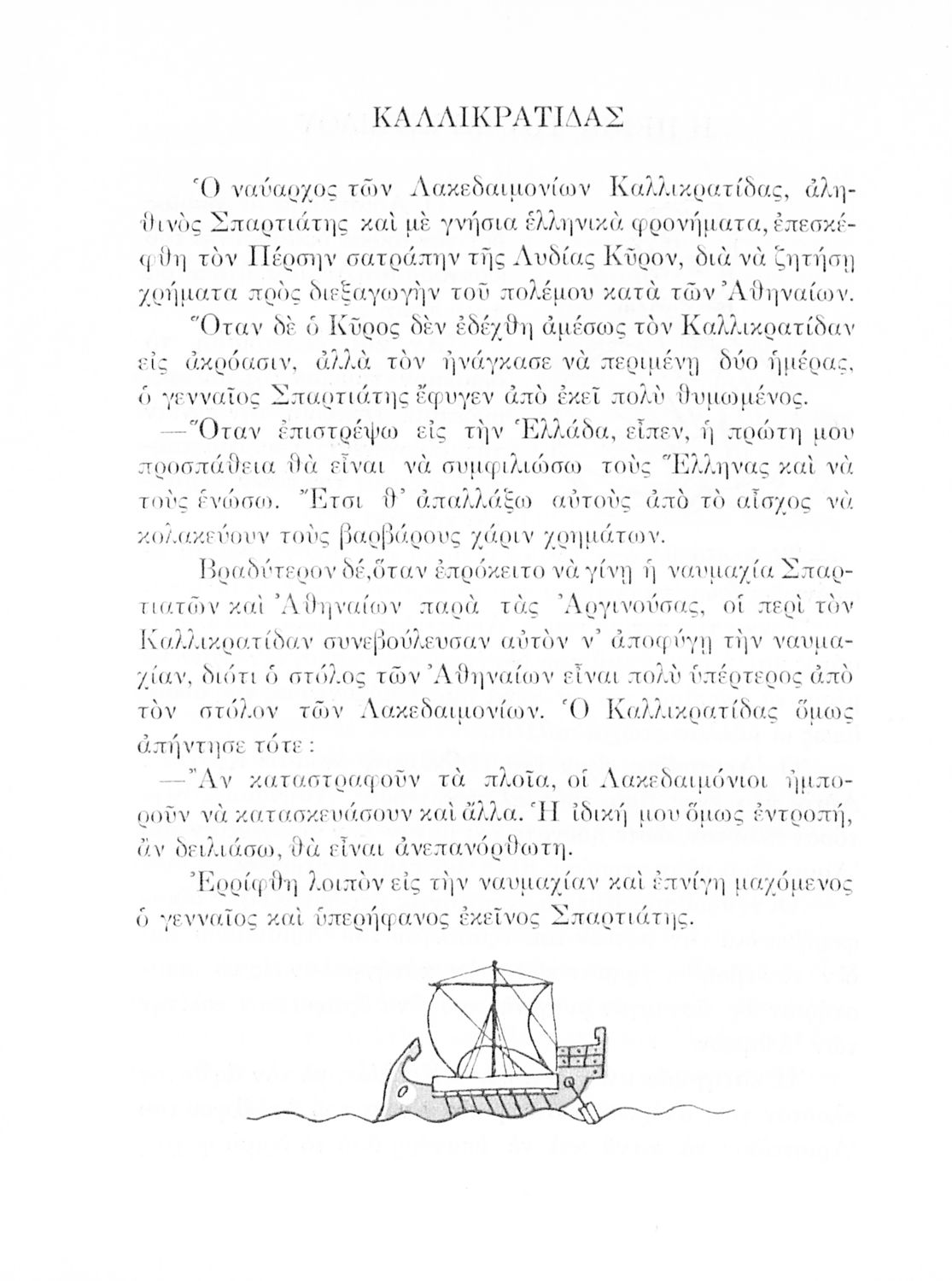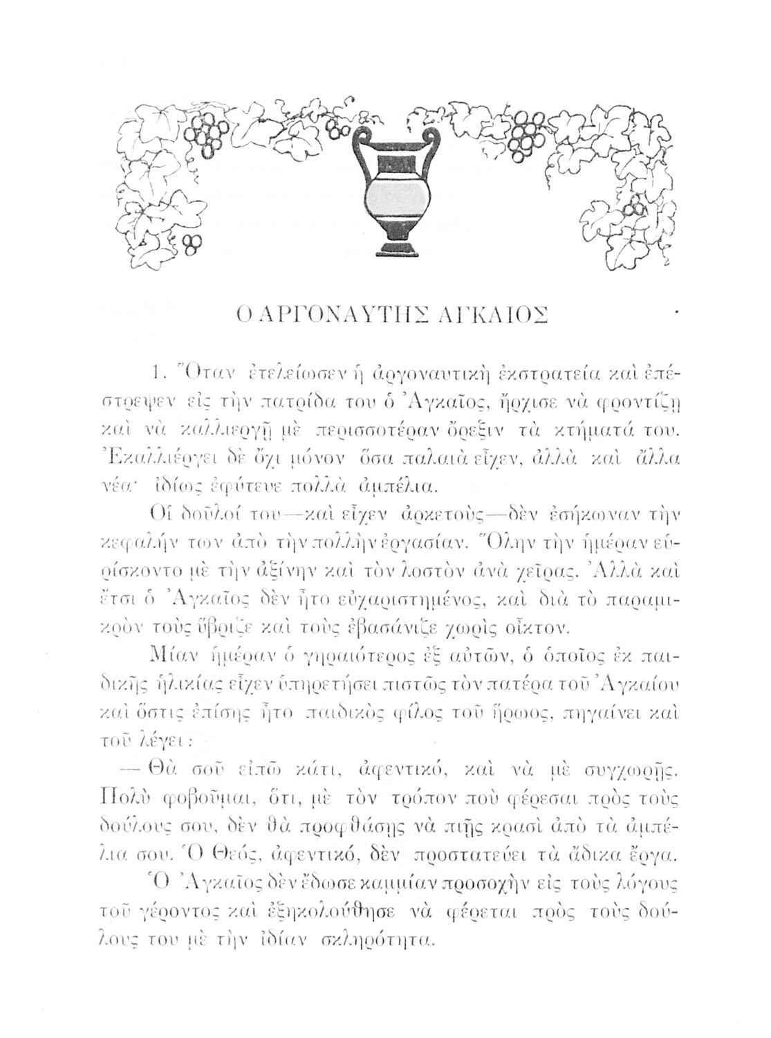 Αναγνωστικό Δ΄ Δημοτικού που περιέχει πεζά και ποιήματα εμπνευσμένα από την ελληνική ιστορία και μυθολογία, την κοινωνική ζωή και την ελληνική φύση.