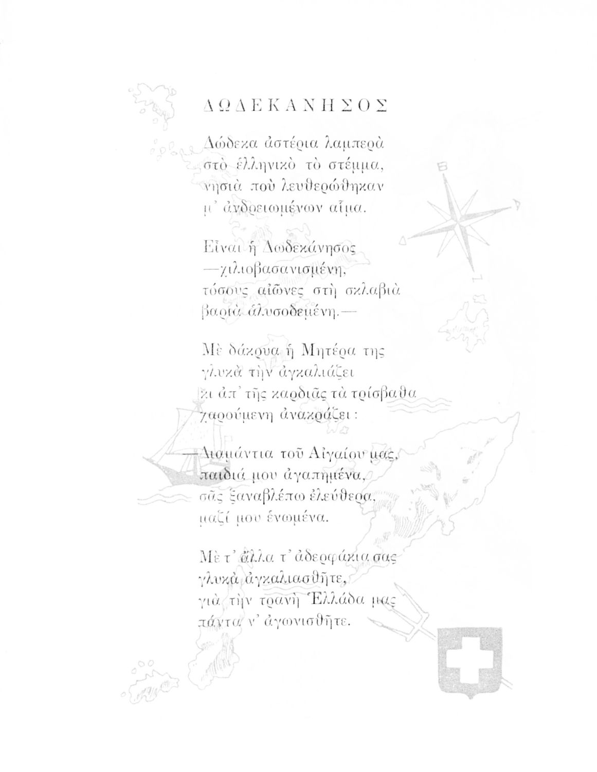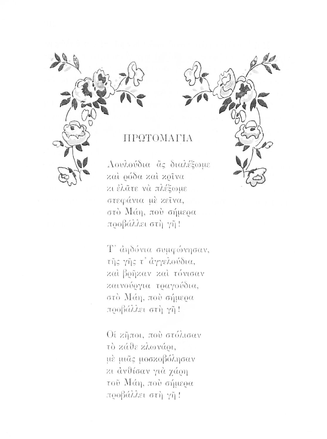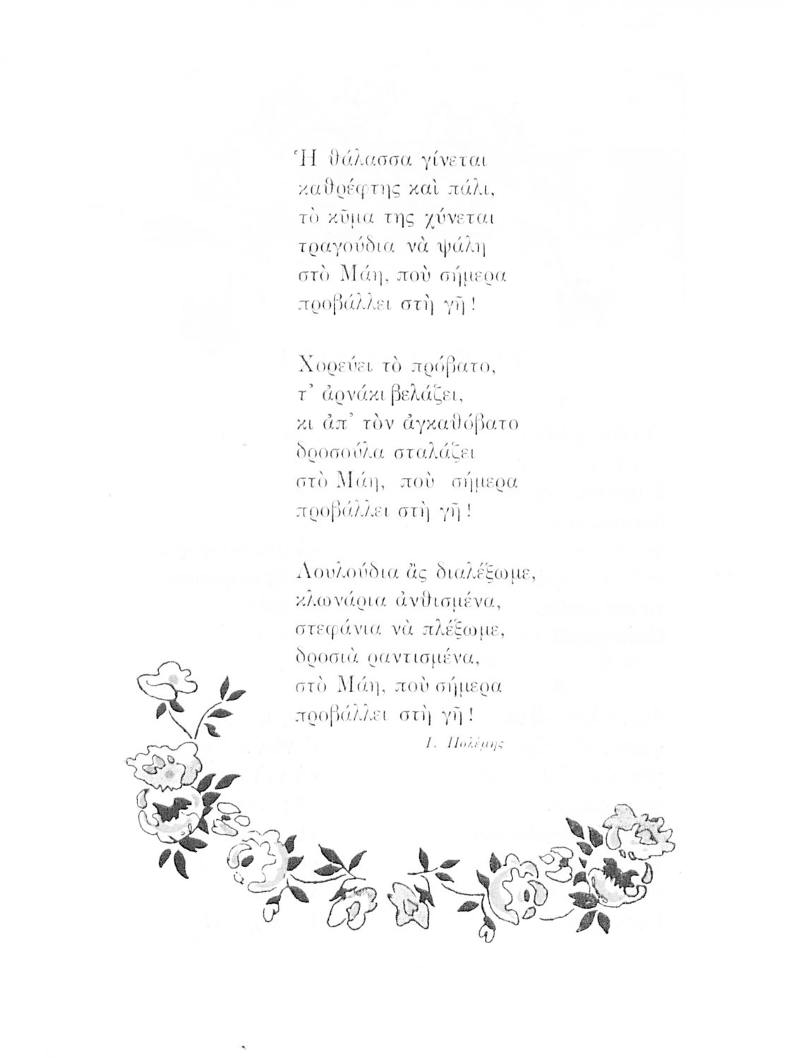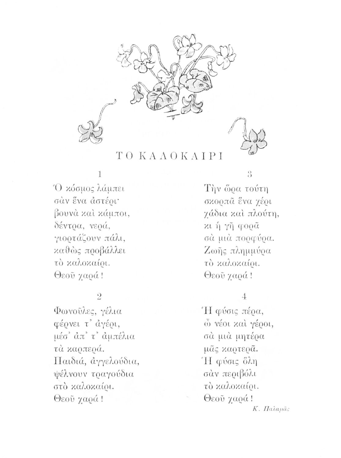 Αναγνωστικό Δ΄ Δημοτικού που περιέχει πεζά και ποιήματα εμπνευσμένα από την ελληνική ιστορία και μυθολογία, την κοινωνική ζωή και την ελληνική φύση.