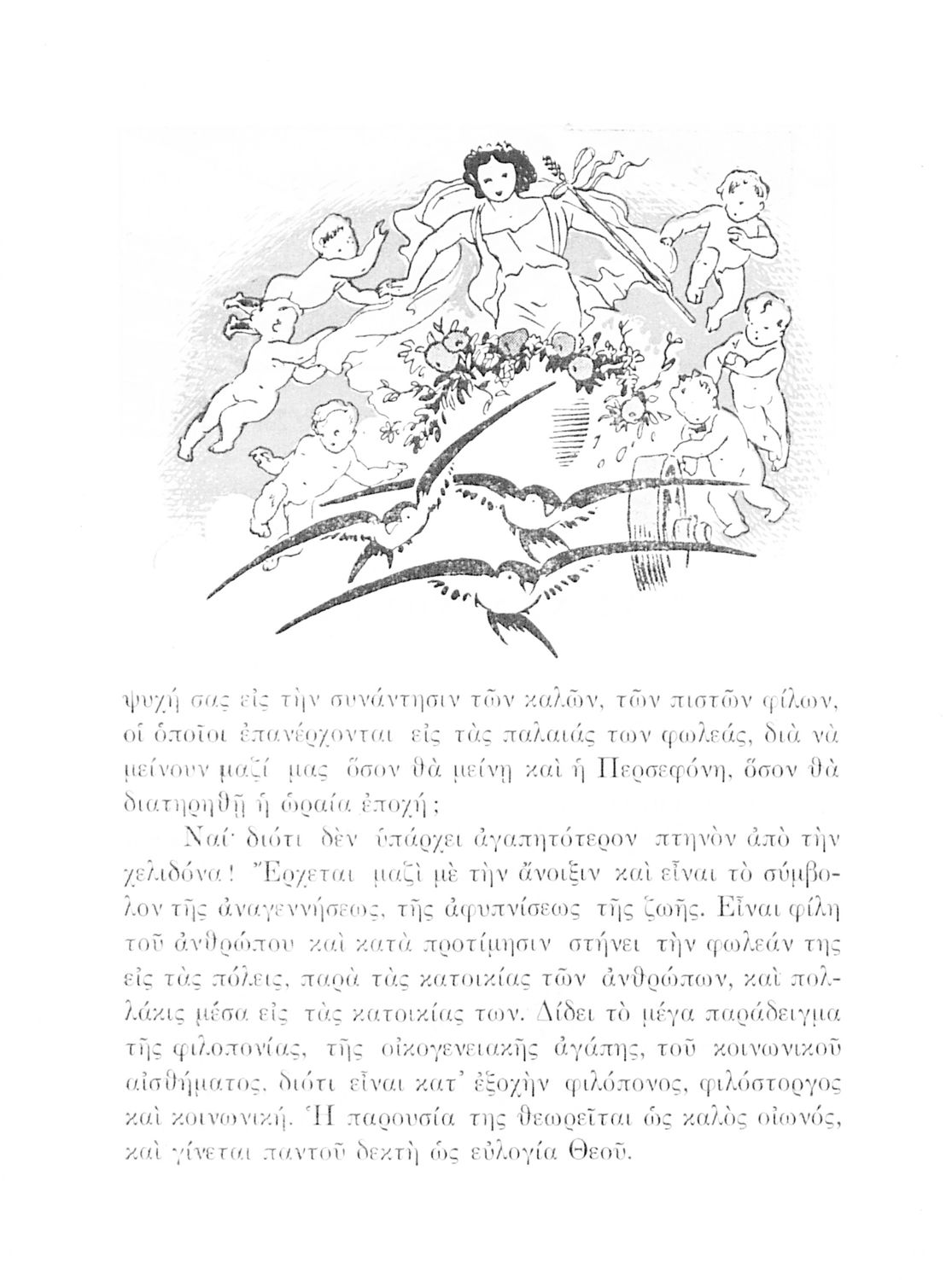 Αναγνωστικό Δ' Δημοτικού που περιλαμβάνει πεζά και ποιήματα Ελλήνων λογοτεχνών εμπνευσμένα από την ζωή στην ύπαιθρο, τις θρησκευτικές και εθνικές γιορτές και την οικογενειακή ζωή.