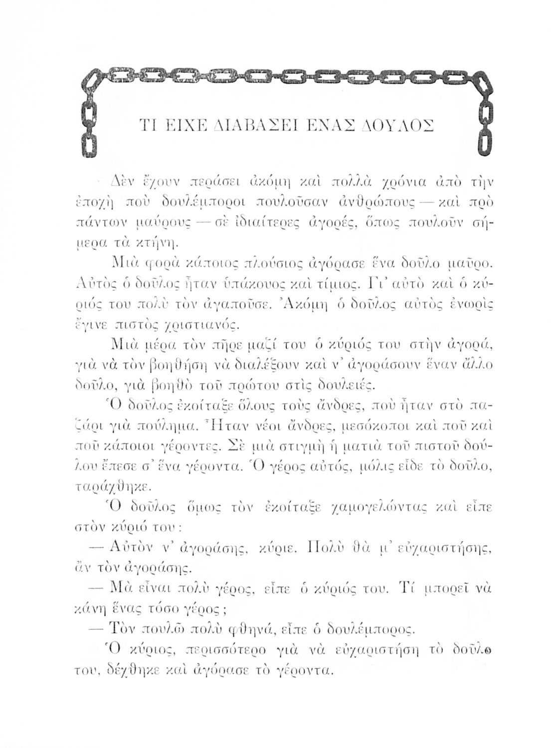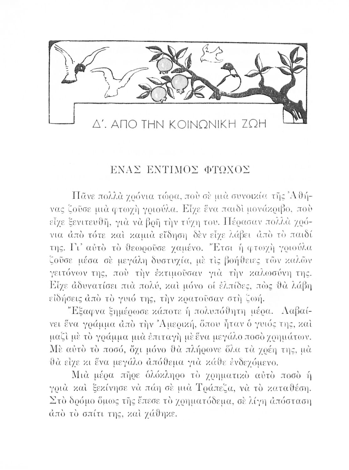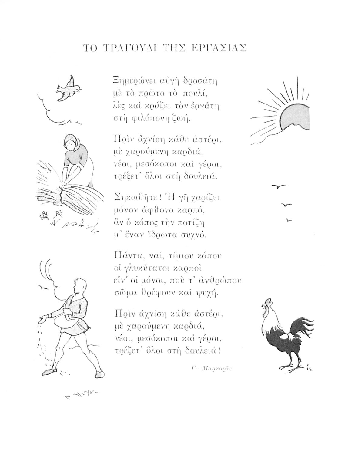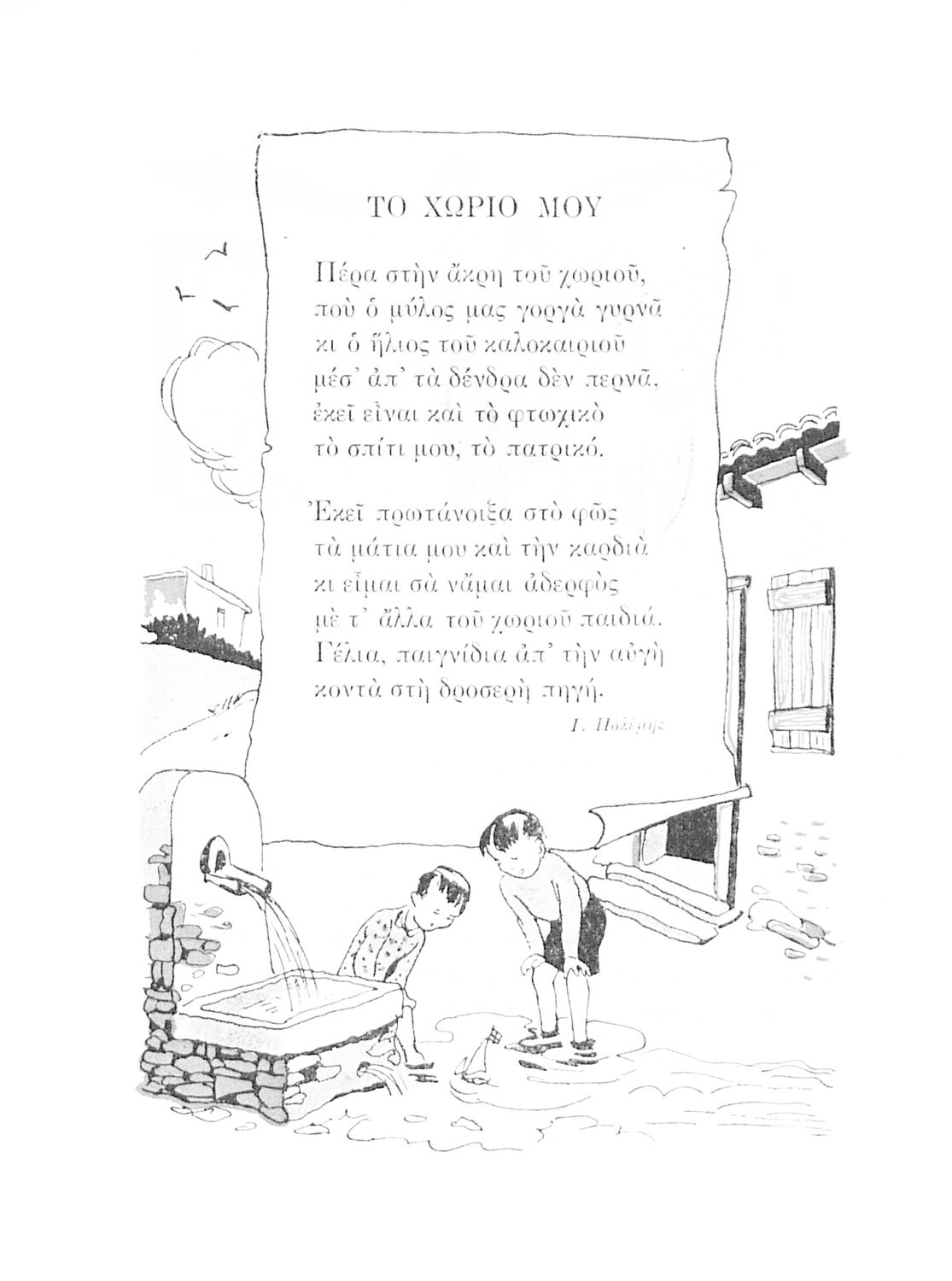 Αναγνωστικό Δ΄ Δημοτικού που περιέχει πεζά και ποιήματα εμπνευσμένα από την ελληνική ιστορία και μυθολογία, την κοινωνική ζωή και την ελληνική φύση.
