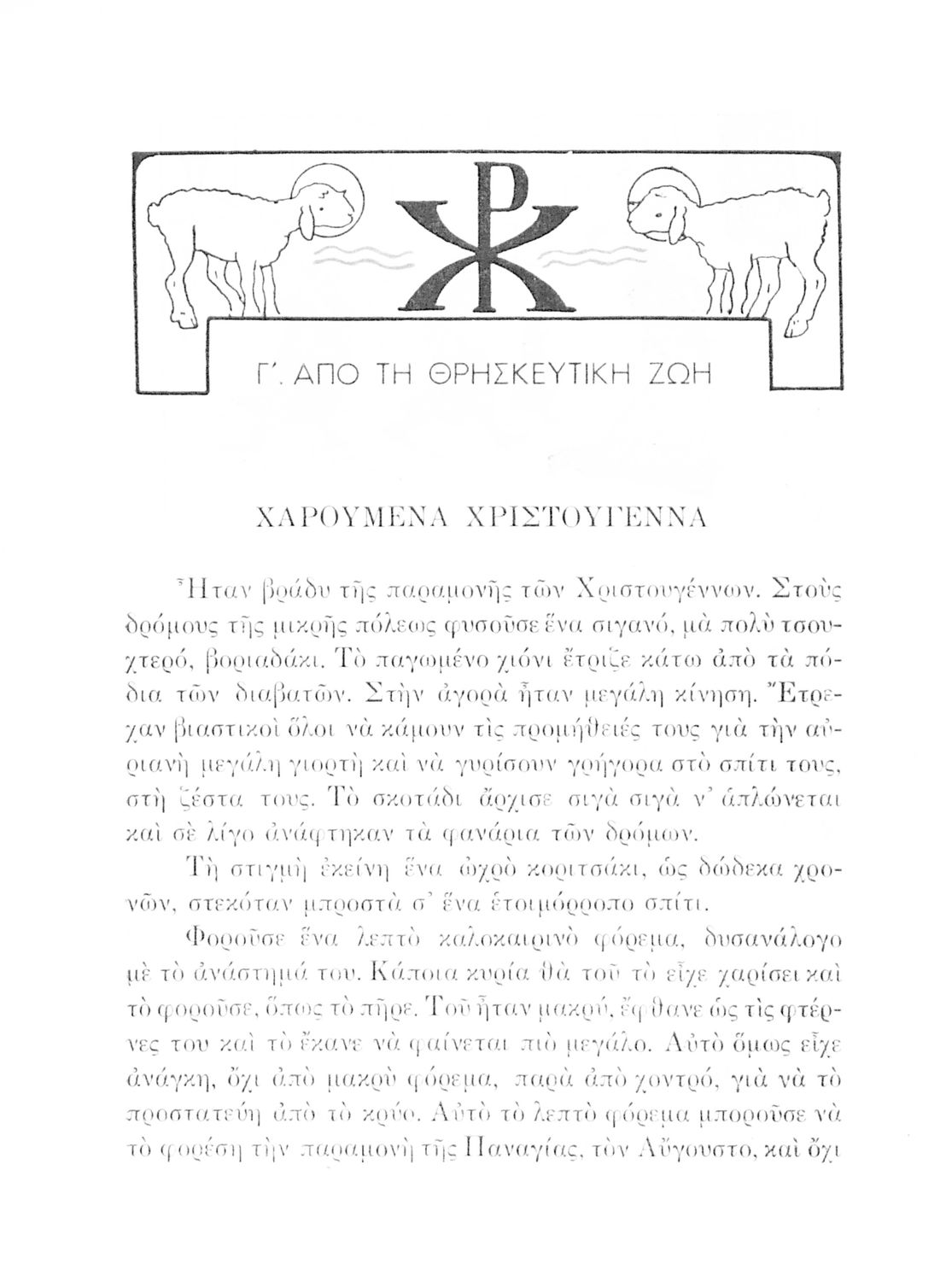 Αναγνωστικό Δ' Δημοτικού που περιλαμβάνει πεζά και ποιήματα Ελλήνων λογοτεχνών εμπνευσμένα από την ζωή στην ύπαιθρο, τις θρησκευτικές και εθνικές γιορτές και την οικογενειακή ζωή.