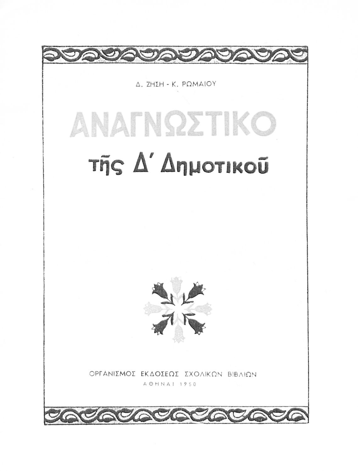 Αναγνωστικό Δ΄ Δημοτικού που περιέχει πεζά και ποιήματα με περιεχόμενο διδακτικό και ηθικοπλαστικό εμπνευσμένα από την αγροτική ζωή και κοινωνική ζωή, την ελληνική φύση και παράδοση, και τις ασχολίες των ...