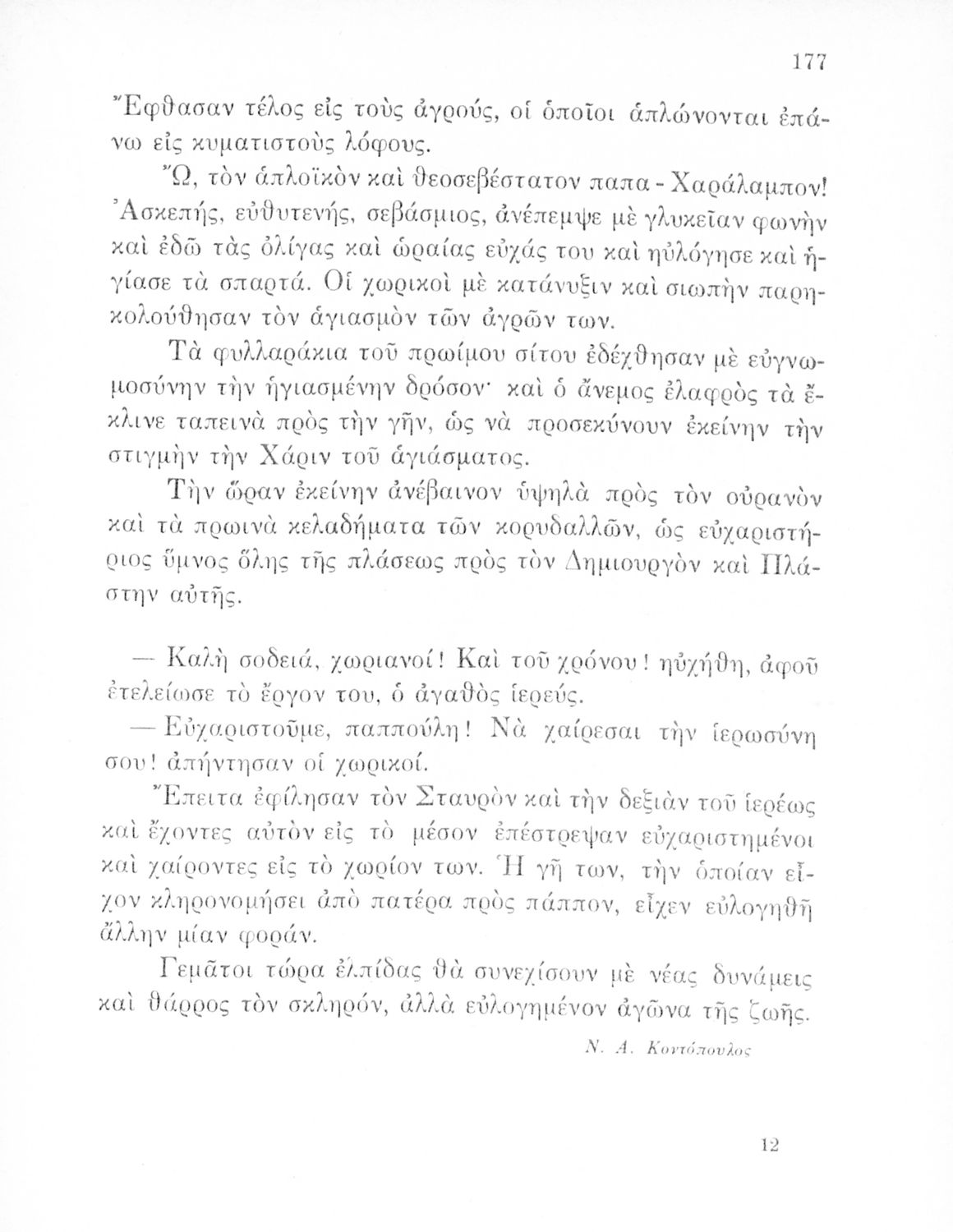 Αναγνωστικό Ε΄ Δημοτικού που περιλαμβάνει πεζογραφήματα εμπνευσμένα από την ελληνική φύση, την αγροτική ζωή και από το τρίπτυχο "Πατρίς- θρησκεία- οικογένεια".