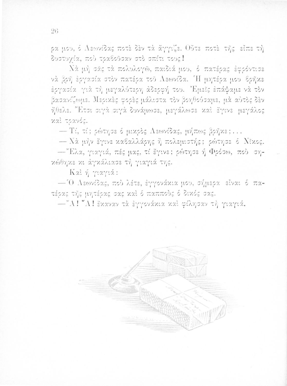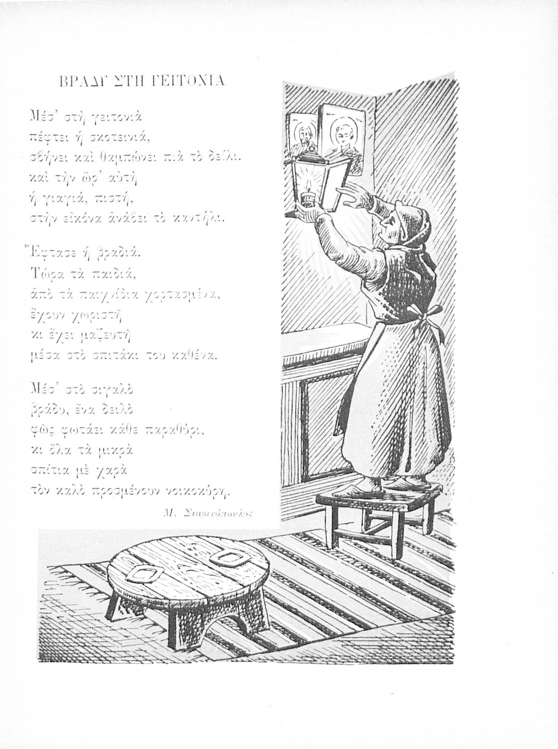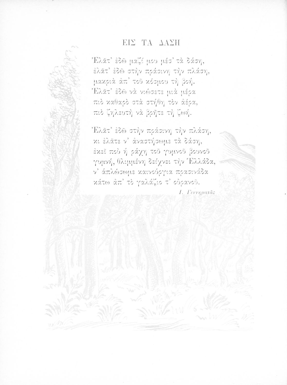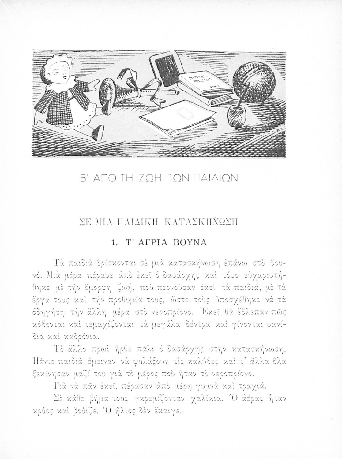 Αναγνωστικό Δ' Δημοτικού που περιέχει πεζά και ποιήματα εμπνευσμένα από τη θρησκευτική, εθνική, κοινωνική και ατομική ζωή, την ελληνική φύση ιστορία και μυθολογία και τις σχέσεις μεταξύ των λαών.