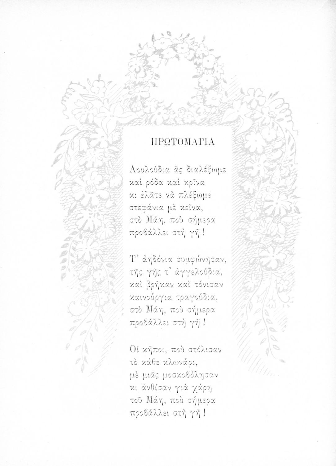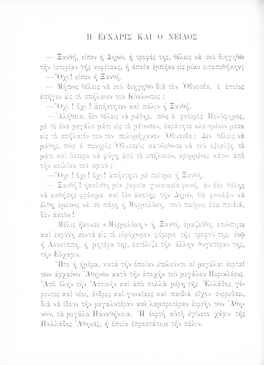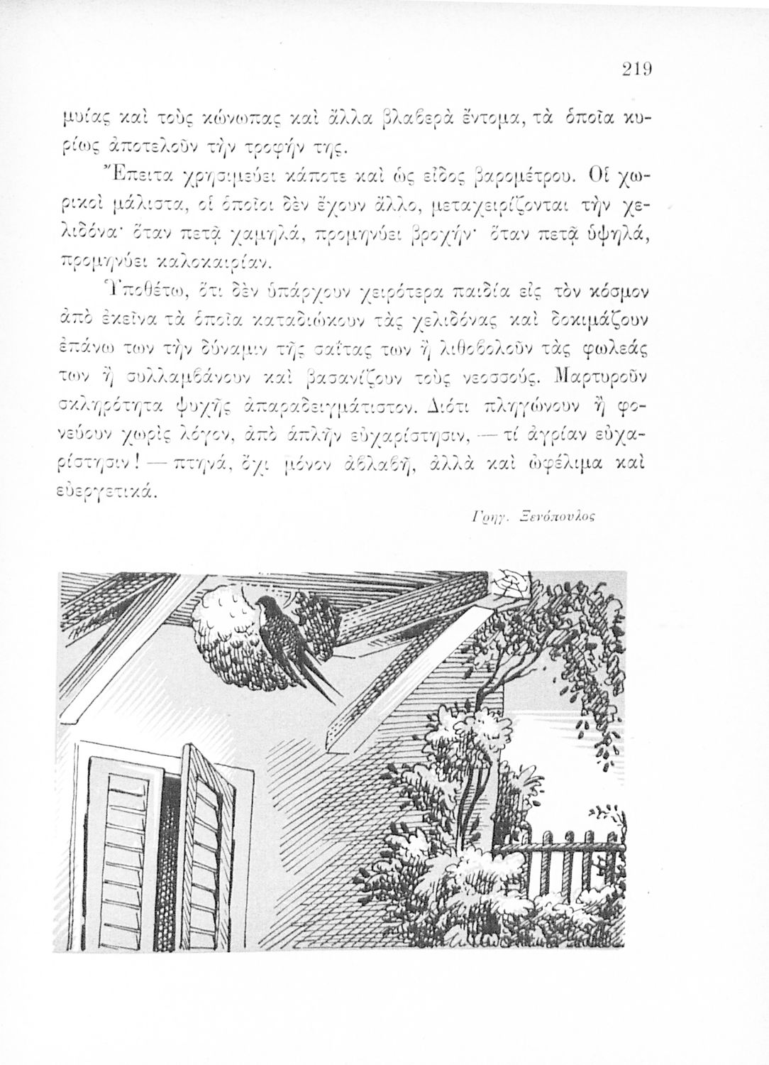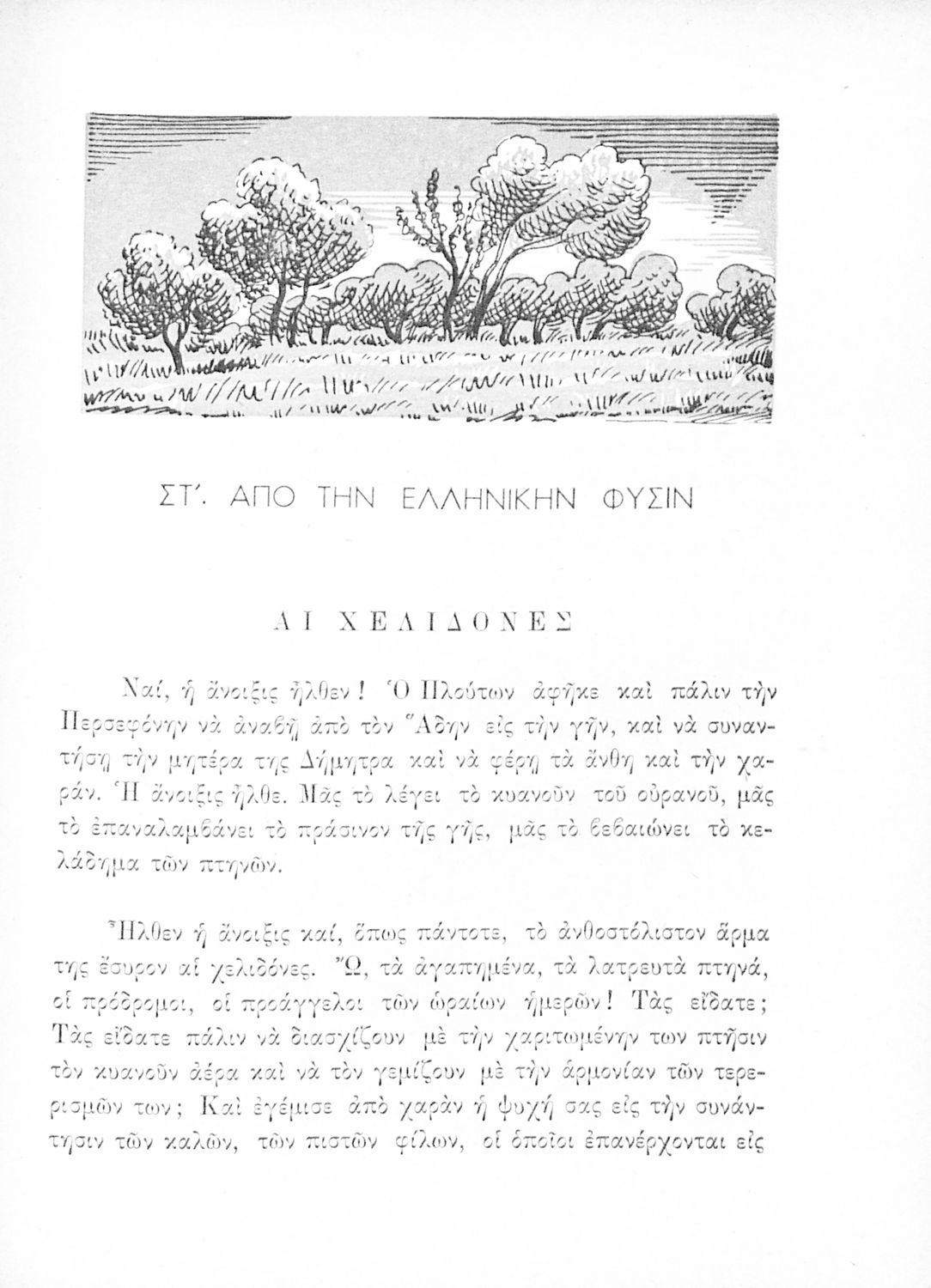 Αναγνωστικό Δ' Δημοτικού που περιέχει πεζά και ποιήματα εμπνευσμένα από τη θρησκευτική, εθνική, κοινωνική και ατομική ζωή, την ελληνική φύση ιστορία και μυθολογία και τις σχέσεις μεταξύ των λαών.