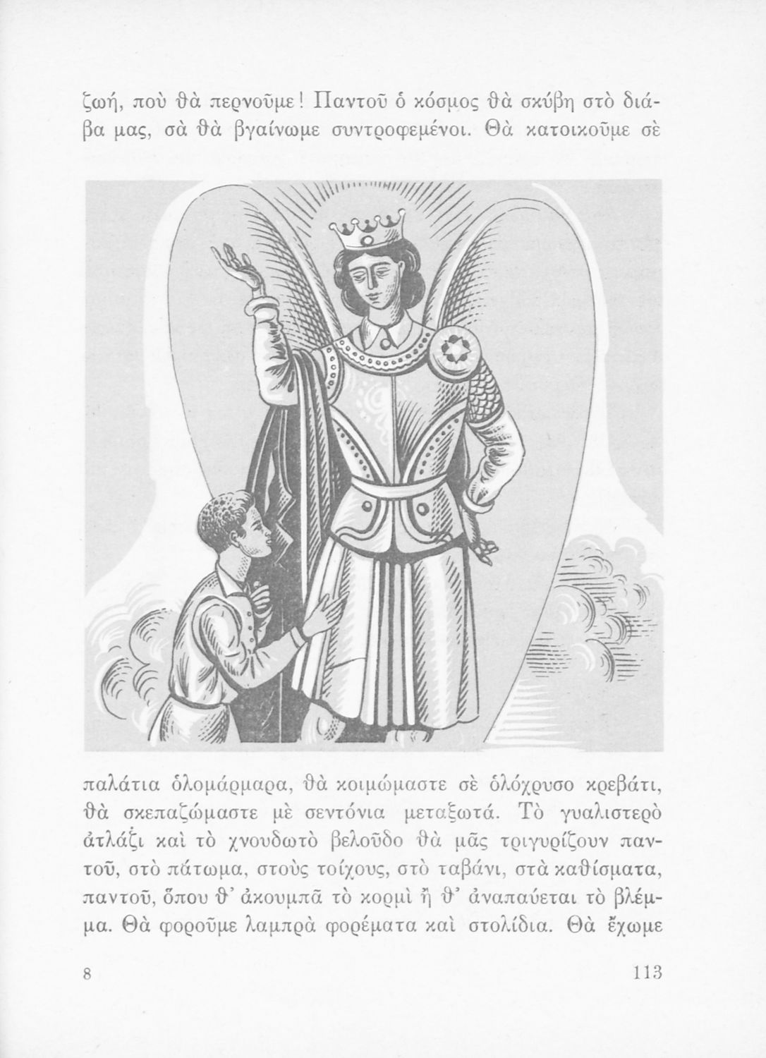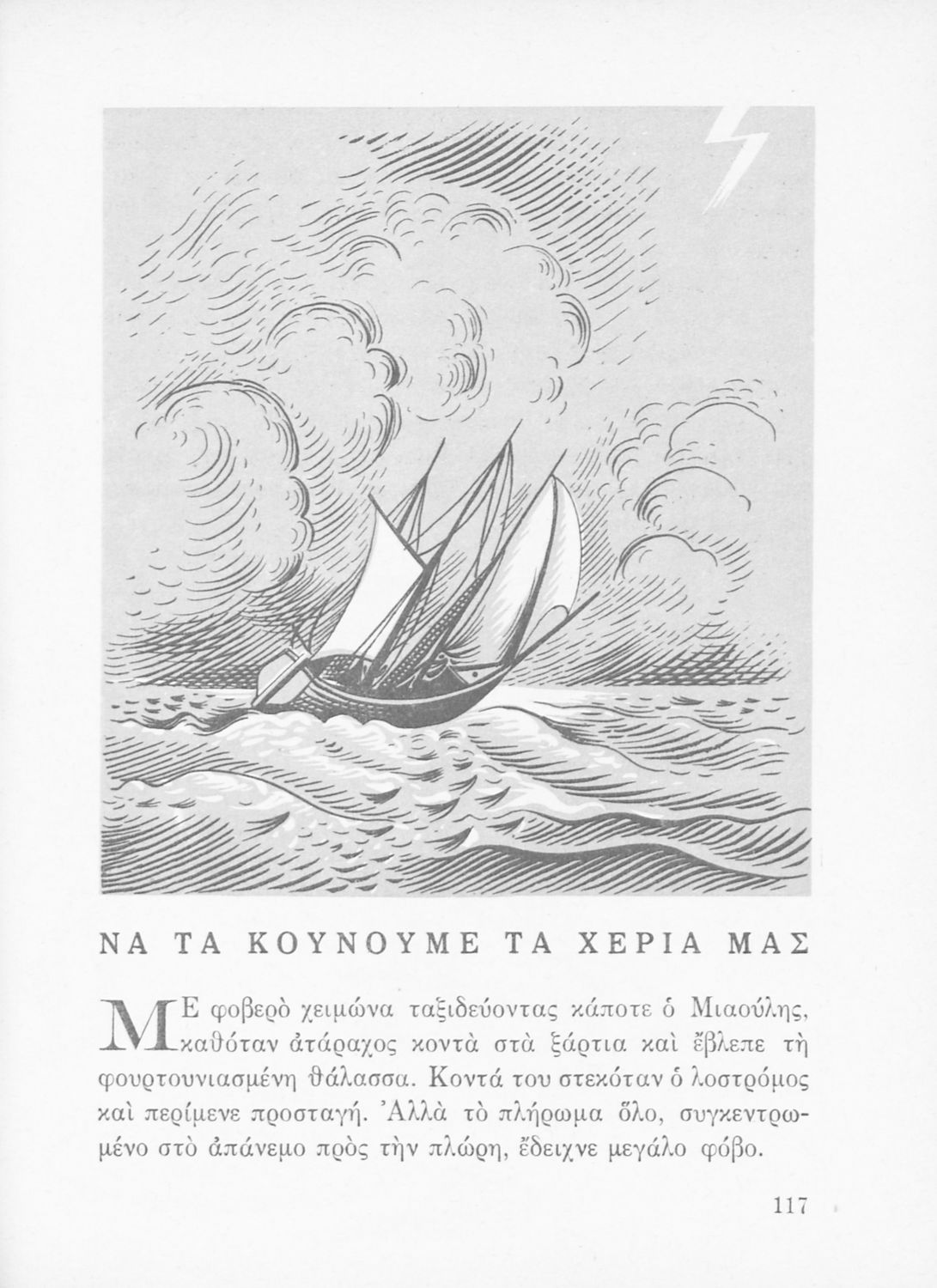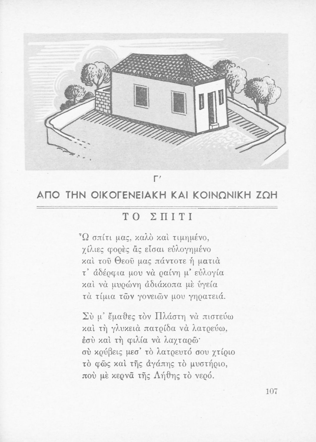Αναγνωστικό ΣΤ΄ Δημοτικού που περιλαμβάνει θέματα από τις ελληνικές παραδόσεις και μύθους, την ελληνική φύση και θάλασσα και το τρίπτυχο "Πατρίς-θρησκεία-οικογένειαα".