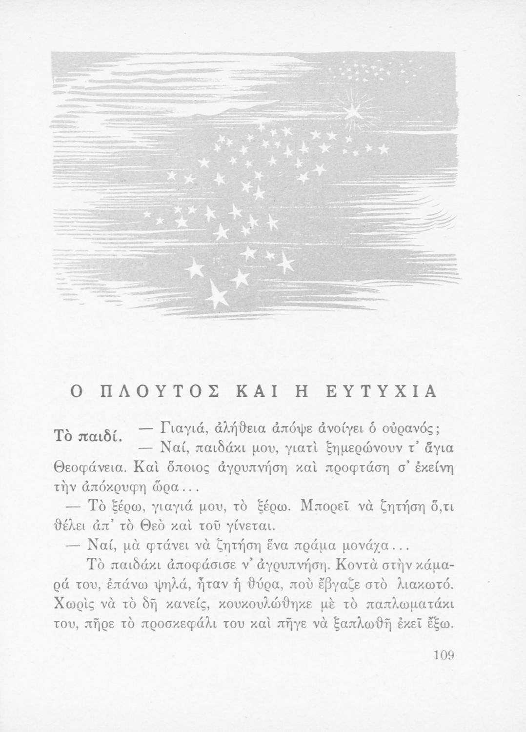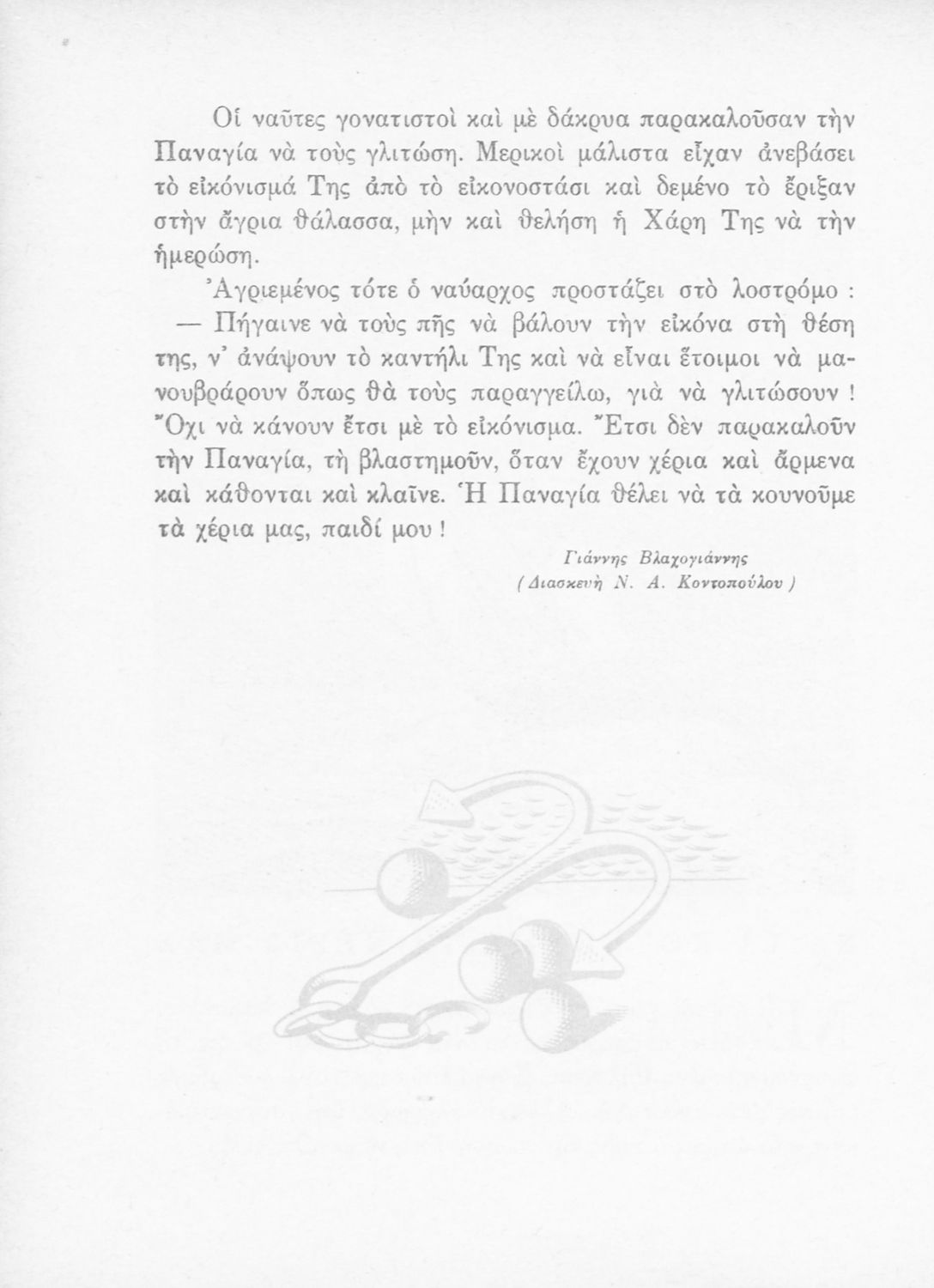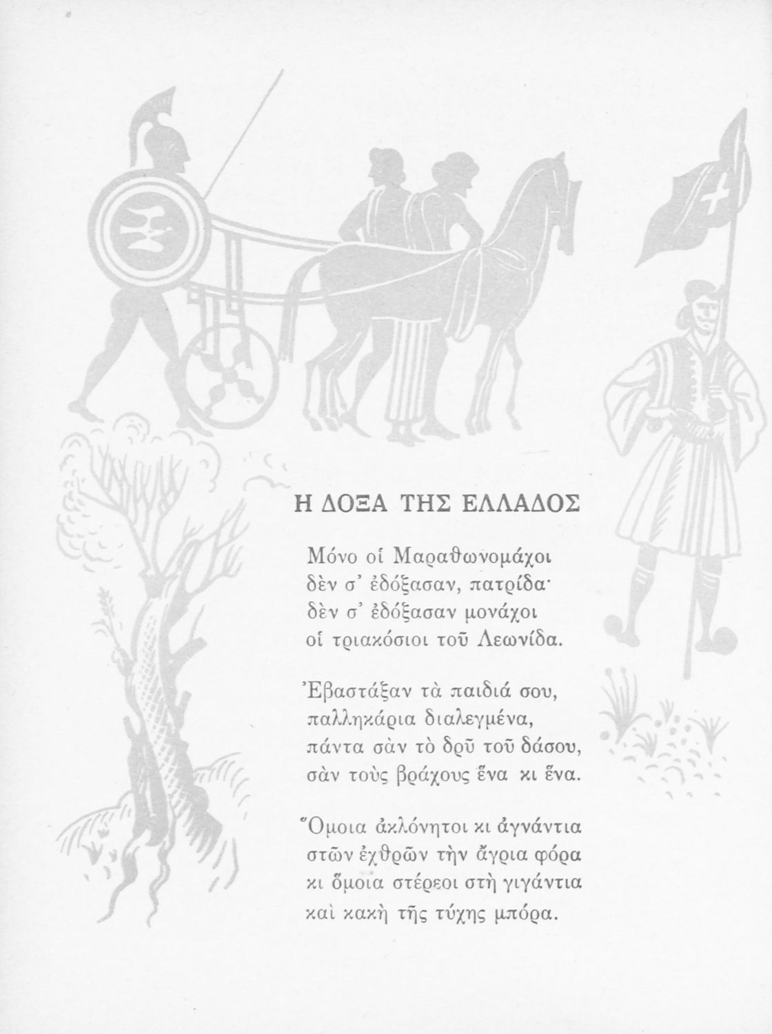 Αναγνωστικό ΣΤ΄ Δημοτικού που περιλαμβάνει θέματα από τις ελληνικές παραδόσεις και μύθους, την ελληνική φύση και θάλασσα και το τρίπτυχο "Πατρίς-θρησκεία-οικογένειαα".
