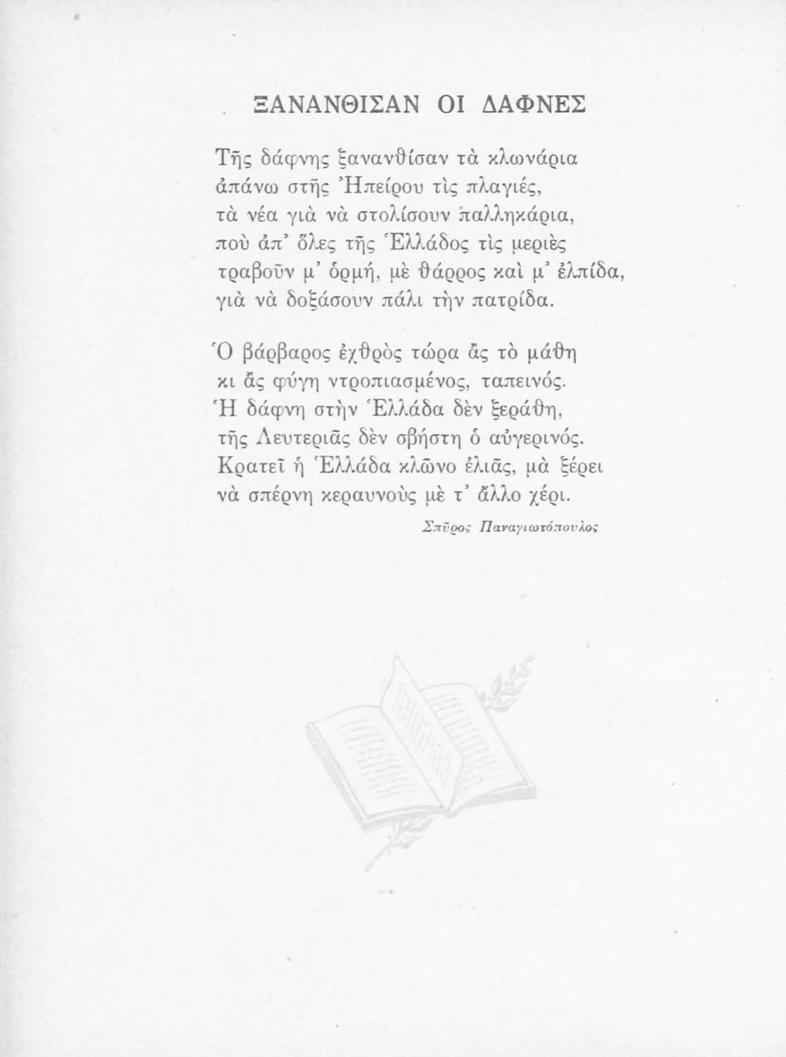 Αναγνωστικό της ΣΤ΄ Δημοτικού που κυκλοφόρησε σε 7.000 αντίτυπα 25 ημέρες πριν την 4η Αυγούστου 1936, οπότε κατά την επόμενη σχολική χρονιά διδάχτηκε ελάχιστα και η έκδοσή του με αυτή την μορφή σταμάτησε.