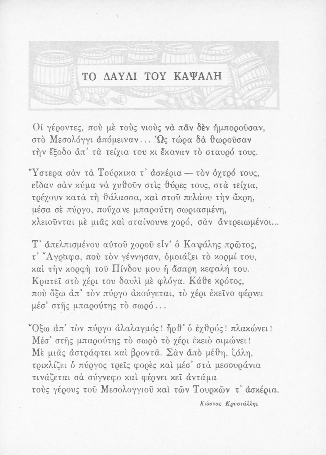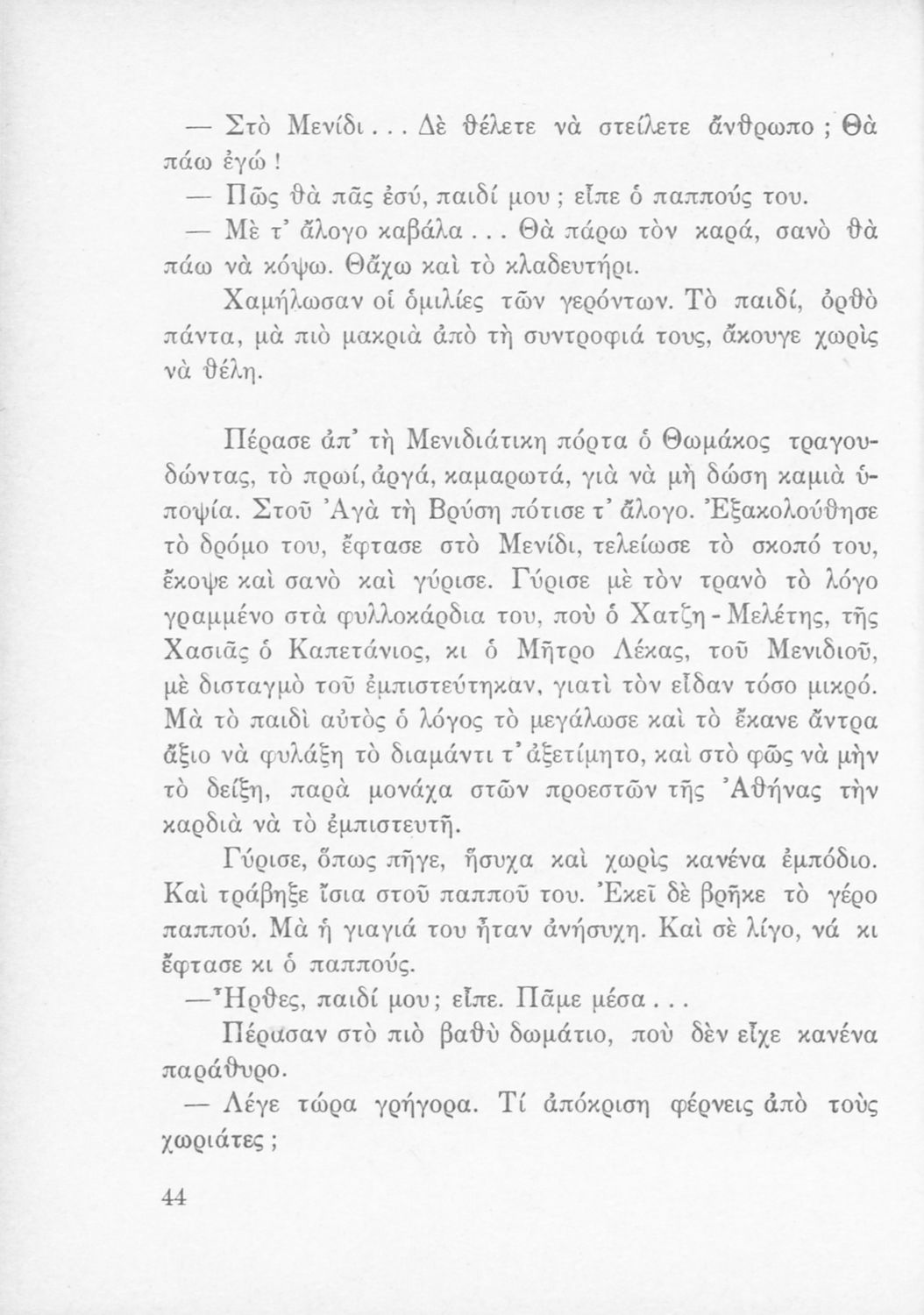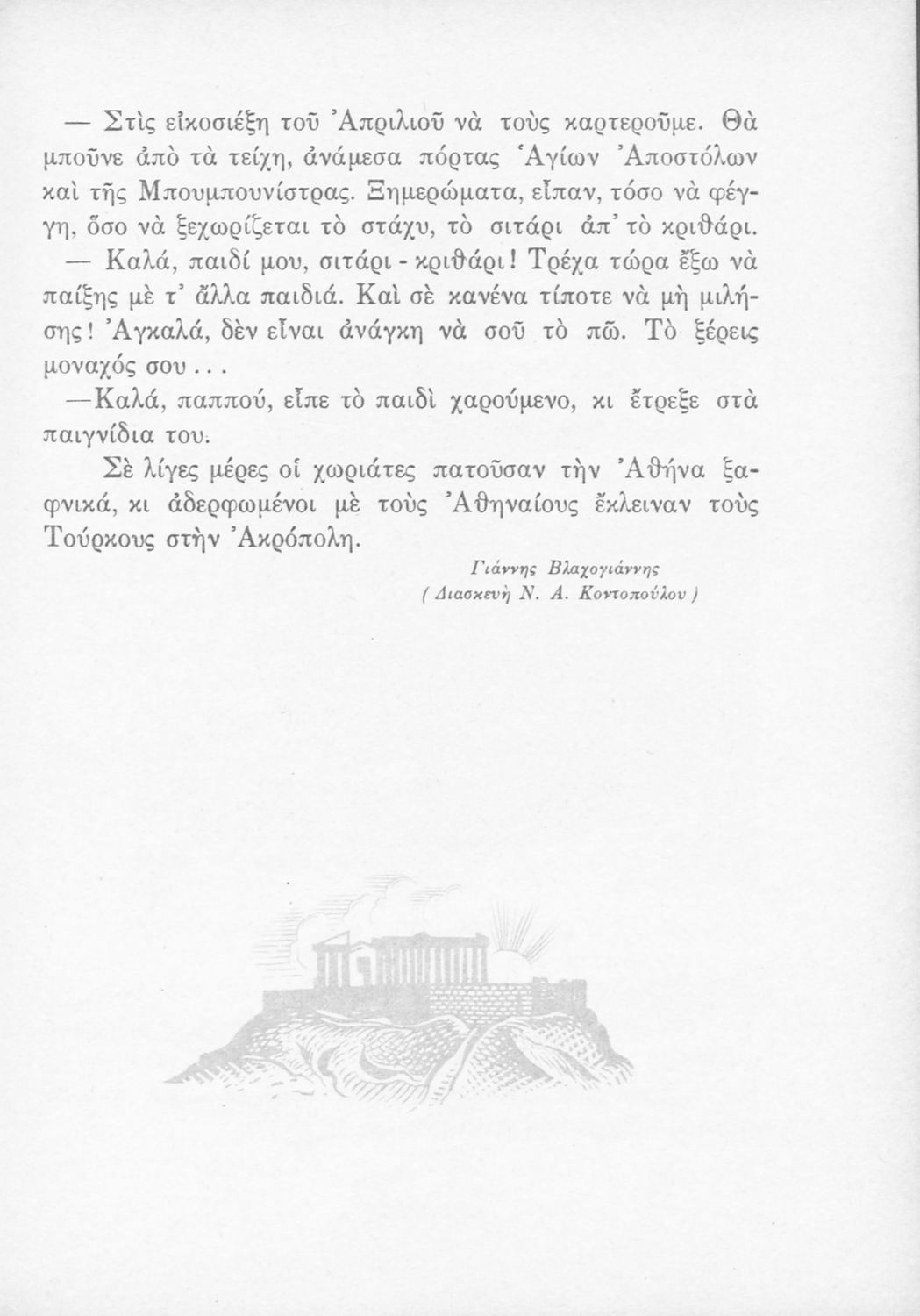 Αναγνωστικό ΣΤ΄ Δημοτικού που περιέχει πεζά και ποιήματα εμπνευσμένα από τη θρησκευτική, εθνική, κοινωνική και ατομική ζωή, την ελληνική φύση, ιστορία και μυθολογία και την υγιεινή.