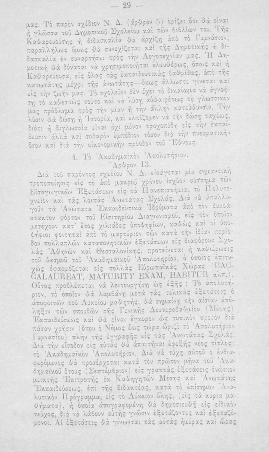 Τίτλος: Περί οργανώσεως και διοικήσεως της Γενικής Εκπαιδεύσεως (Στοιχειώδους και Μέσης)