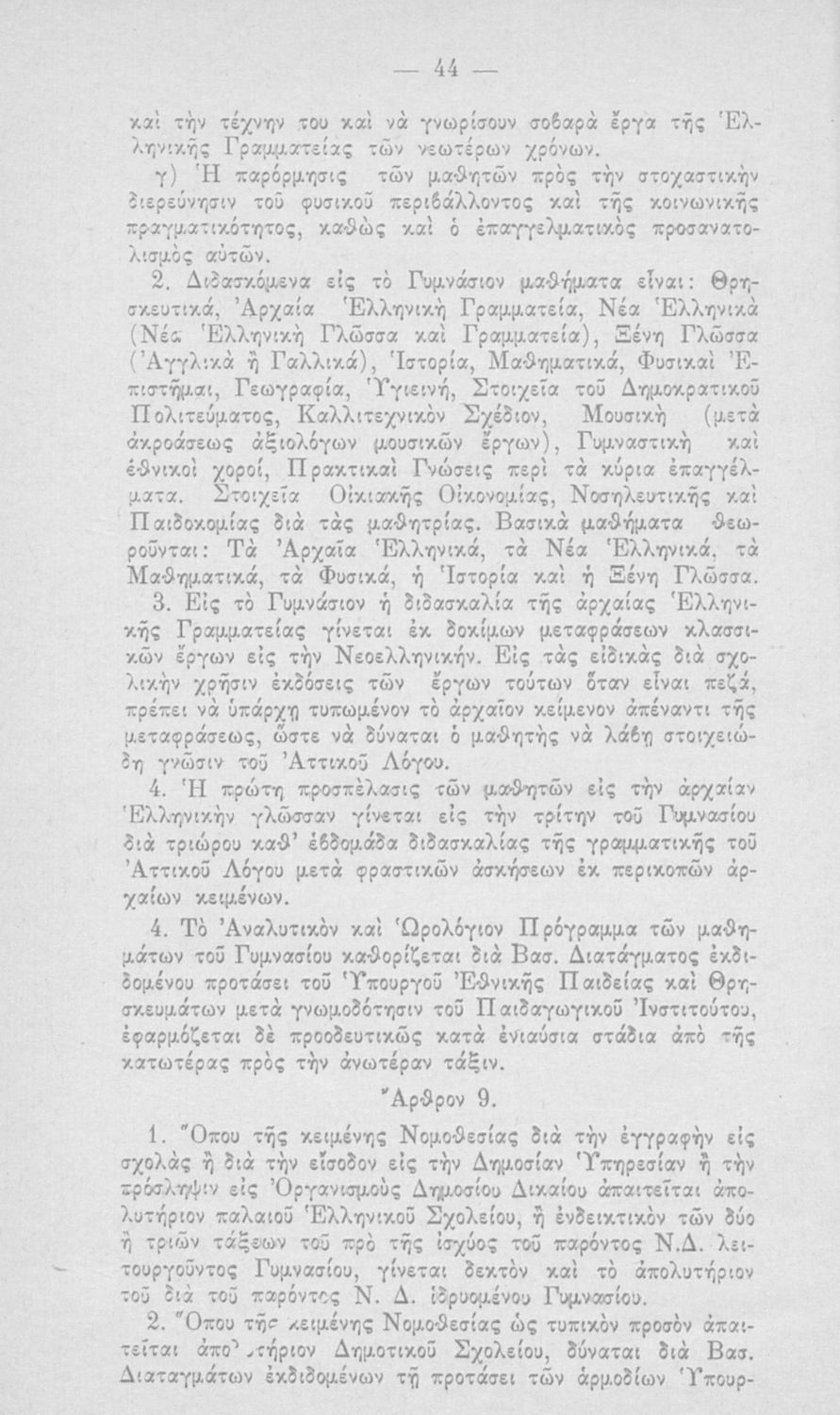 Αναλυτικό πρόγραμμα για τα Γυμνάσια και Λύκεια που περιέχει και τη νομοθεσία για την γενική εκπαίδευση.