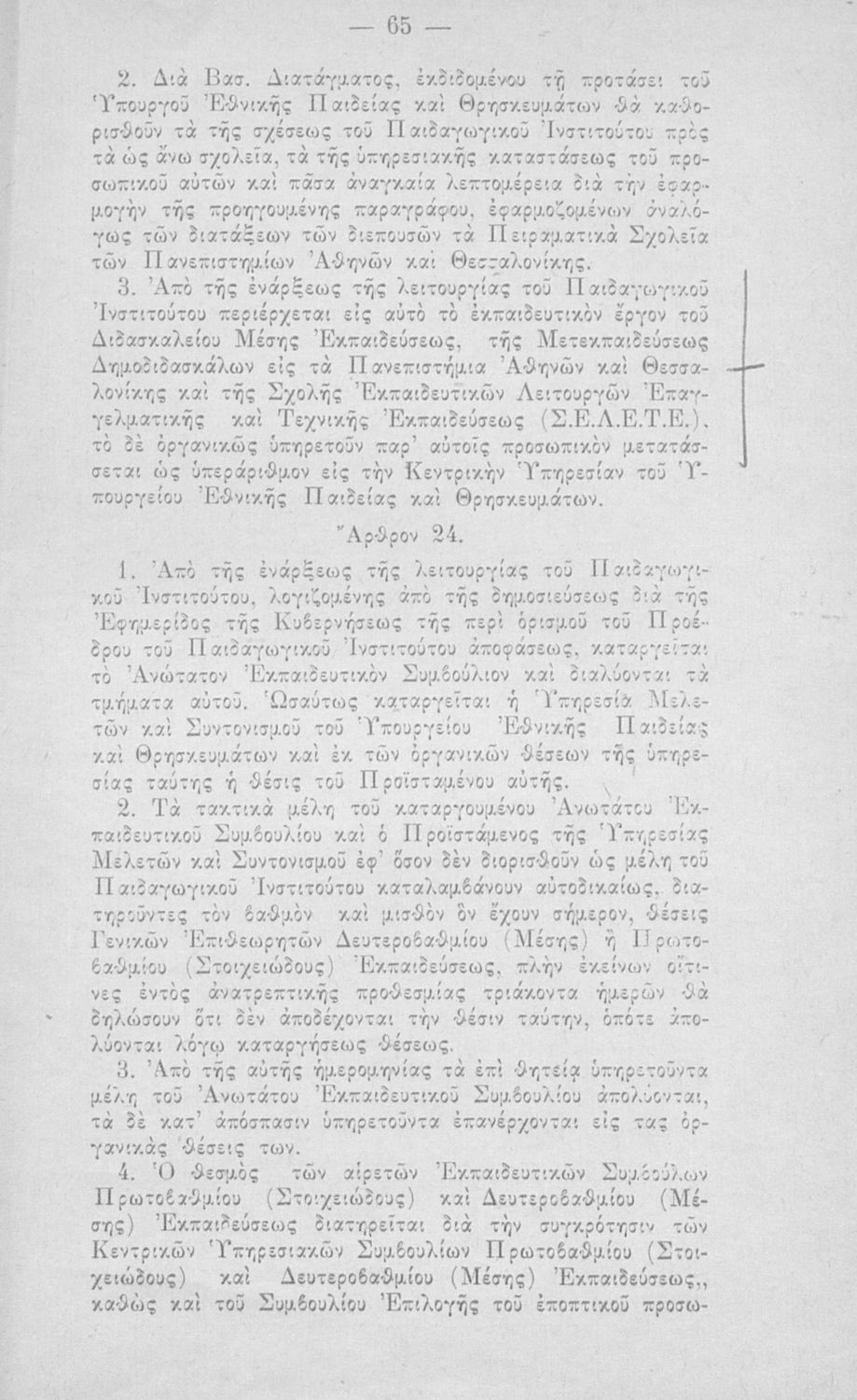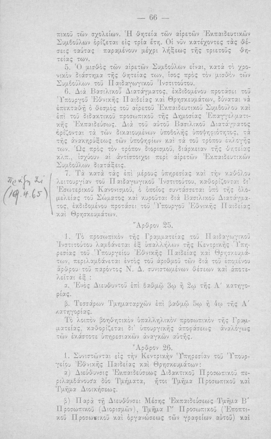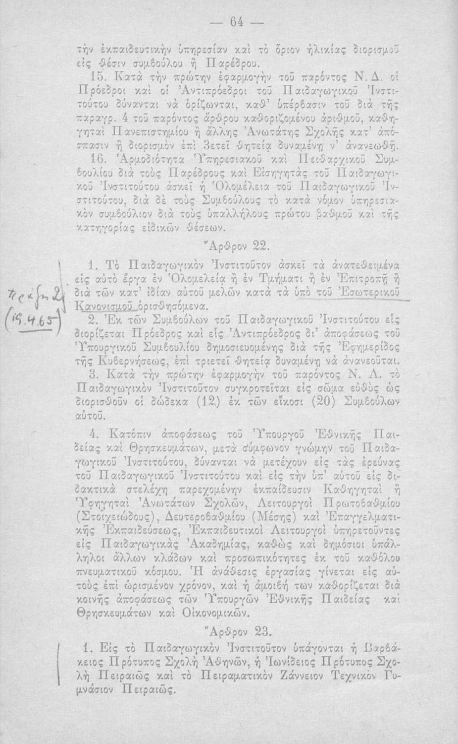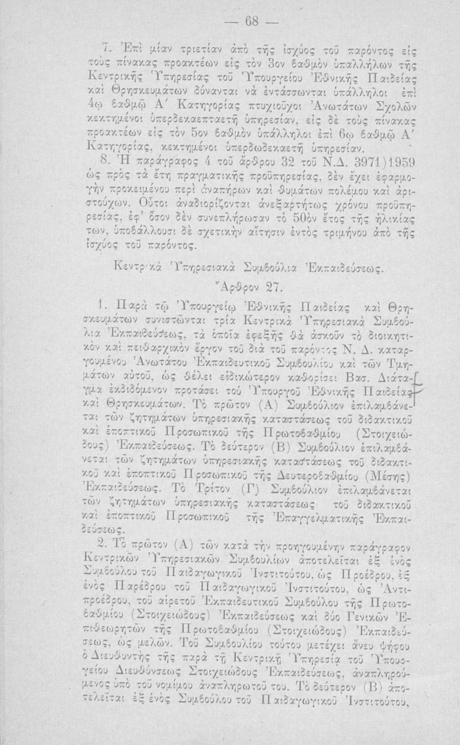 Έκδοση του Υπουργείου Εθνικής Παιδείας και Θρησκευμάτων που περιλαμβάνει το Ν.Δ. 4379/1964 (ΦΕΚ 182, 24-10-1964) "Περί οργανώσεως και διοικήσεως της Γενικής (Στοιχειώδους και Μέσης) Εκπαιδεύσεως".