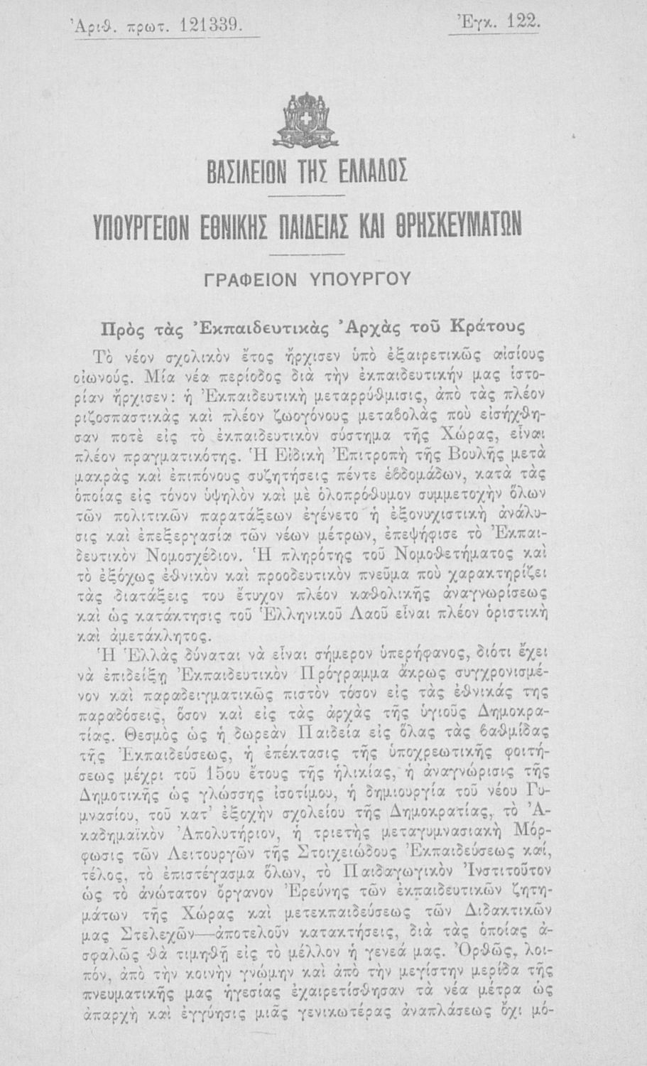 LDR 01209 2200181 4500 035 ## _a05-00009 040 ## _aΕργαστήρι Ιστορίας Ν.Ε. Εκπαίδευσης, Πανεπιστήμιο Ιωαννίνων 041 ## _ael 100 ## _aΥπουργείον Εθνικής Παιδείας & Θρησκευμάτων 110 ## _a009 245 0# _aΠερί οργανώσεως και διοικήσεως της Γενικής Εκπαιδεύσεως (Στοιχειώδους και Μέσης) 260 ## _aΑθήνα _bΕθνικό Τυπογραφείο _c1964 300 ## _a71 520 ## _aΈκδοση του Υπουργείου Εθνικής Παιδείας και Θρησκευμάτων που περιλαμβάνει το Ν.Δ. 4379/1964 (ΦΕΚ 182, 24-10-1964) "Περί οργανώσεως και διοικήσεως της Γενικής (Στοιχειώδους και Μέσης) Εκπαιδεύσεως". 522 ## _aΕλλάδα 546 ## _aΚαθαρεύουσα 563 ## _aΜαλακό Εξώφυλλο 650 #4 _aΑριθμητικά δεδομένα _aΔημοτικά και Γυμνάσια _aΕισηγητική έκθεση _aΠαιδαγωγικό προσωπικό