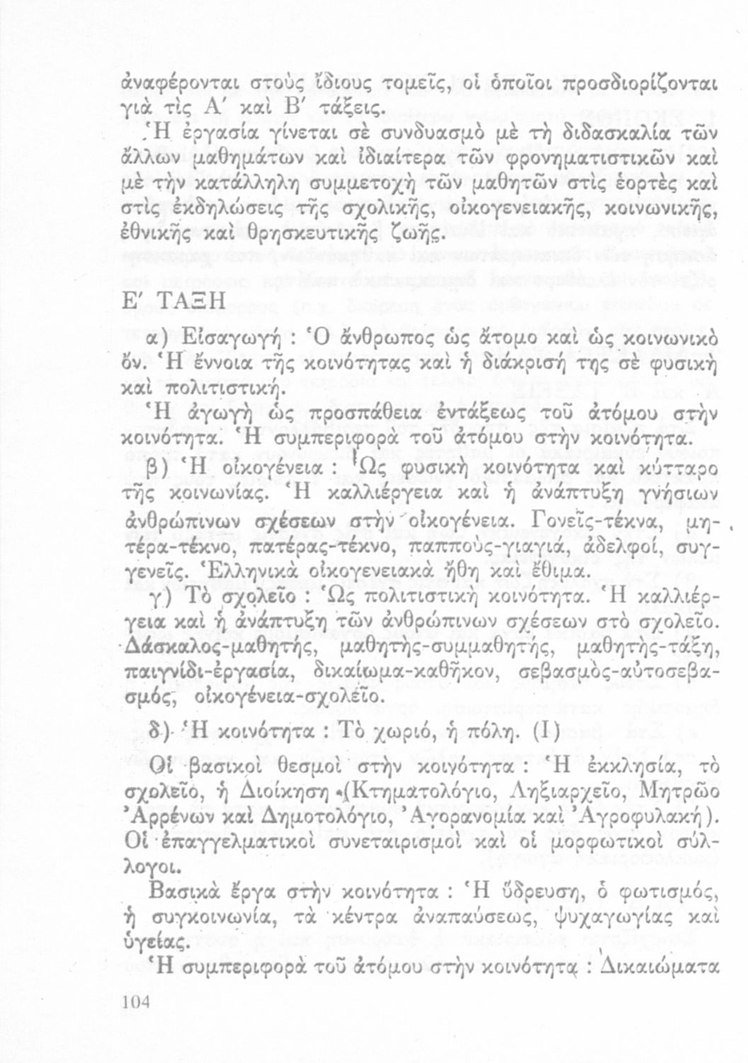 Έκδοση της Διδασκαλικής Ομοσπονδίας Ελλάδας που περιλαμβάνει το ωρολόγιο και αναλυτικό πρόγραμμα μαθημάτων του Δημοτικού Σχολείου κατά τη διάρκεια της δικτατορίας των συνταγματαρχών (1967 - 1974).
