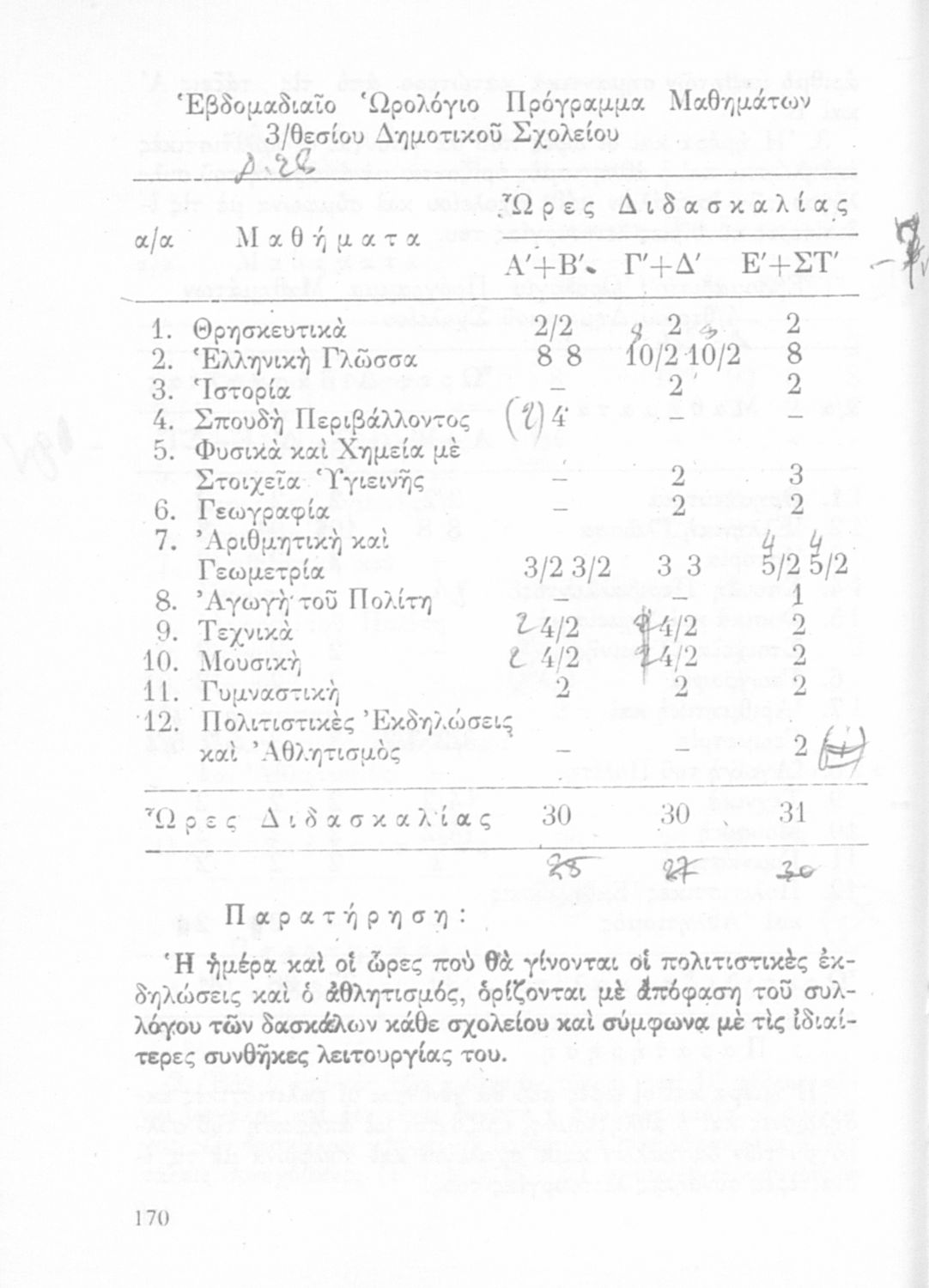 Τίτλος: Αναλυτικό και ωρολόγιο πρόγραμμα του Δημοτικού Σχολείου