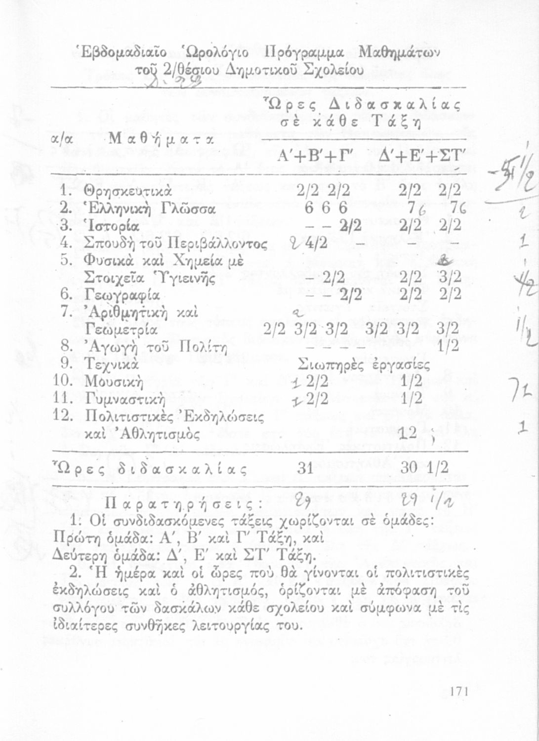 Αναλυτικό και ωρολόγιο πρόγραμμα του Δημοτικού Σχολείου