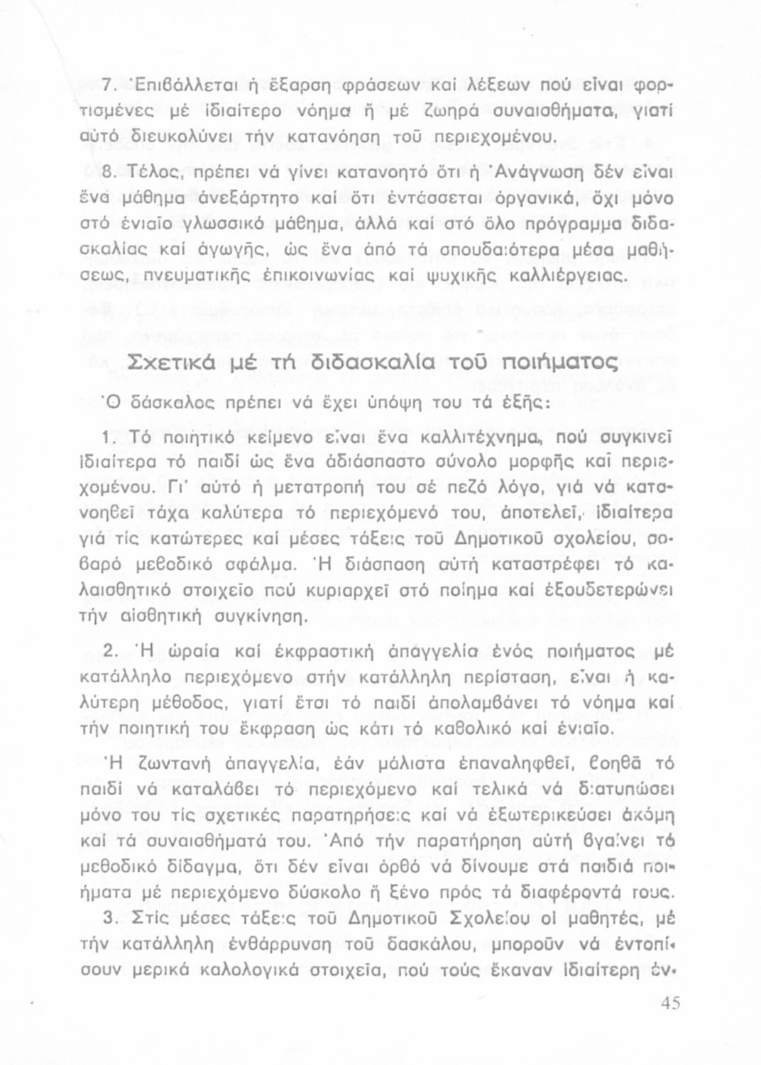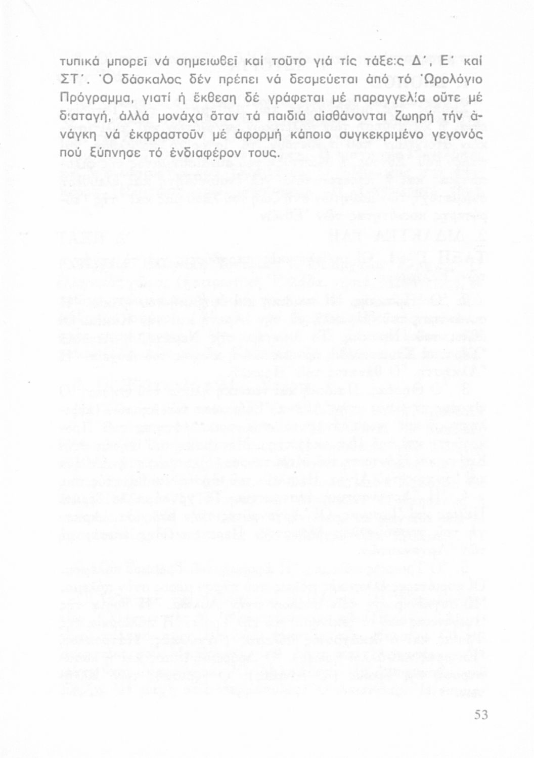 Έκδοση της Διδασκαλικής Ομοσπονδίας Ελλάδας που περιλαμβάνει το ωρολόγιο και αναλυτικό πρόγραμμα μαθημάτων του Δημοτικού Σχολείου κατά τη διάρκεια της δικτατορίας των συνταγματαρχών (1967 - 1974).