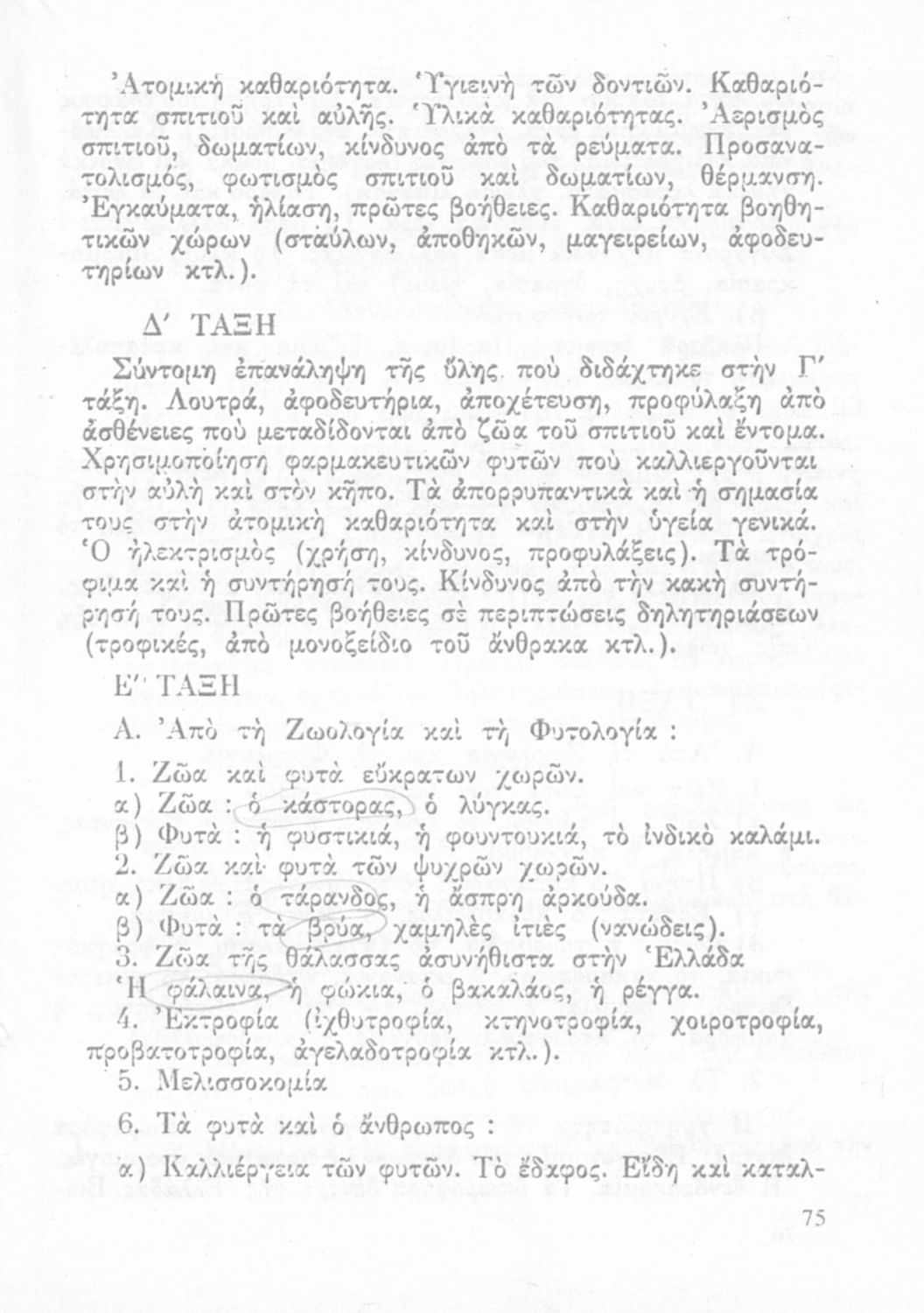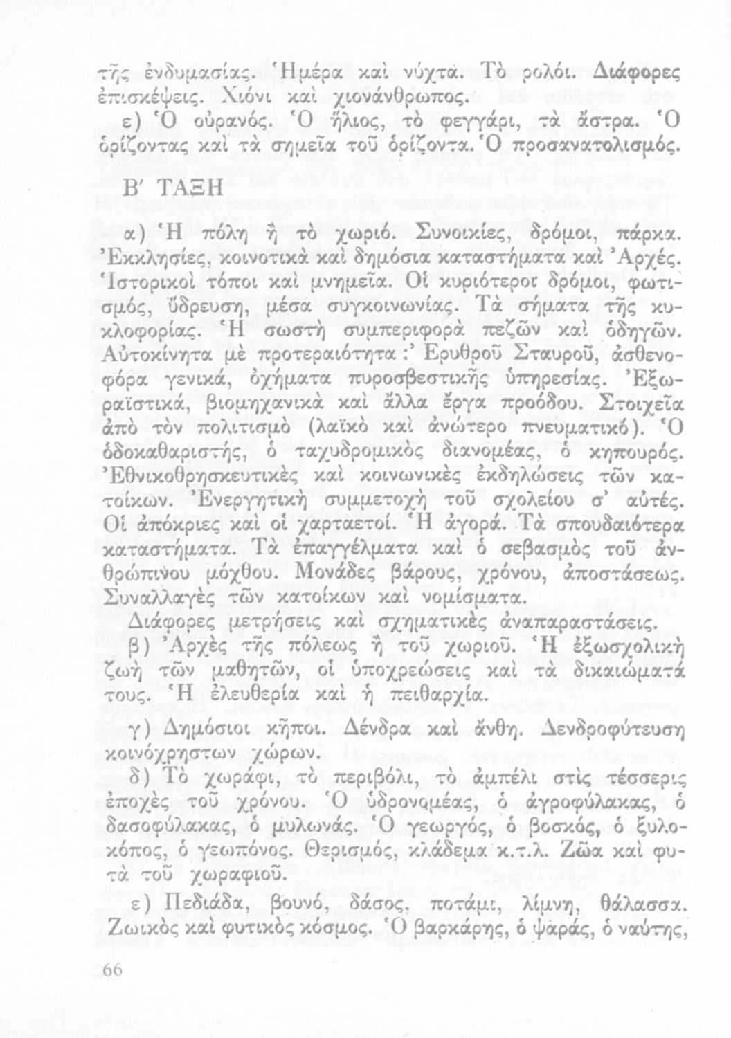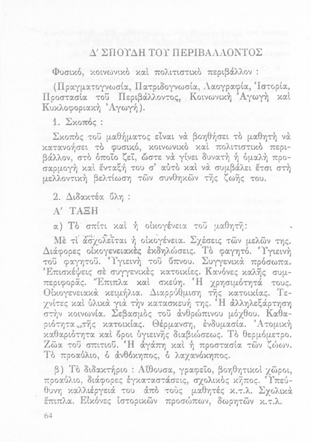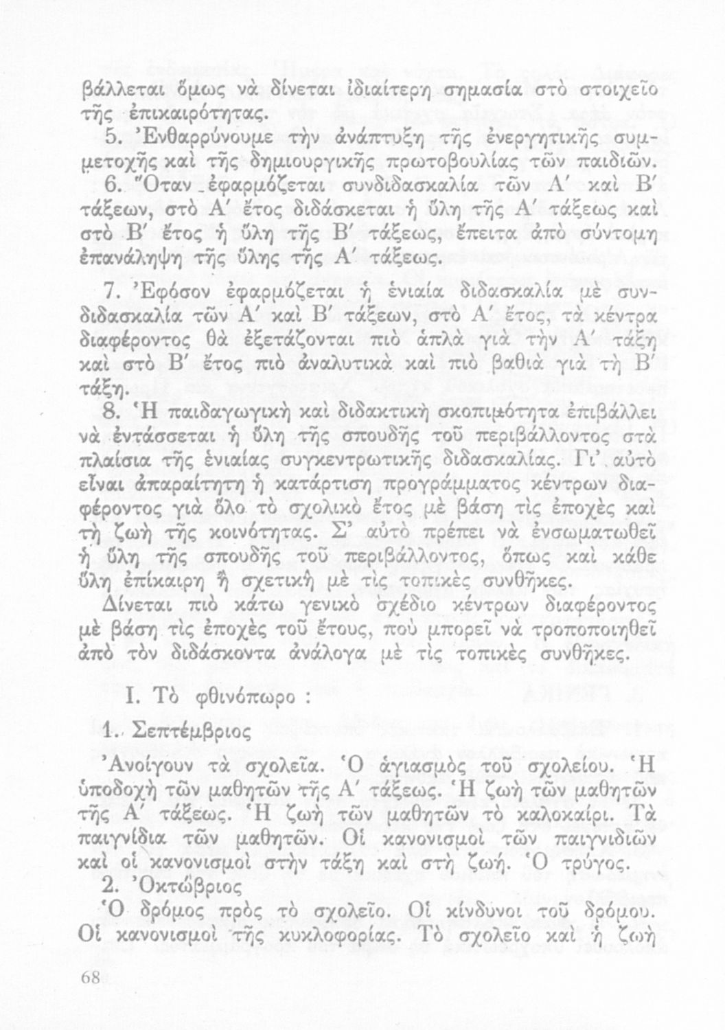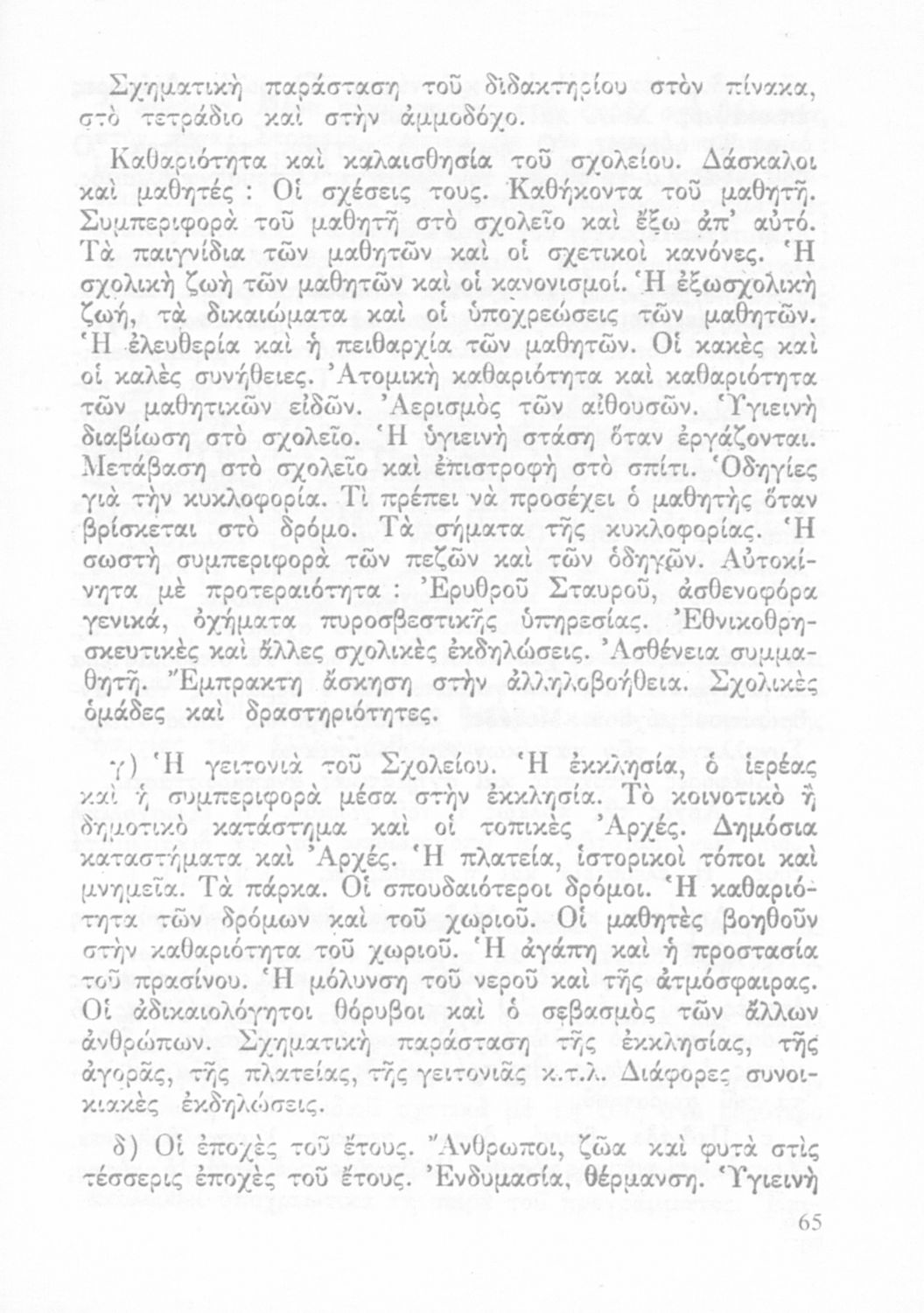 Έκδοση της Διδασκαλικής Ομοσπονδίας Ελλάδας που περιλαμβάνει το ωρολόγιο και αναλυτικό πρόγραμμα μαθημάτων του Δημοτικού Σχολείου κατά τη διάρκεια της δικτατορίας των συνταγματαρχών (1967 - 1974).