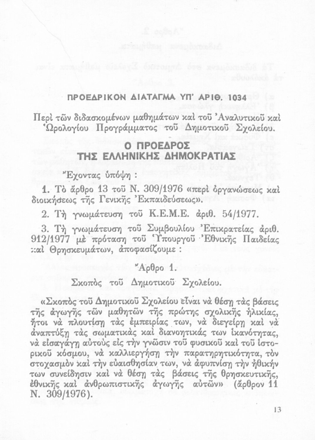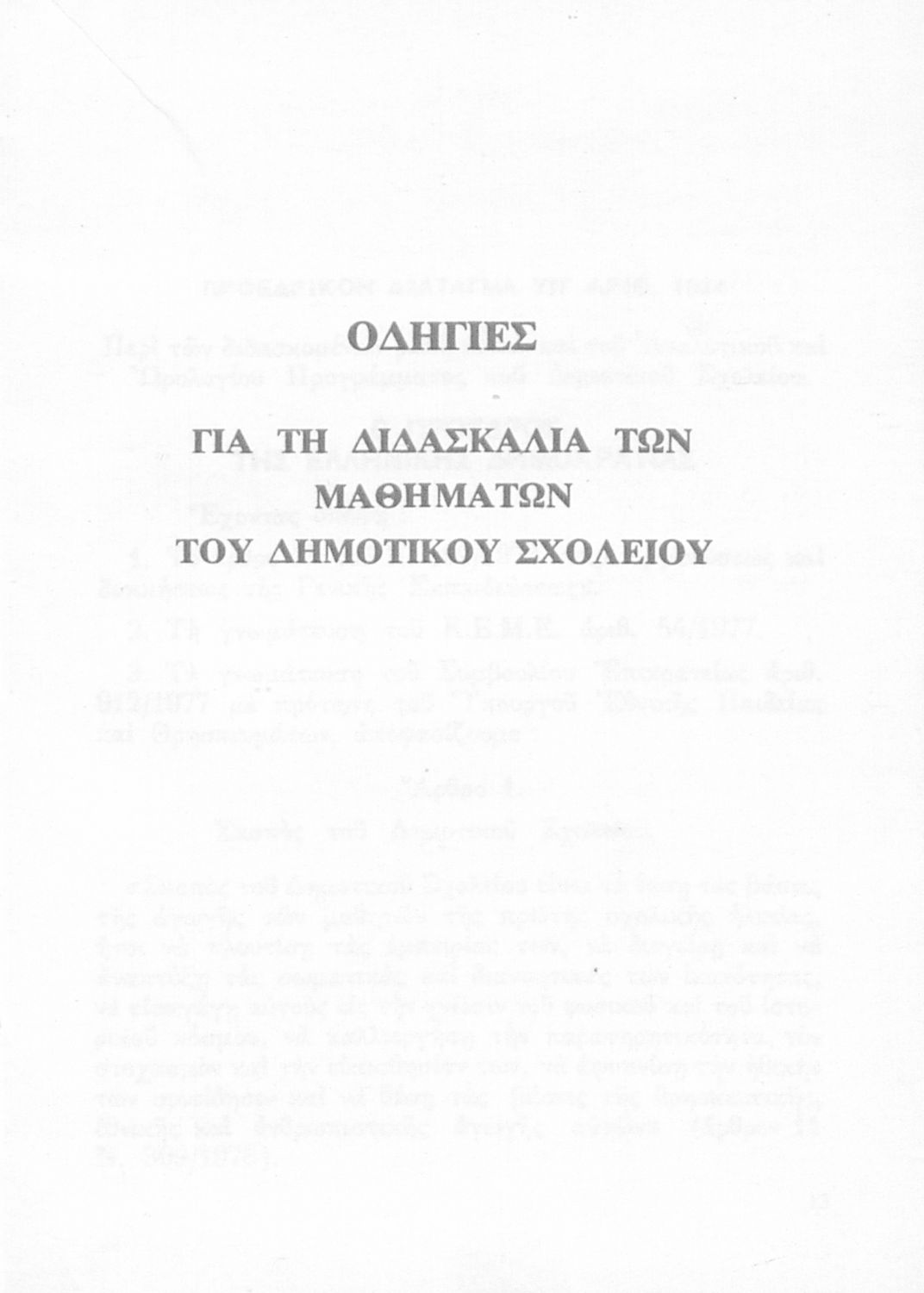Παιδαγωγικό βοήθημα για τους εκπαιδευτικούς της Πρωτοβάθμιας Εκπαίδευσης που περιλαμβάνει το αναλυτικό και ωρολόγιο πρόγραμμα της Στοιχειώδους Εκπαίδευσης και τις οδηγίες του Κ.Ε.ΜΕ για την εφαρμογή του.