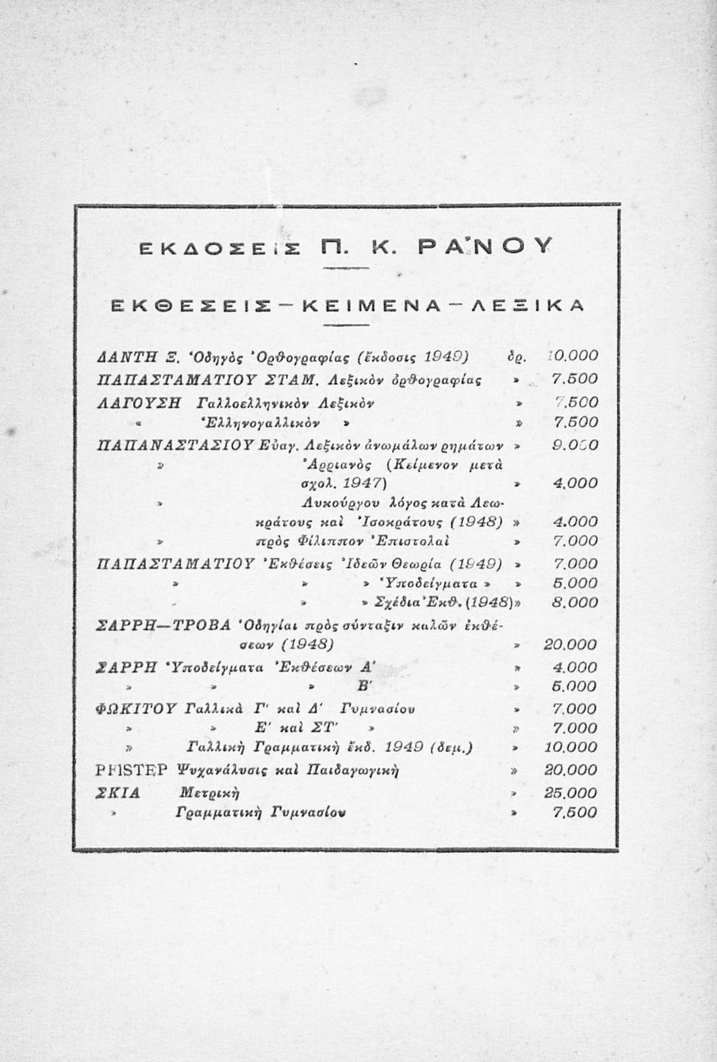 Το σύγγραμμα ήταν εκπαιδευτικό βοήθημα για το μάθημα των νέων ελληνικών. Αρχικά, έχει οδηγίες, οι οποίες απευθύνονται στους δασκάλους και τους μαθητές αντίστοιχα για την εξυπηρέτηση της διδασκαλίας. Στη ...