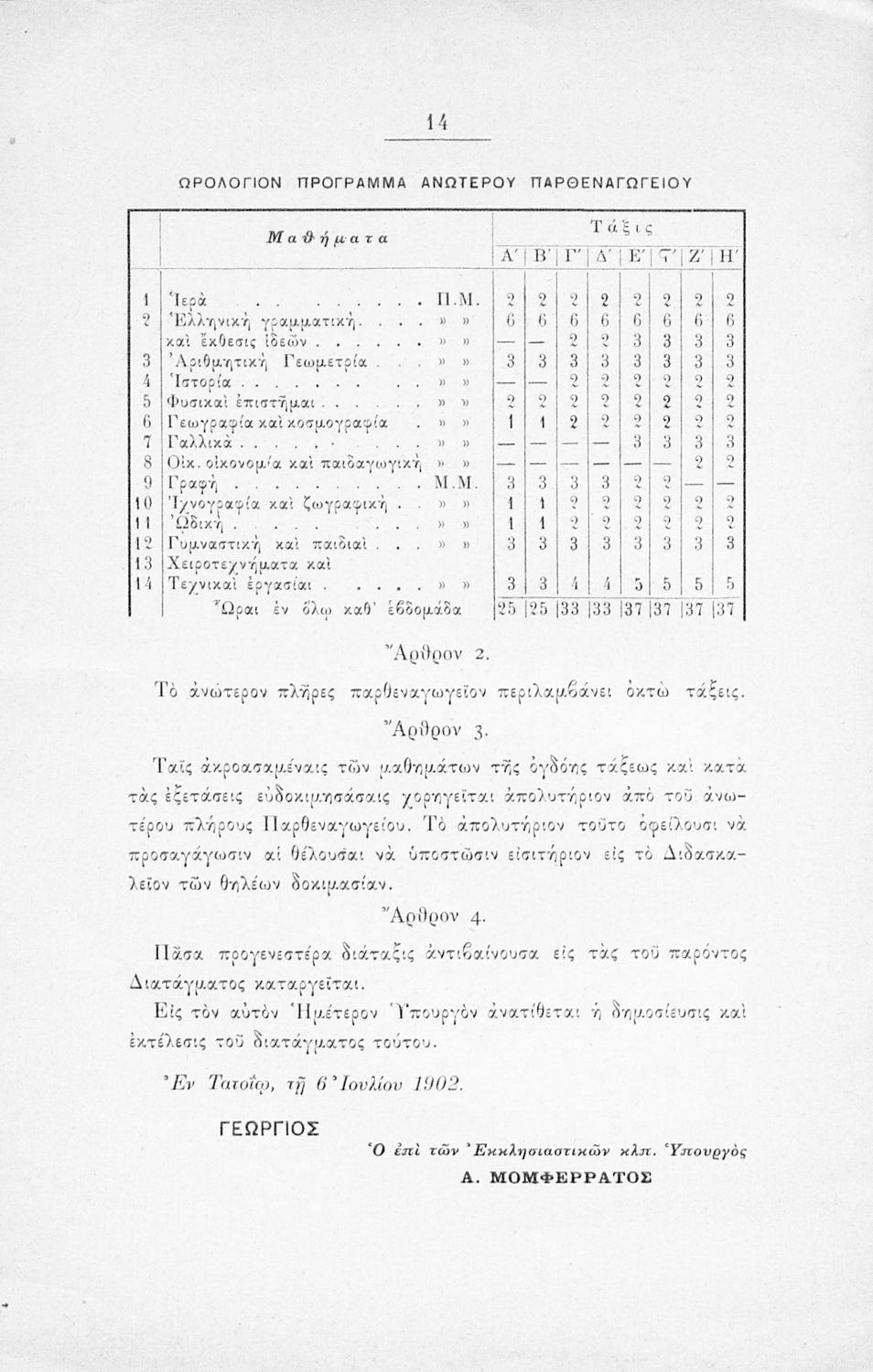 Βαθμίδα εκπαίδευσης: Δευτεροβάθμια Τάξη: Παρθεναγωγείο / Διδασκαλείο Γλώσσα: Καθαρεύουσα Παρουσίαση περιεχομένου: Έκδοση που περιλαμβάνει το αναλυτικό και ωρολόγιο πρόγραμμα για τα Παρθεναγωγεία και Διδασκαλεία της Φιλεκπαιδευτικής Εταιρείας. |