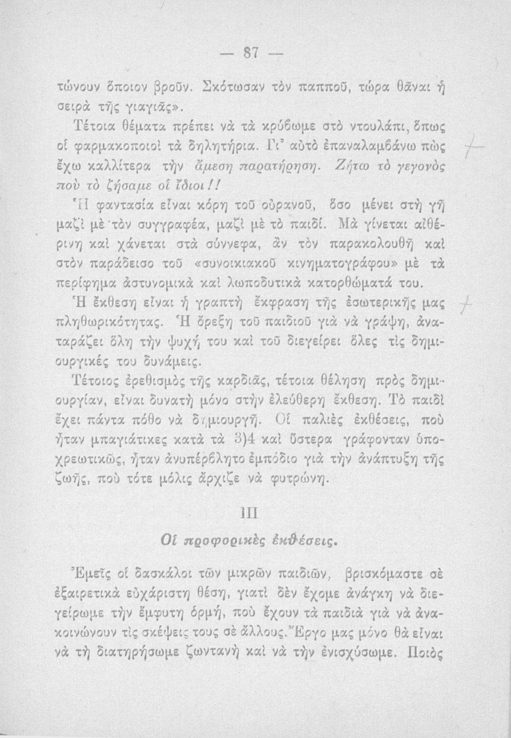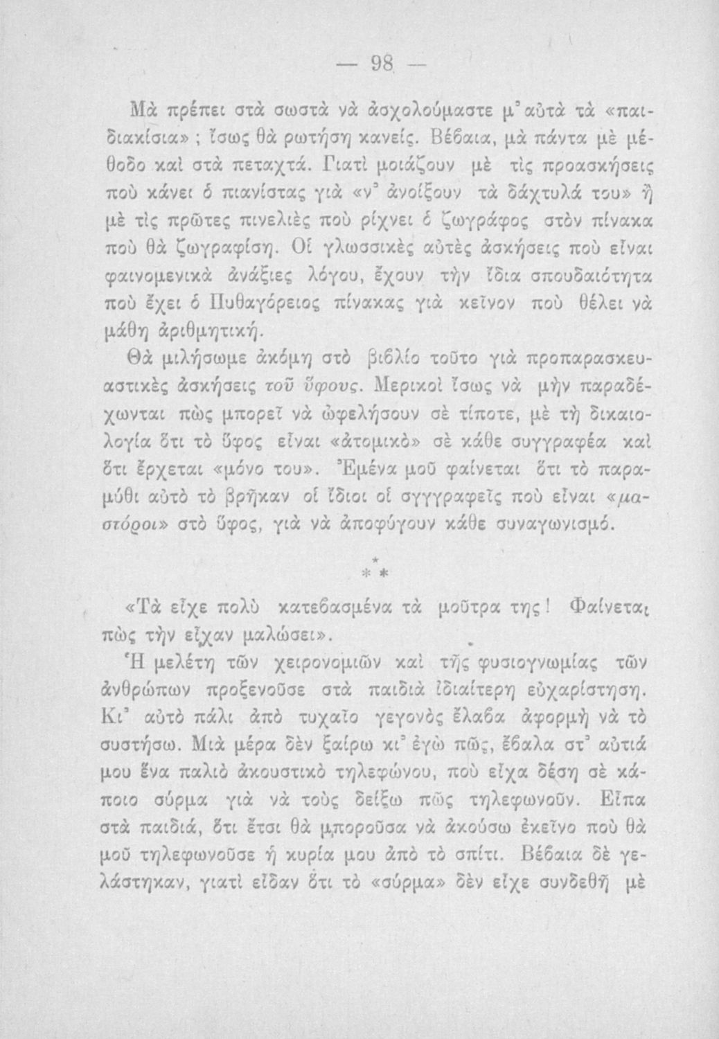 Σειρά παιδαγωγικών βοηθημάτων: το πρώτο είναι δομημένο σε διαλόγους, απευθύνεται στις μητέρες και αποσκοπεί στην θρησκευτική διδασκαλία των παιδιών. Ο συγγραφέας συνιστά το εγχειρίδιο να αναγιγνώσκεται από τις