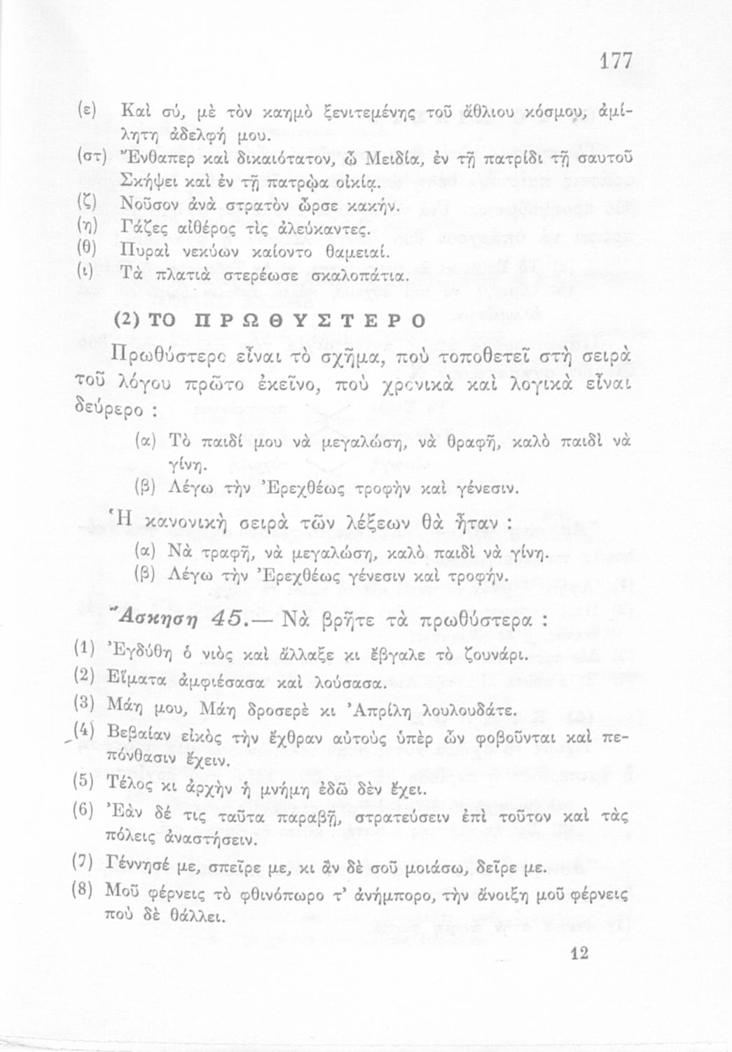 Σχολικό εγχειρίδιο Αρχαίων Ελληνικών Γυμνασίου που εξετάζει τα μέρη του λόγου και την σύνταξή τους.