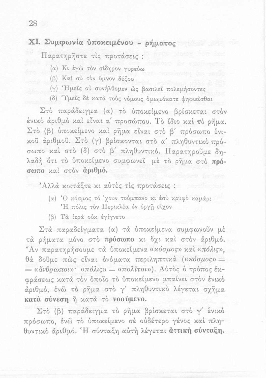 Σχολικό εγχειρίδιο Αρχαίων Ελληνικών που εστιάζει στα μέρη του λόγου και στην σύνταξή τους.