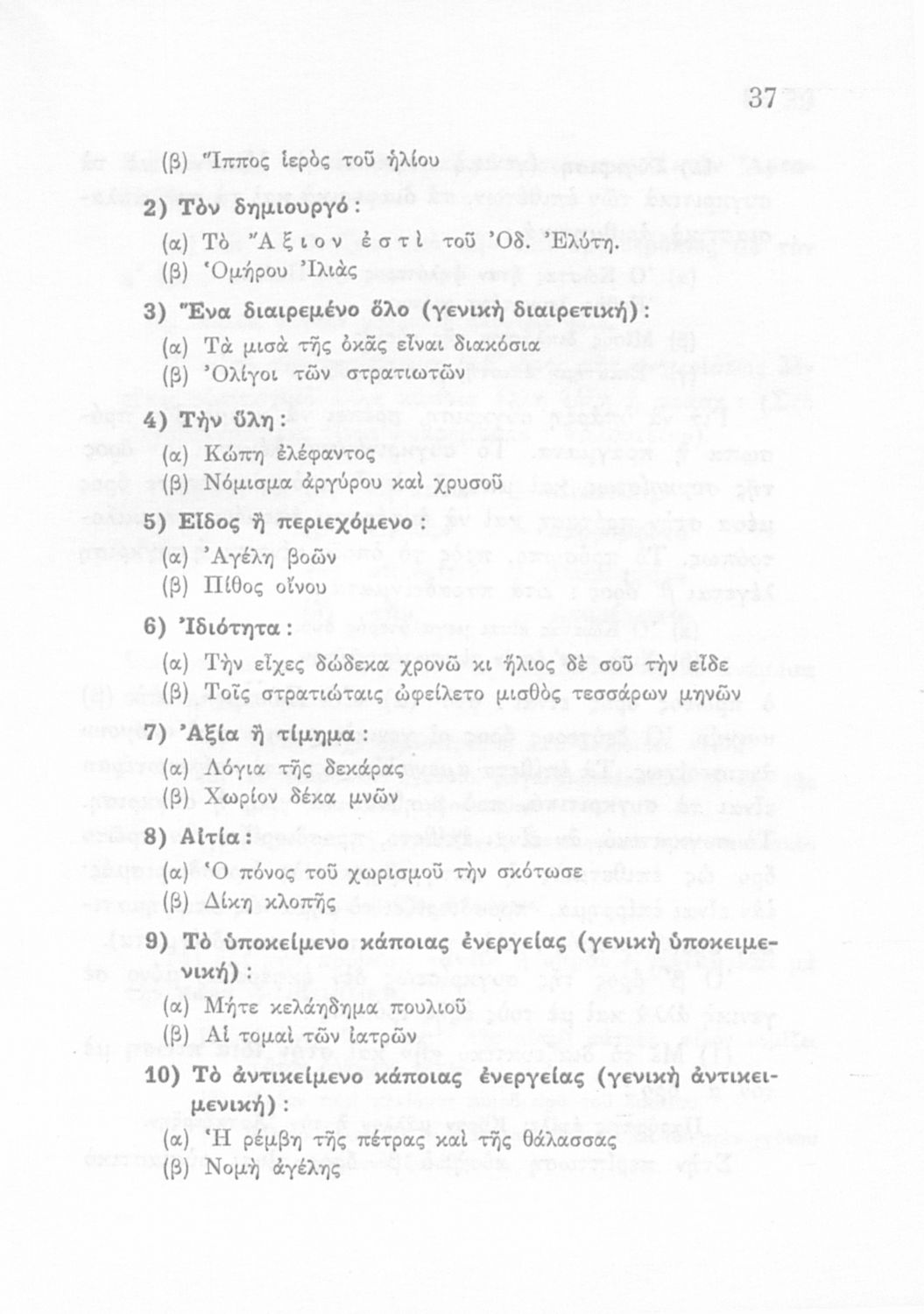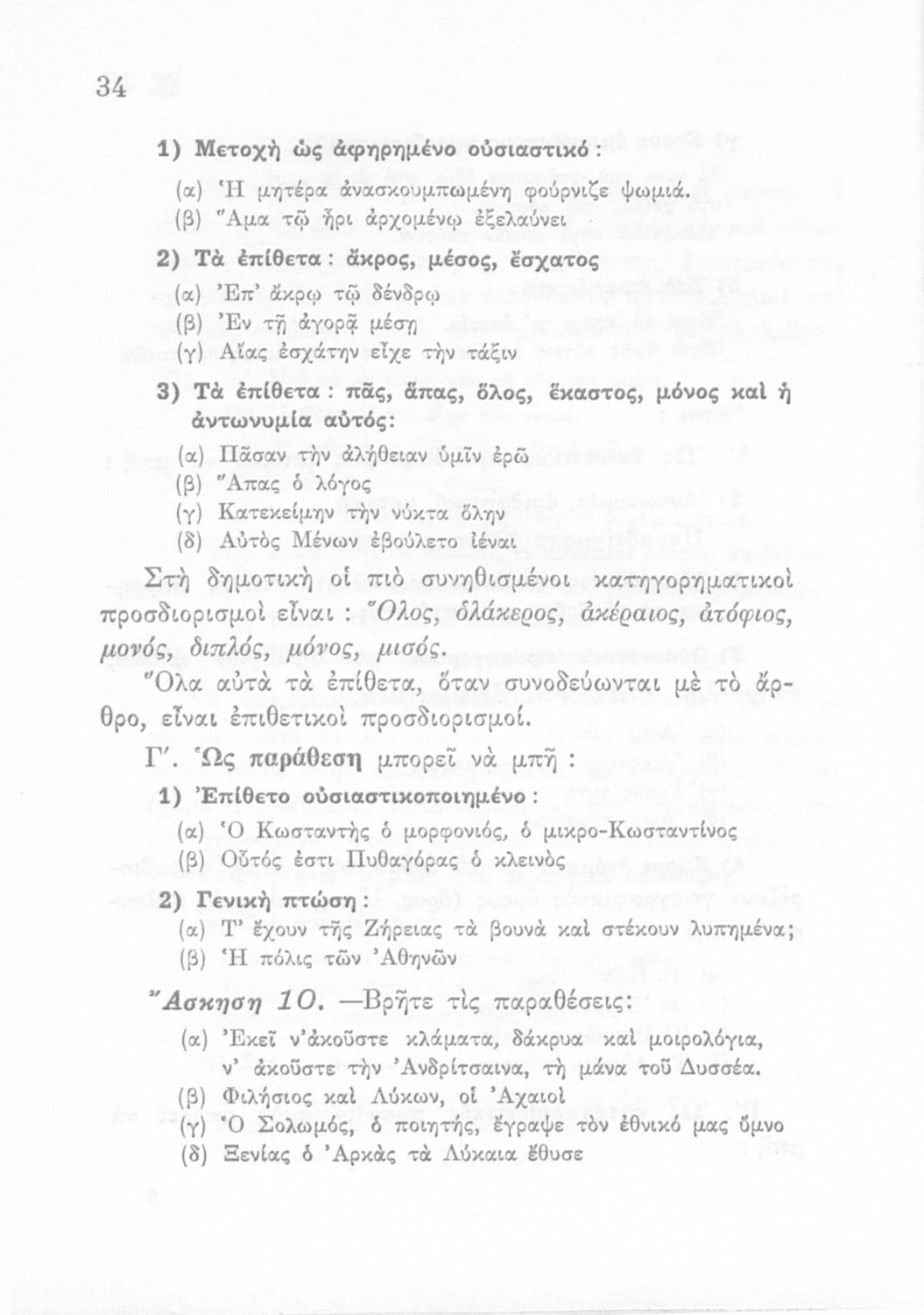 Σχολικό εγχειρίδιο Αρχαίων Ελληνικών Γυμνασίου που εξετάζει τα μέρη του λόγου και την σύνταξή τους.