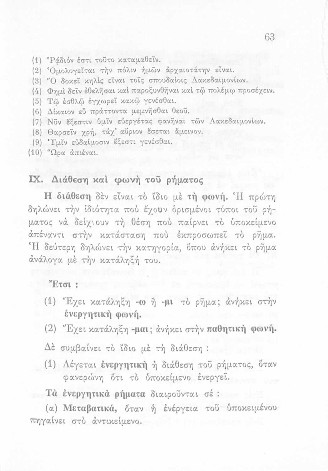 Σχολικό εγχειρίδιο Αρχαίων Ελληνικών Γυμνασίου που εξετάζει τα μέρη του λόγου και την σύνταξή τους.