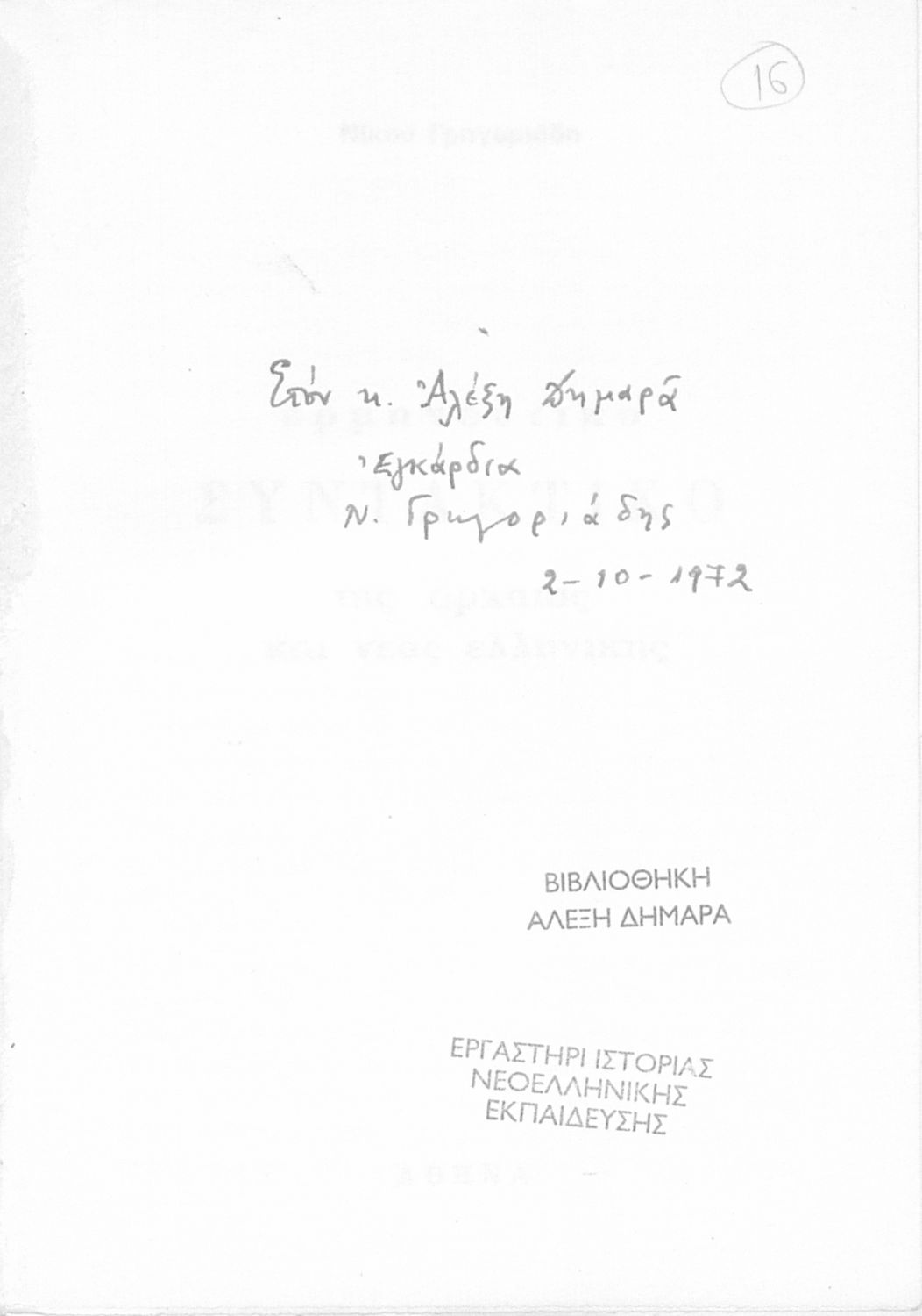 Εντοπισμός πρωτοτύπου: Εργαστήρι Ιστορίας Ν.Ε. Εκπαίδευσης, Πανεπιστήμιο Ιωαννίνων Κωδικός βιβλιοθήκης: 016 |