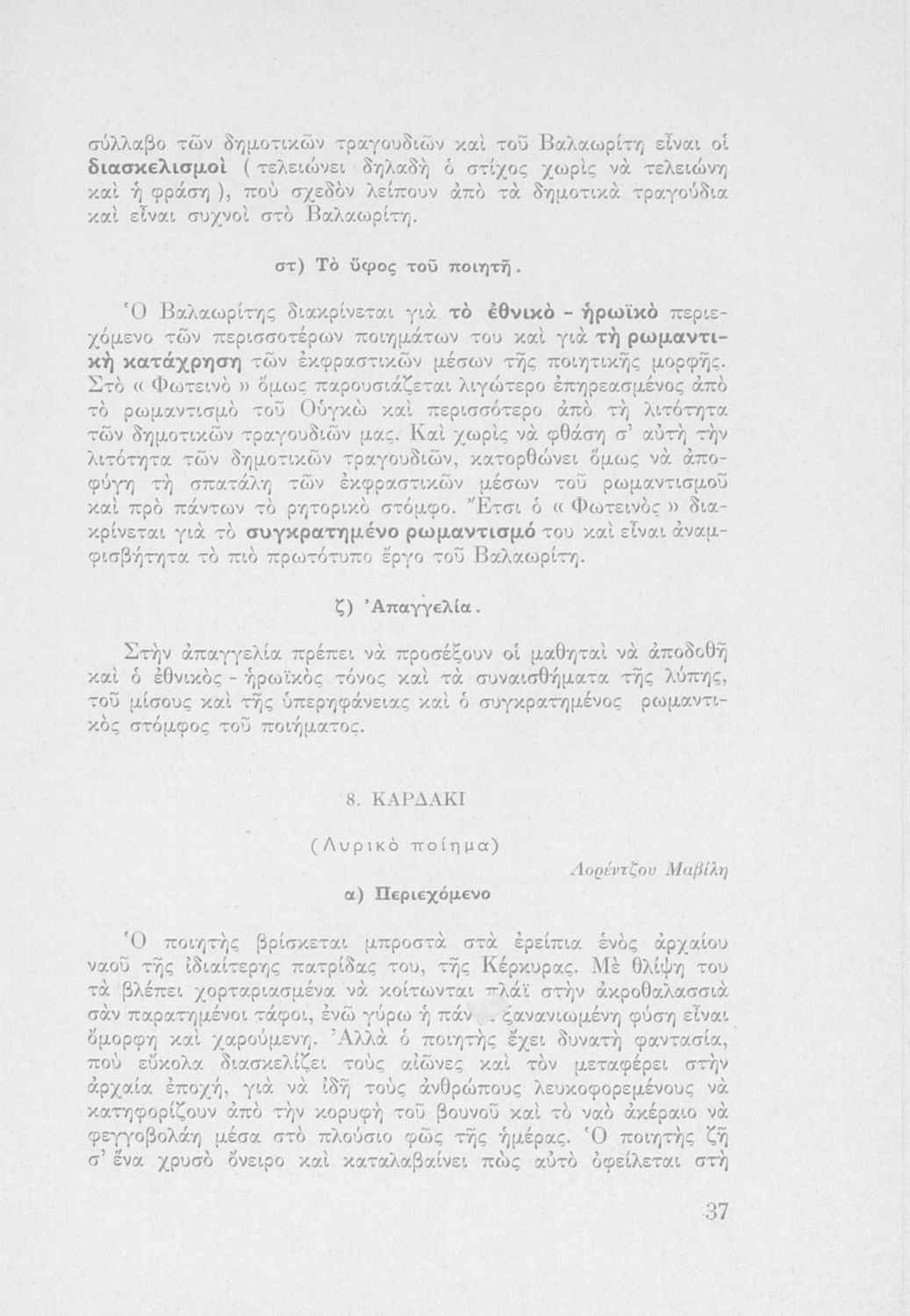 Παιδαγωγικό βοήθημα Νέων Ελληνικών. Περιλαμβάνει την αισθητική διδασκαλία των νεοελληνικών λογοτεχνημάτων για τα σχολεία της Μέσης Εκπαίδευσης.