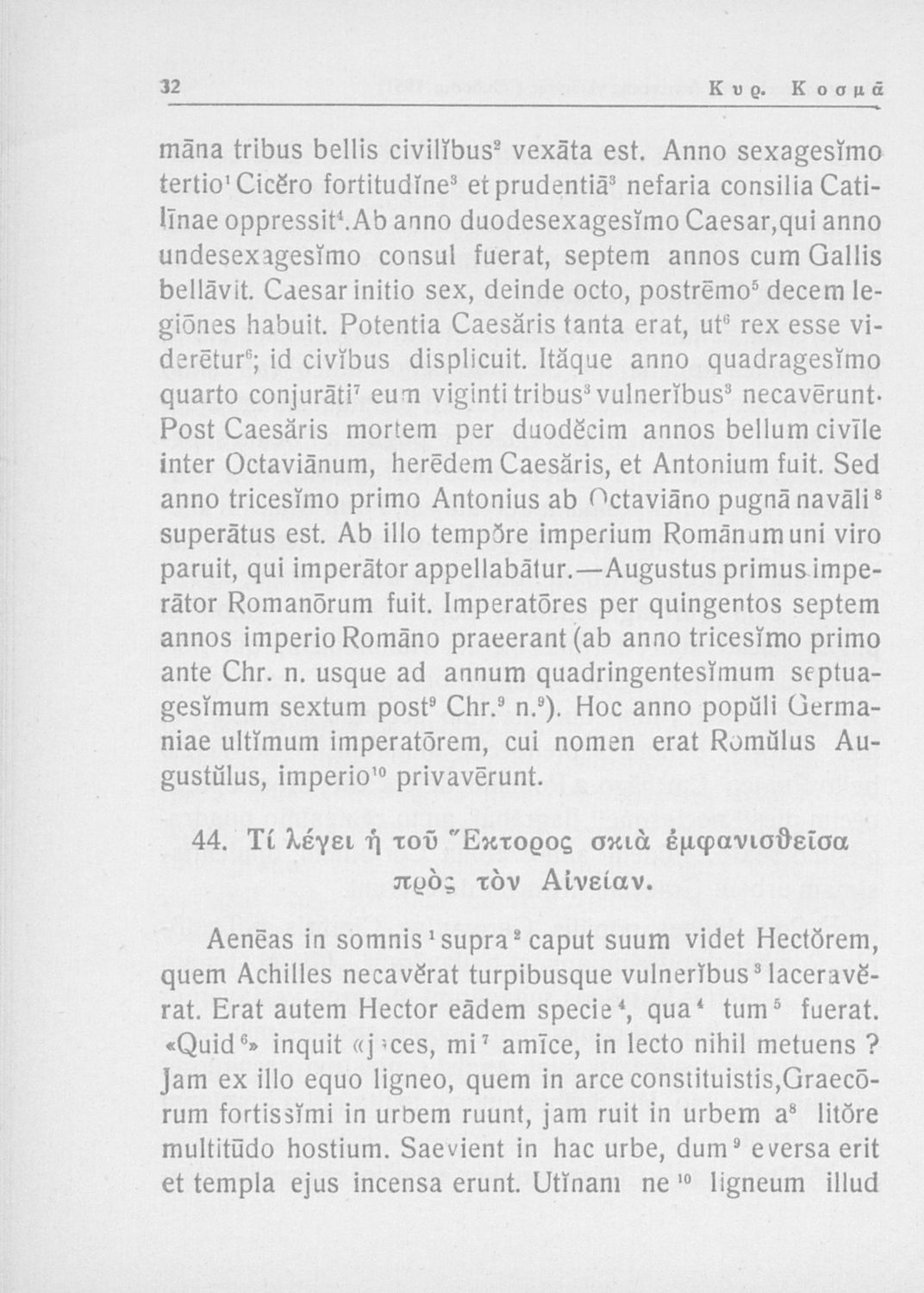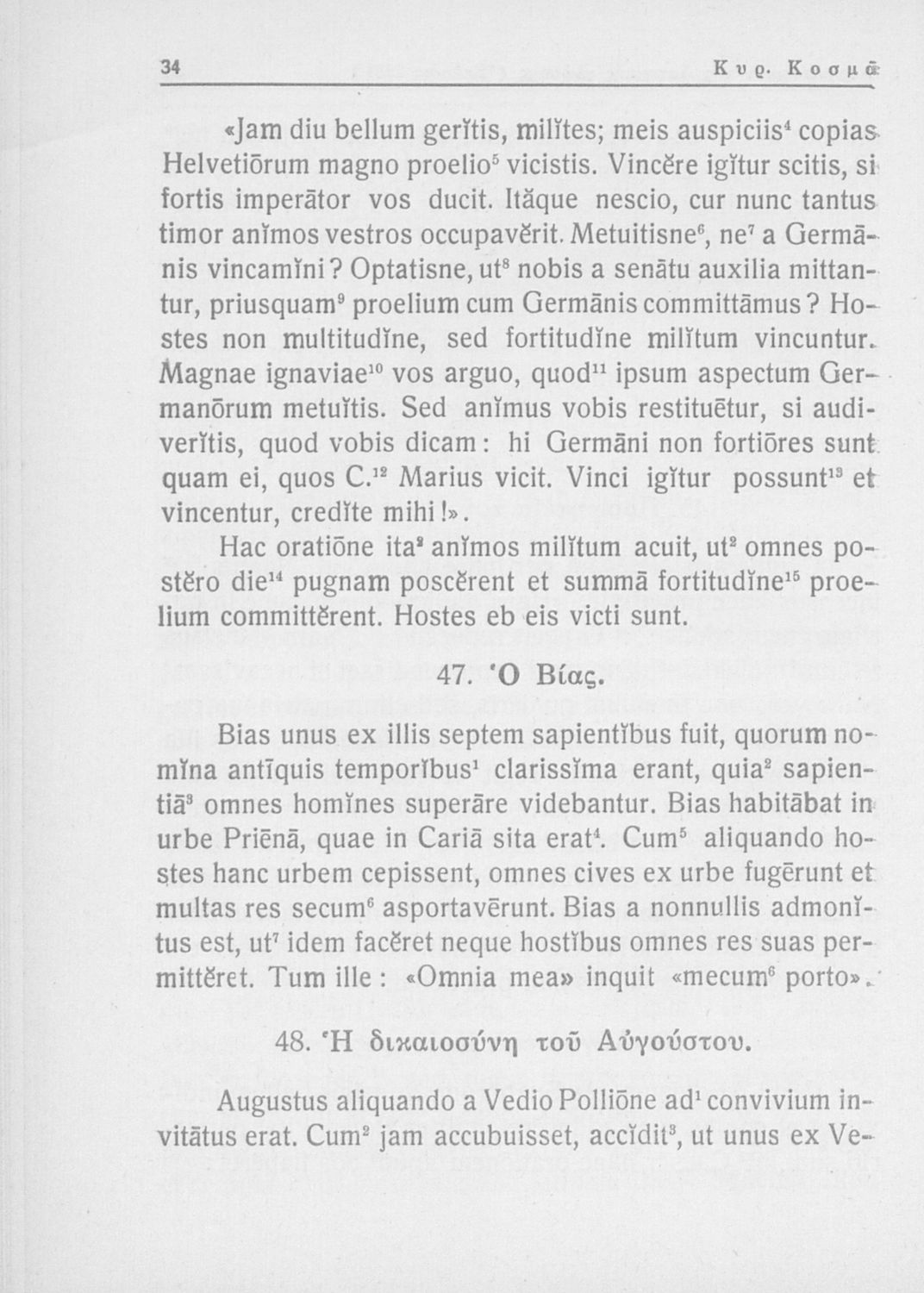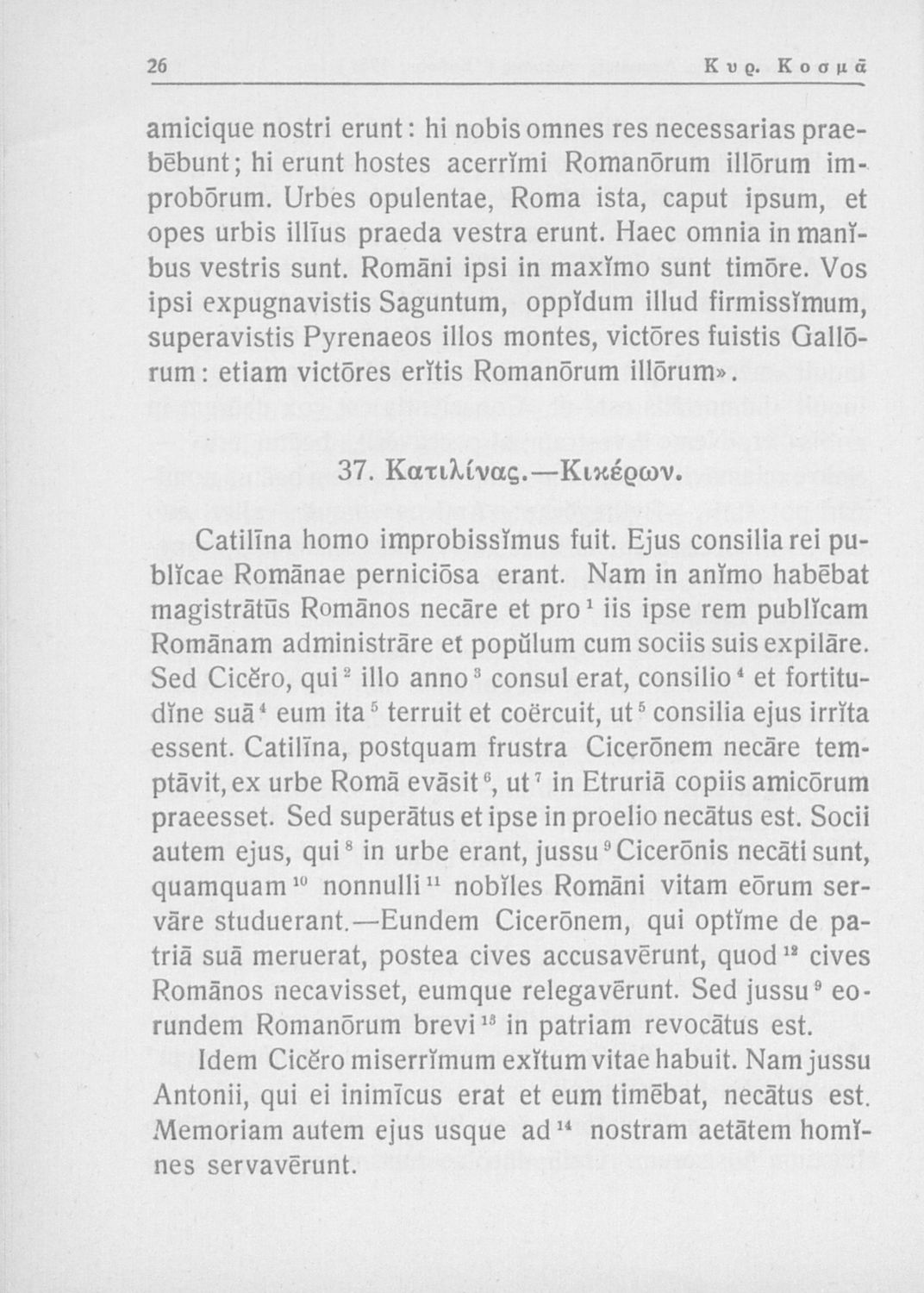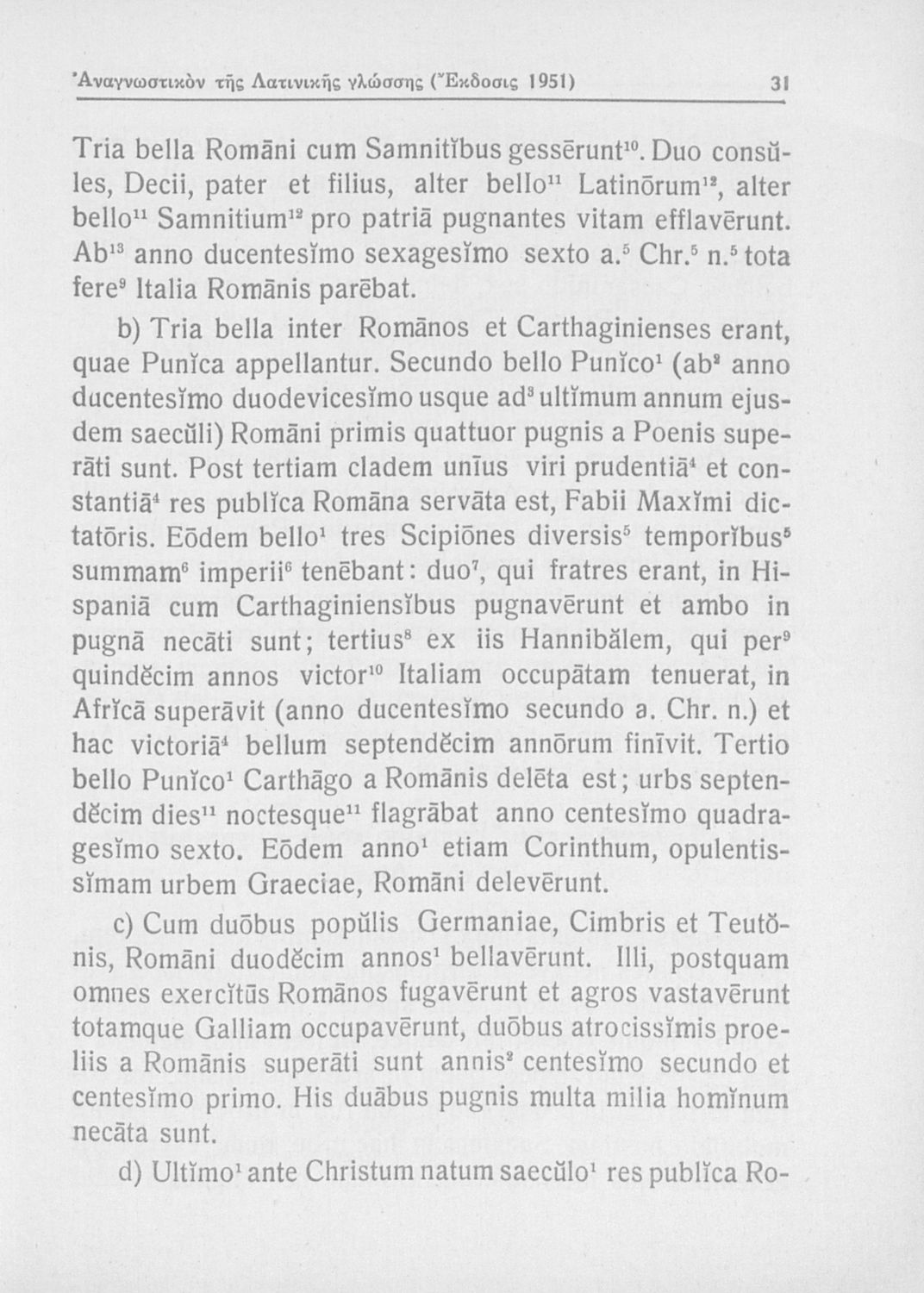 Σχολικό εγχειρίδιο Λατινικών για τη Γ΄ Γυμνασίου που περιέχει 54 κείμενα/περικοπές στα λατινικά, ερμηνευτικά υπομνήματα, λεξιλόγιο και κατάλογο με τα συντακτικά φαινόμενα (αφαιρετική, προθέσεις, σύνδεσμοι) που