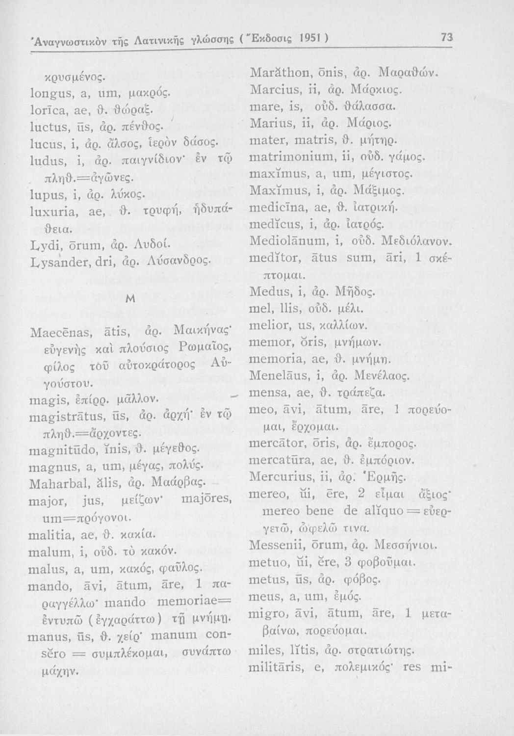 LDR 01062 2200193 4500 035 ## _a05-00018 040 ## _aΕργαστήρι Ιστορίας Ν.Ε. Εκπαίδευσης, Πανεπιστήμιο Ιωαννίνων 041 ## _ael 100 ## _aΚυριάκος Κοσμάς 110 ## _a018 245 0# _aΑναγνωστικόν της λατινικής γλώσσας δια την Γ΄ τάξιν των Γυμνασίων 260 ## _aΑθήνα _bΟργανισμός Εκδόσεως Σχολικών Βιβλίων _c1951 300 ## _a86 520 ## _aΣχολικό εγχειρίδιο Λατινικών Γ΄ Γυμνασίου που περιλαμβάνει αποσπάσματα κειμένων, λεξιλόγιο και γραμματικές και συντακτικές παρατηρήσεις. 521 ## _aΓ' Γυμνασίου 522 ## _aΕλλάδα 546 ## _aΚαθαρεύουσα 563 ## _aΜαλακό Εξώφυλλο 650 #4 _aΓραμματική _aΈννοιες _aΠεριεχόμενο λέξεων _aΣυντακτικό