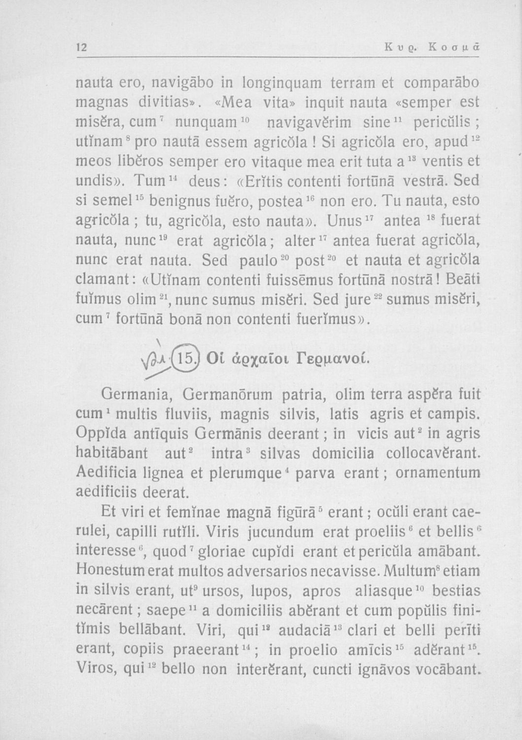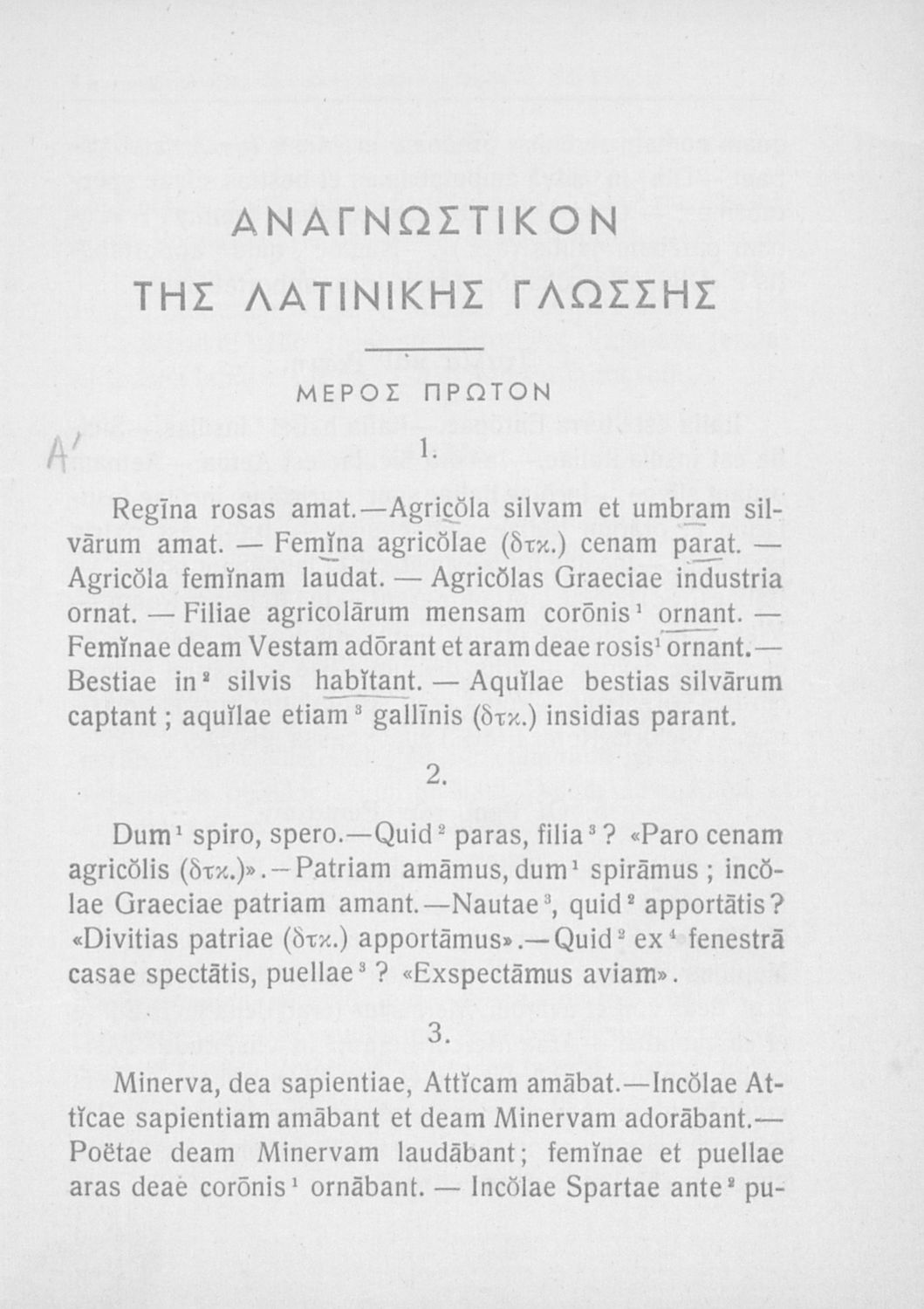 LDR 01062 2200193 4500 035 ## _a05-00018 040 ## _aΕργαστήρι Ιστορίας Ν.Ε. Εκπαίδευσης, Πανεπιστήμιο Ιωαννίνων 041 ## _ael 100 ## _aΚυριάκος Κοσμάς 110 ## _a018 245 0# _aΑναγνωστικόν της λατινικής γλώσσας δια την Γ΄ τάξιν των Γυμνασίων 260 ## _aΑθήνα _bΟργανισμός Εκδόσεως Σχολικών Βιβλίων _c1951 300 ## _a86 520 ## _aΣχολικό εγχειρίδιο Λατινικών Γ΄ Γυμνασίου που περιλαμβάνει αποσπάσματα κειμένων, λεξιλόγιο και γραμματικές και συντακτικές παρατηρήσεις. 521 ## _aΓ' Γυμνασίου 522 ## _aΕλλάδα 546 ## _aΚαθαρεύουσα 563 ## _aΜαλακό Εξώφυλλο 650 #4 _aΓραμματική _aΈννοιες _aΠεριεχόμενο λέξεων _aΣυντακτικό