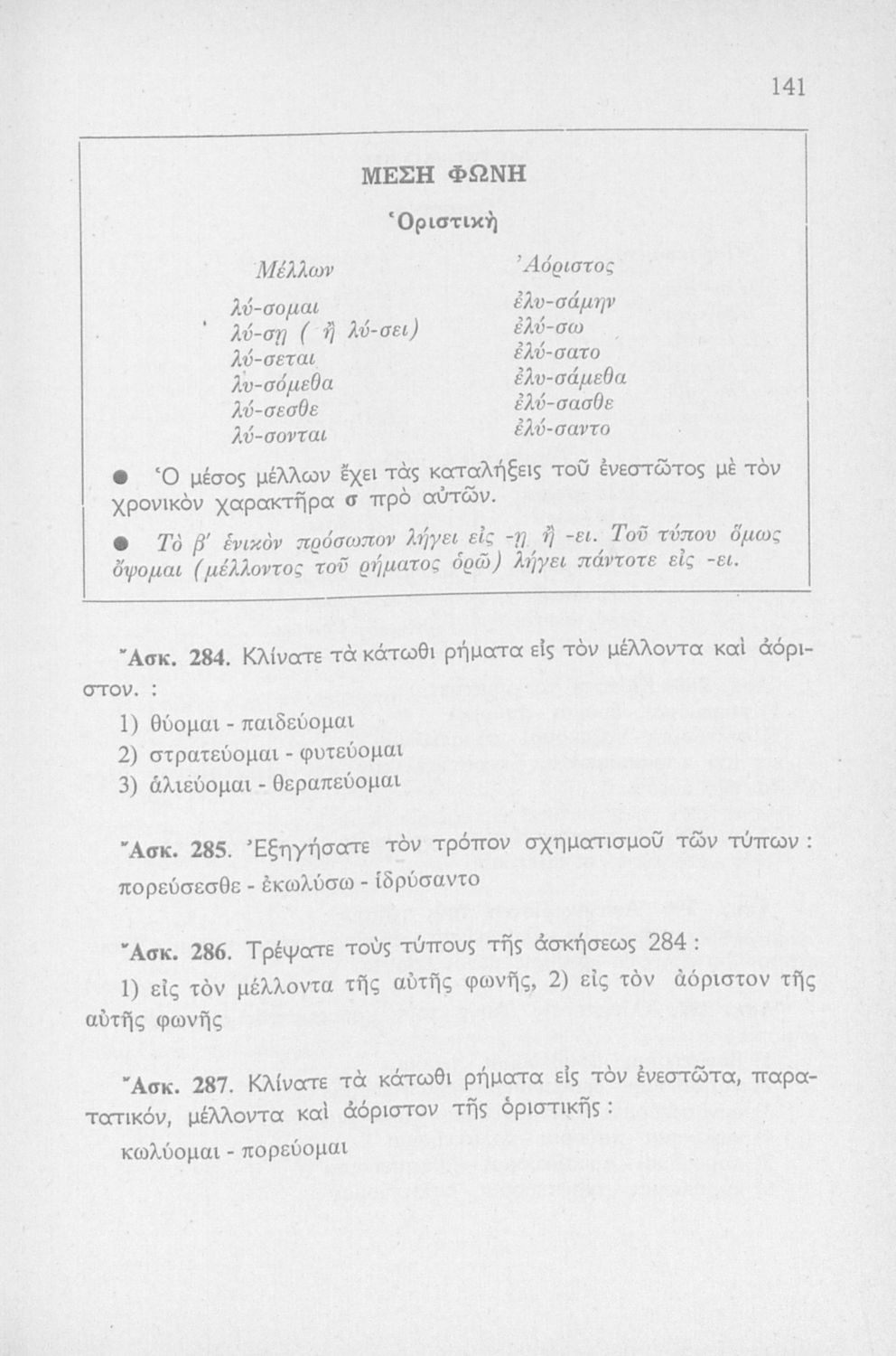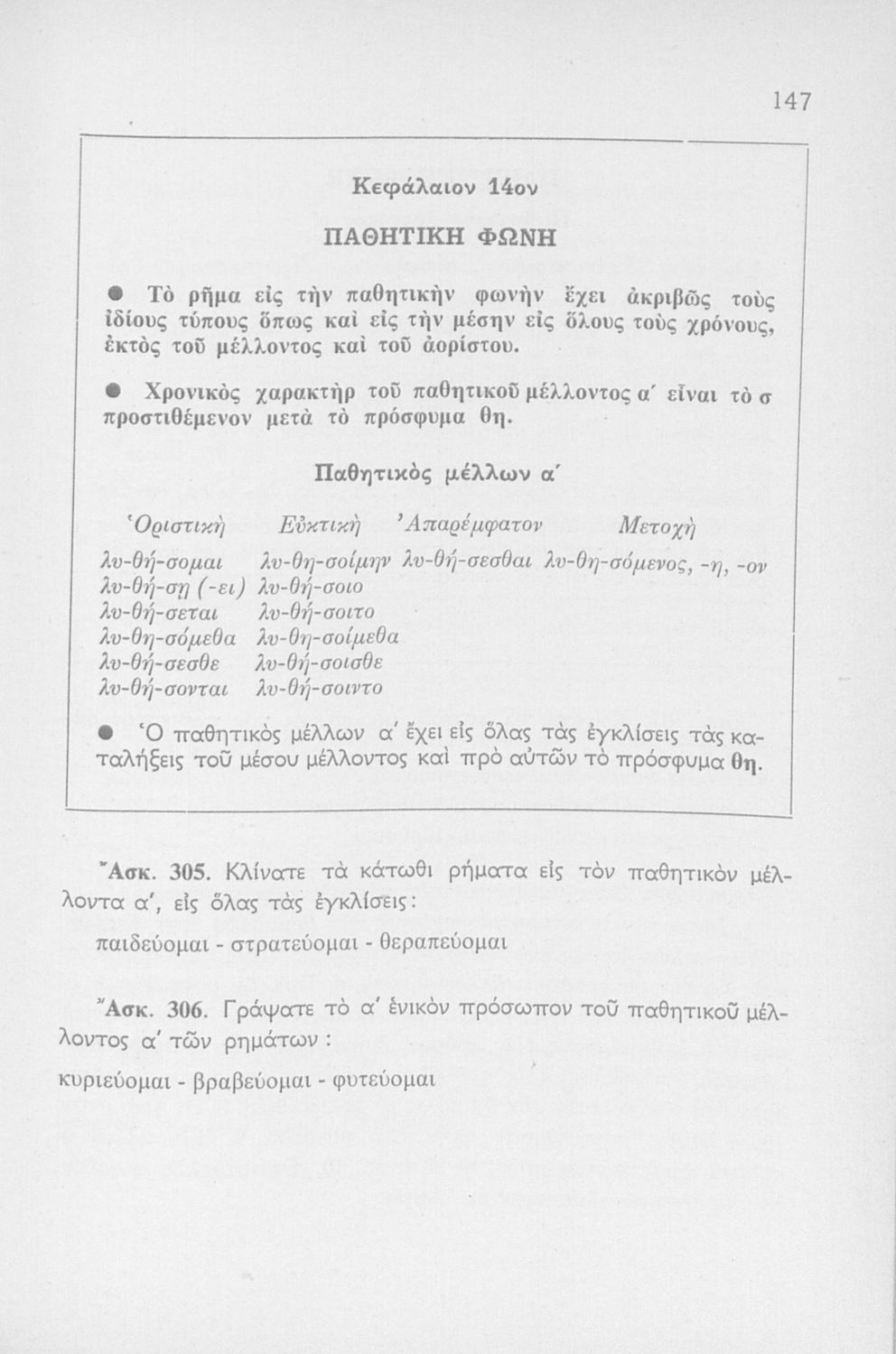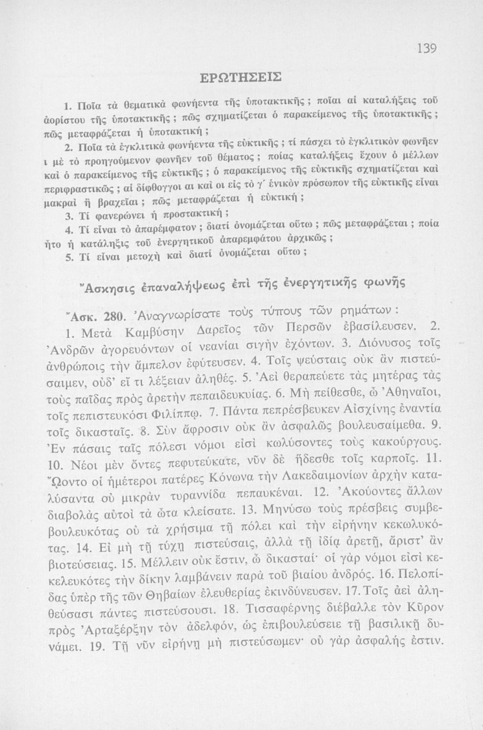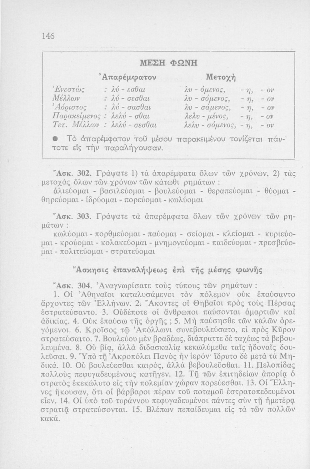 Σχολικό εγχειρίδιο Αρχαίων Ελληνικών Γυμνασίου που περιλαμβάνει τη γραμματική της αρχαίας ελληνικής και είναι χωρισμένο σε φθογγολογικό και τυπολογικό μέρος Περιέχει και κατάλογο ανωμάλων ρημάτων, ασκήσεις και